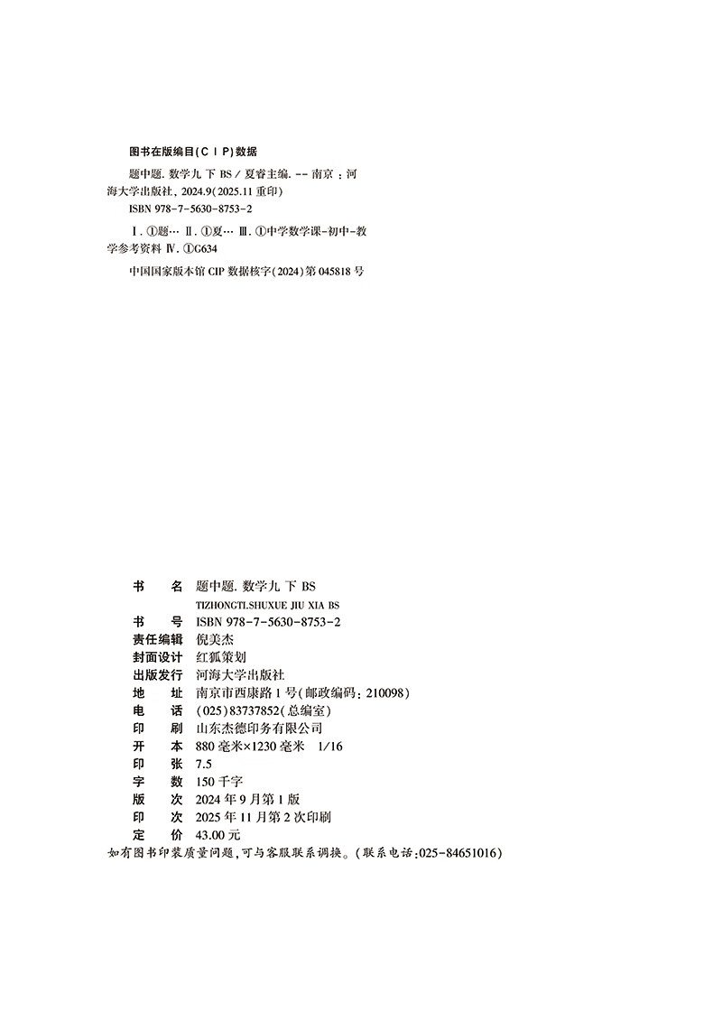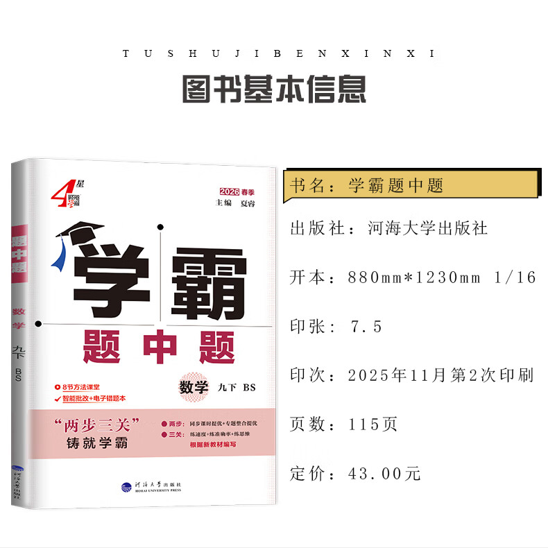 2026春学霸题中题九年级9年级上册下册全一册数学英语物理化学苏科版人教北师沪科版同步课时作业本练习册 【26春】物理--苏科版 九 下