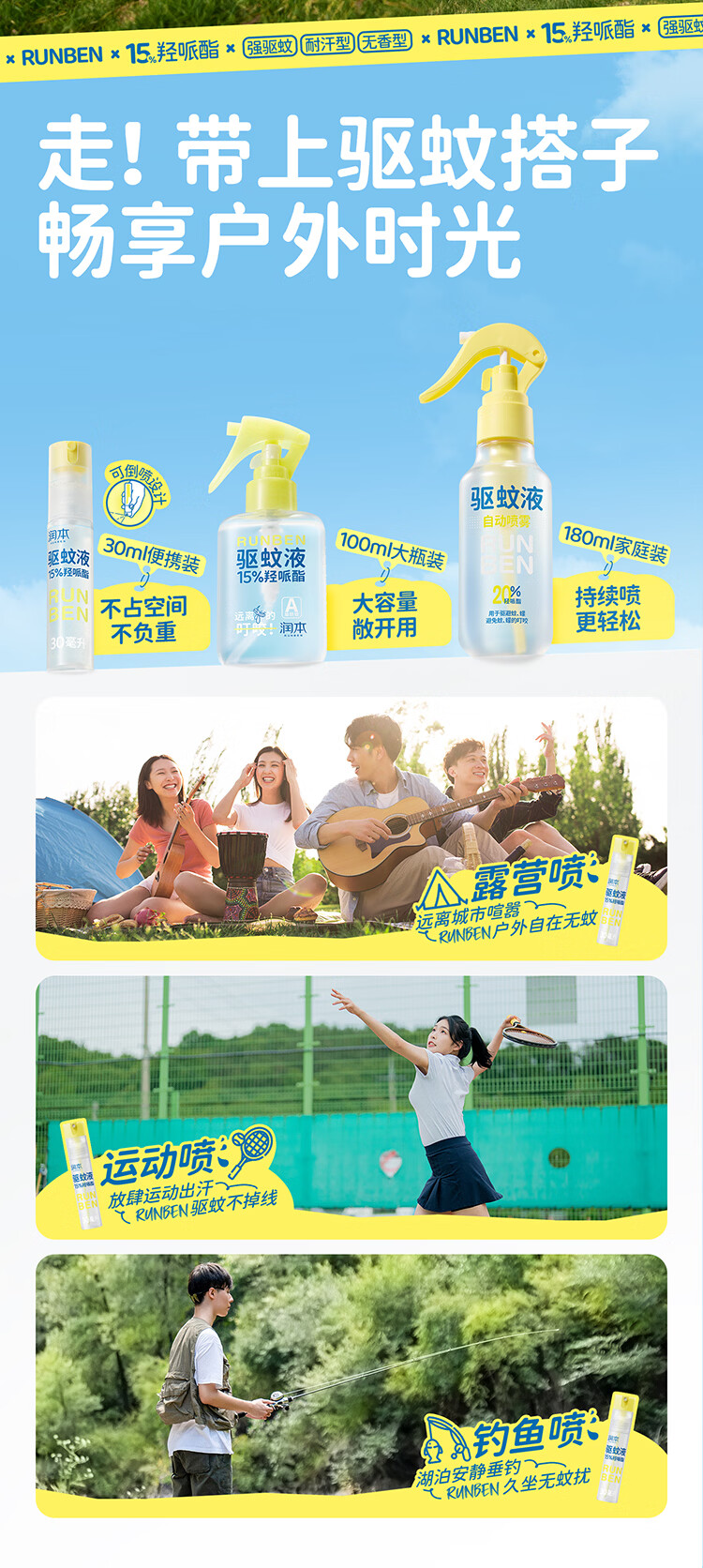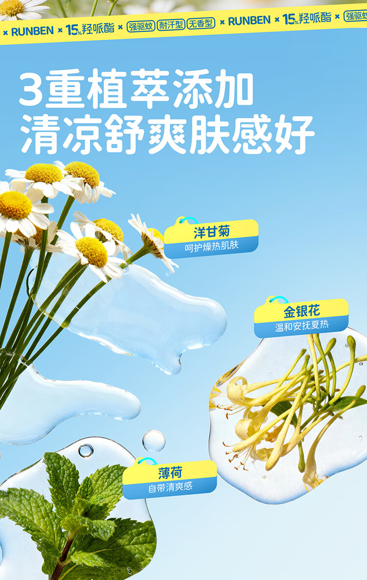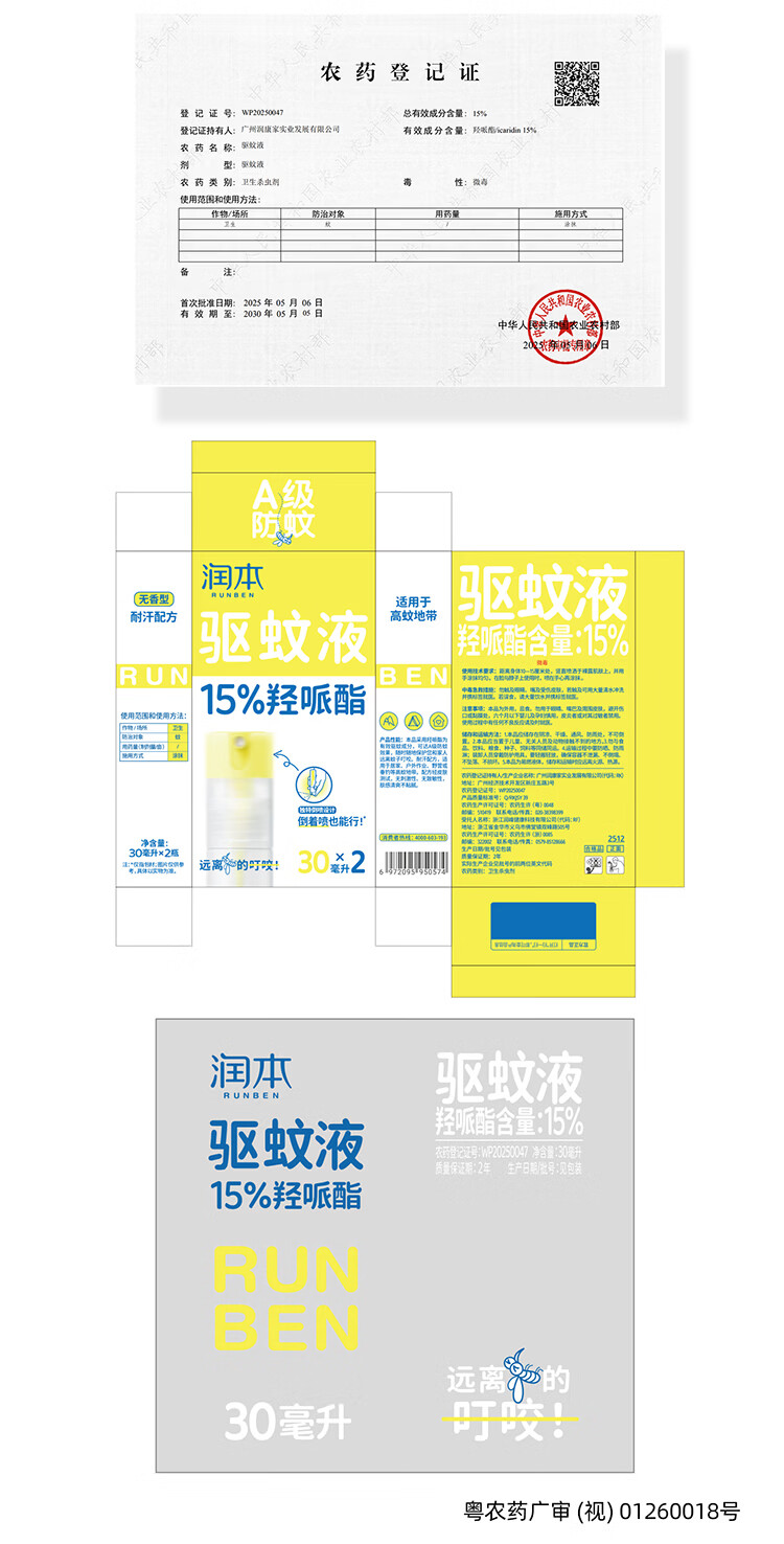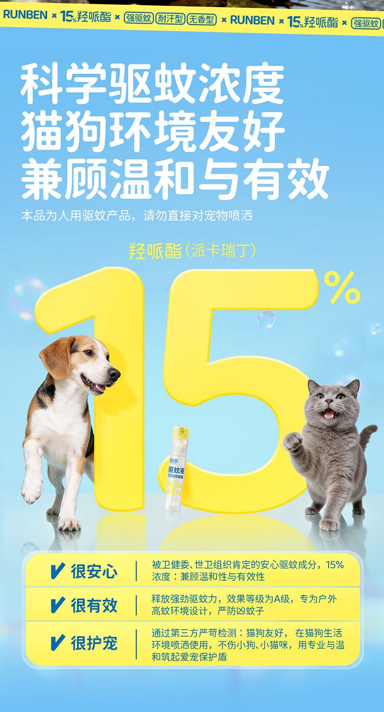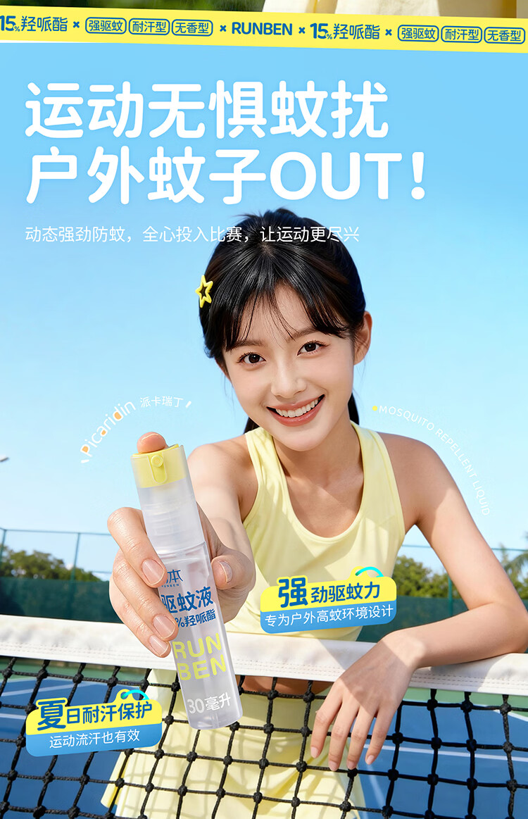 润本(RUNBEN)驱蚊液驱蚊喷雾花露水户外防蚊虫叮咬驱蚊水15%派卡瑞丁30ml*2 [15%羟哌酯-强劲驱蚊8h]30ml*2
