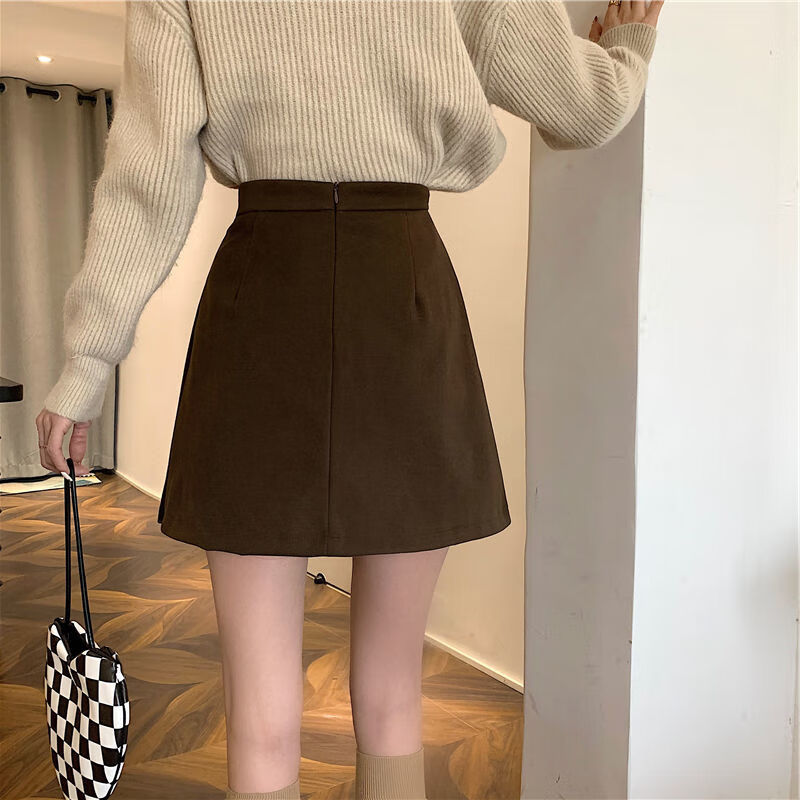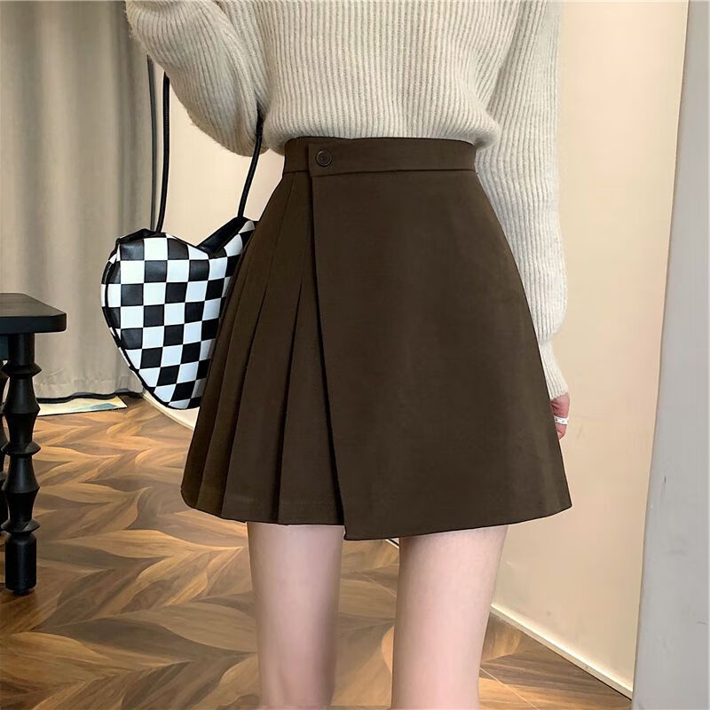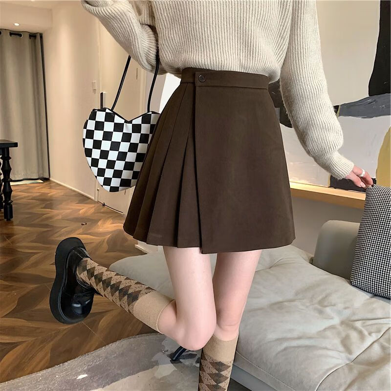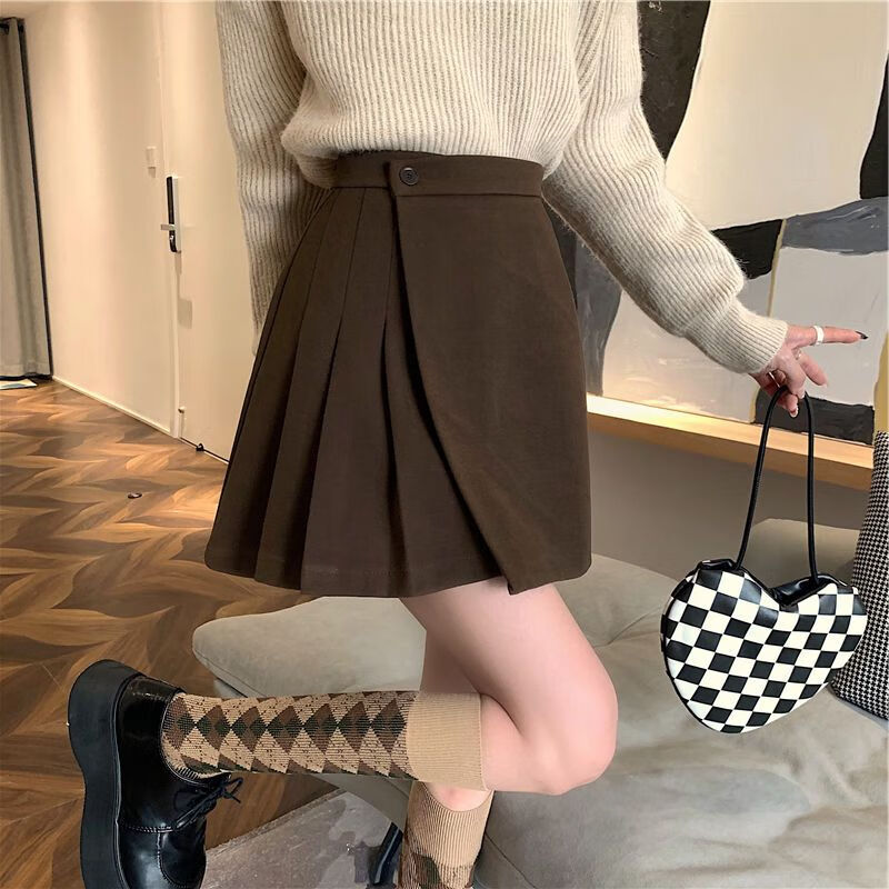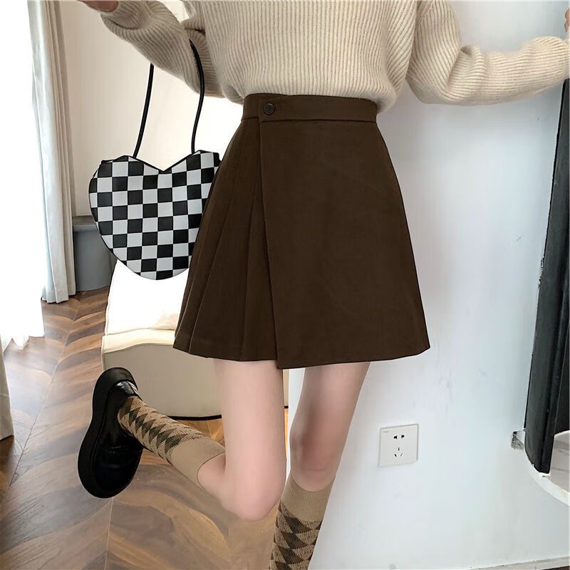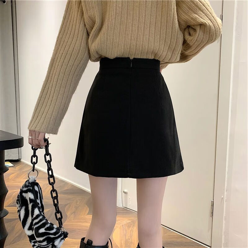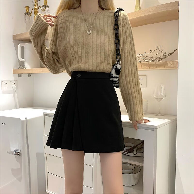 皮尔卡丹(pierre cardin)毛呢百褶裙春秋不规则半身裙子新款a字高腰显瘦包臀短裙 黑色 M码:建议100-110斤