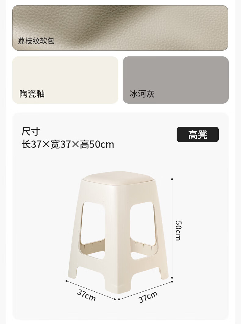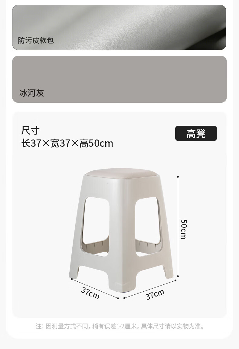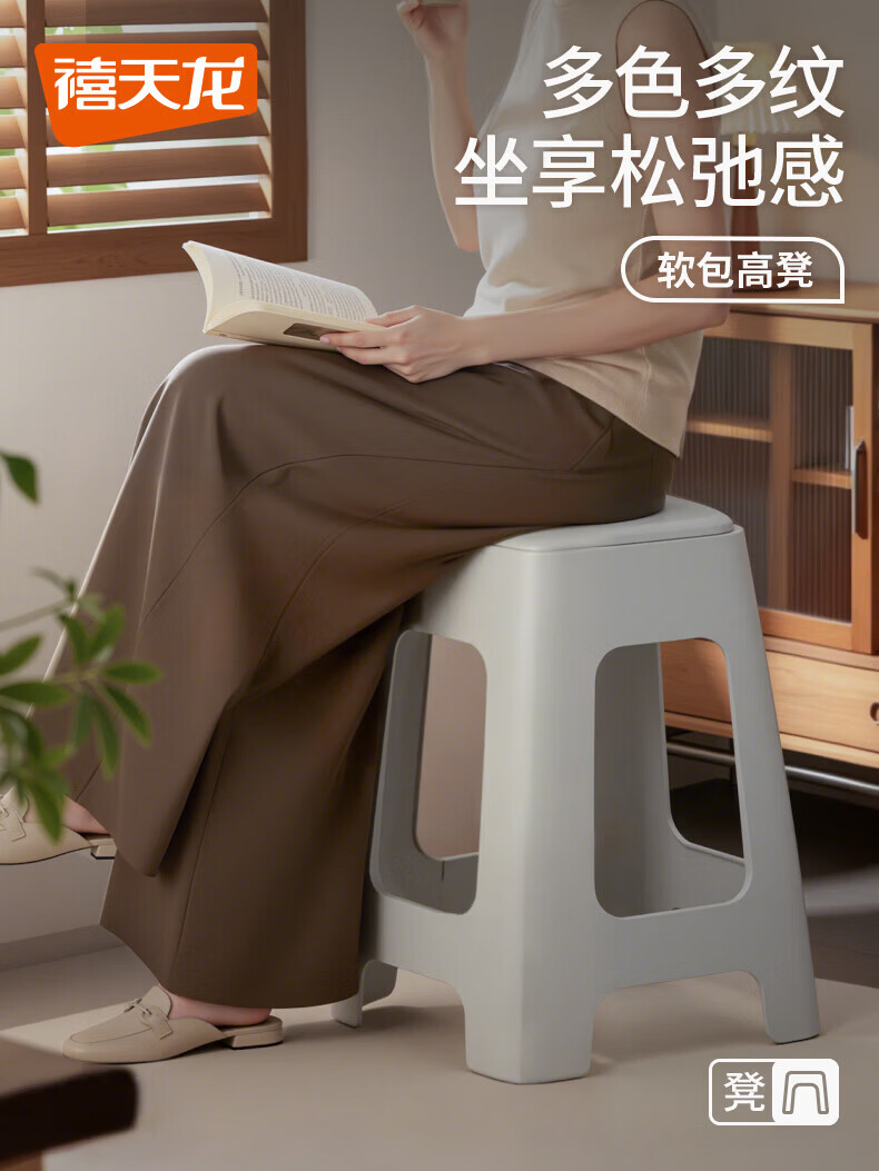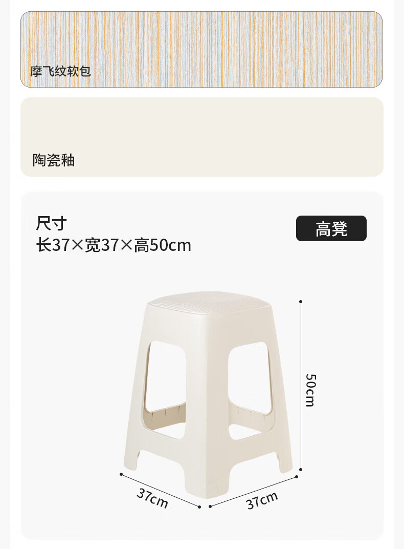 禧天龙皮革凳家用轻奢软包加厚客厅防滑塑料高凳叠放简约凳子可脚踏 荔枝纹软包高凳 陶瓷釉 1个装