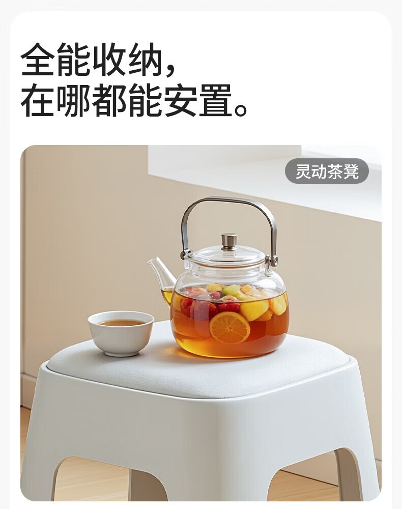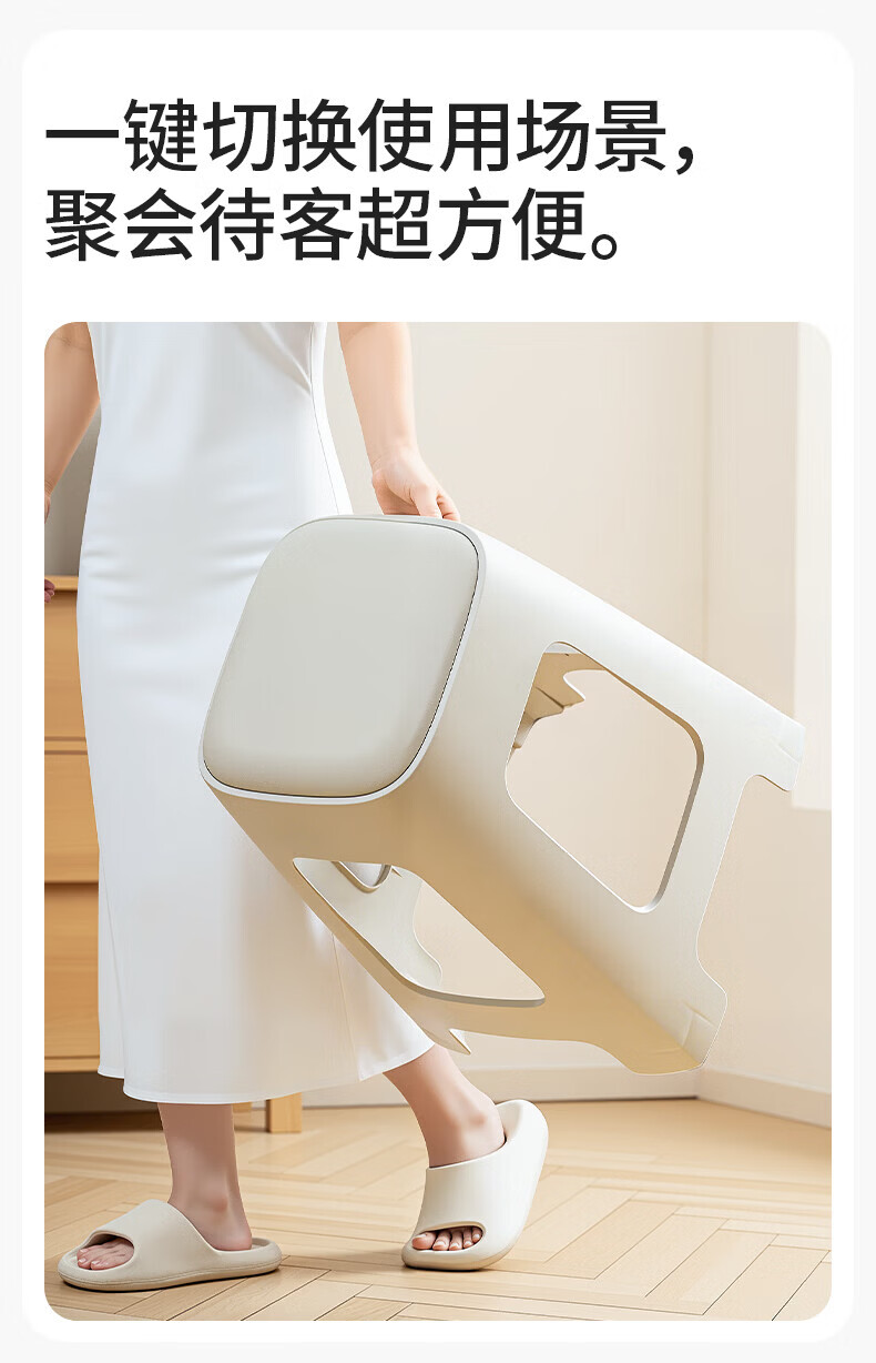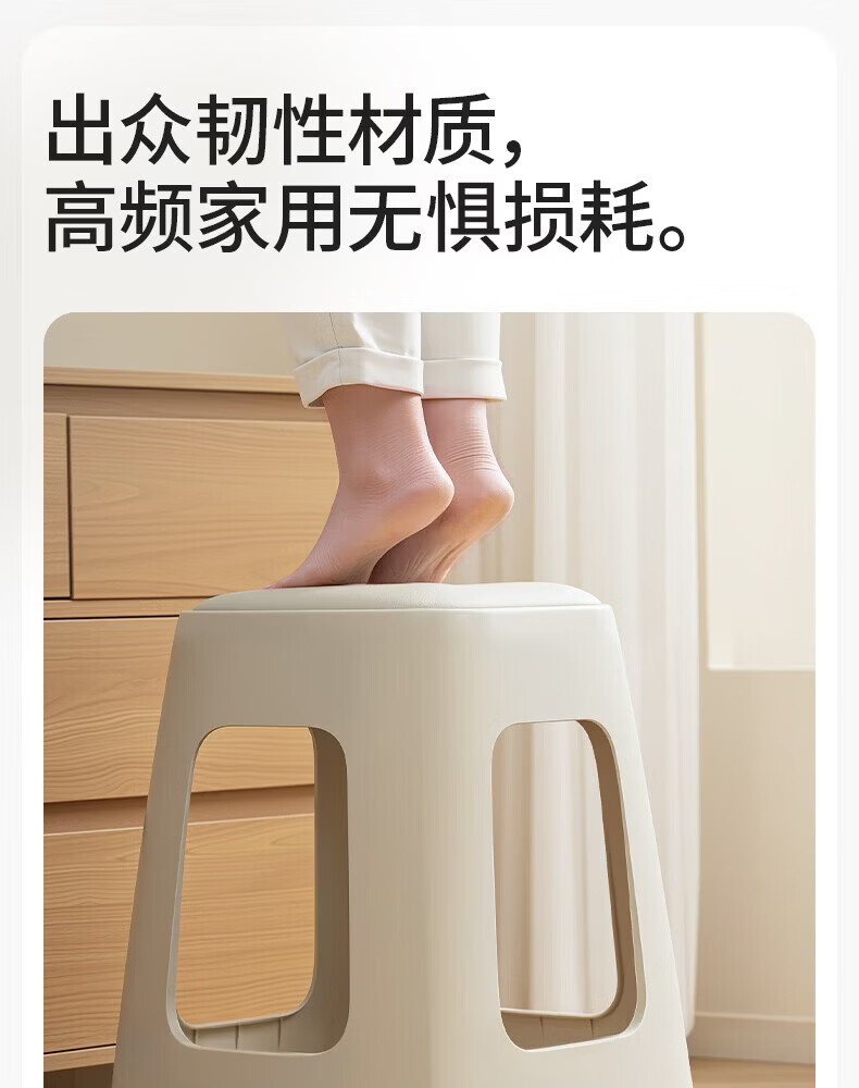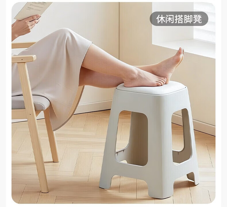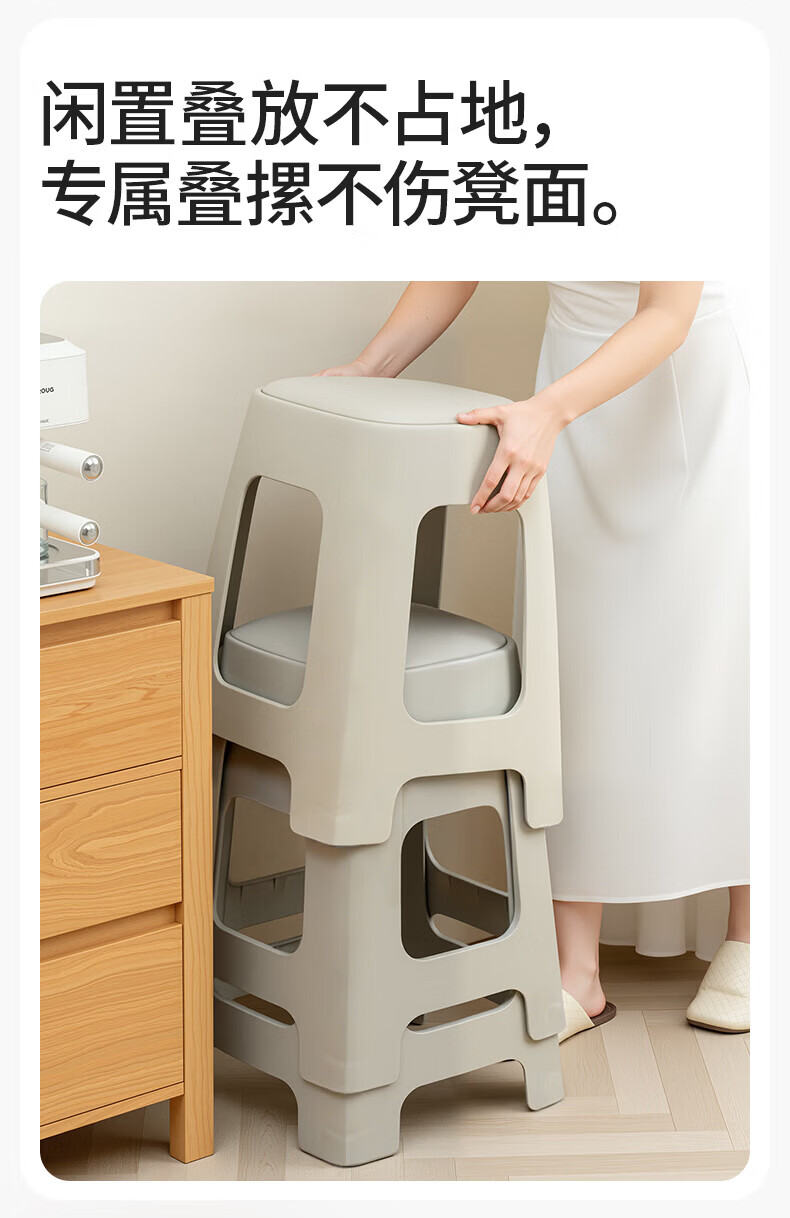禧天龙皮革凳家用轻奢软包加厚客厅防滑塑料高凳叠放简约凳子可脚踏 荔枝纹软包高凳 陶瓷釉 1个装