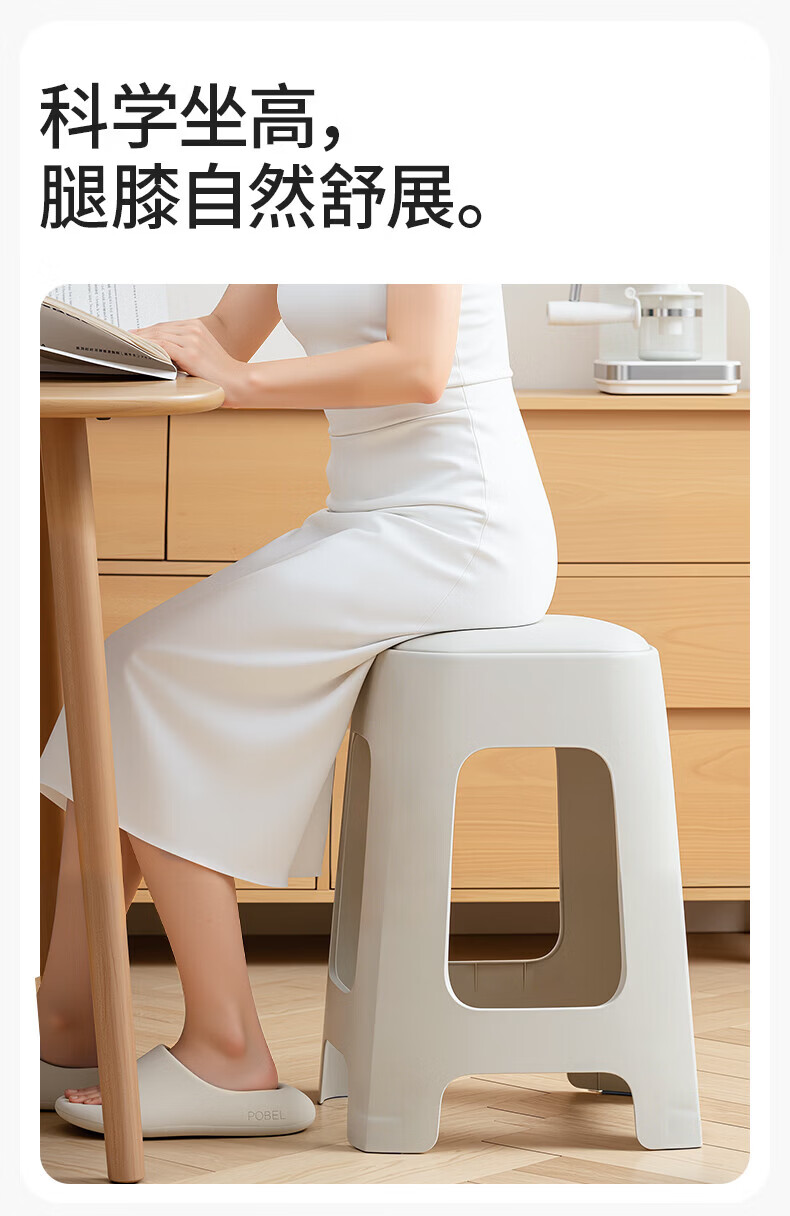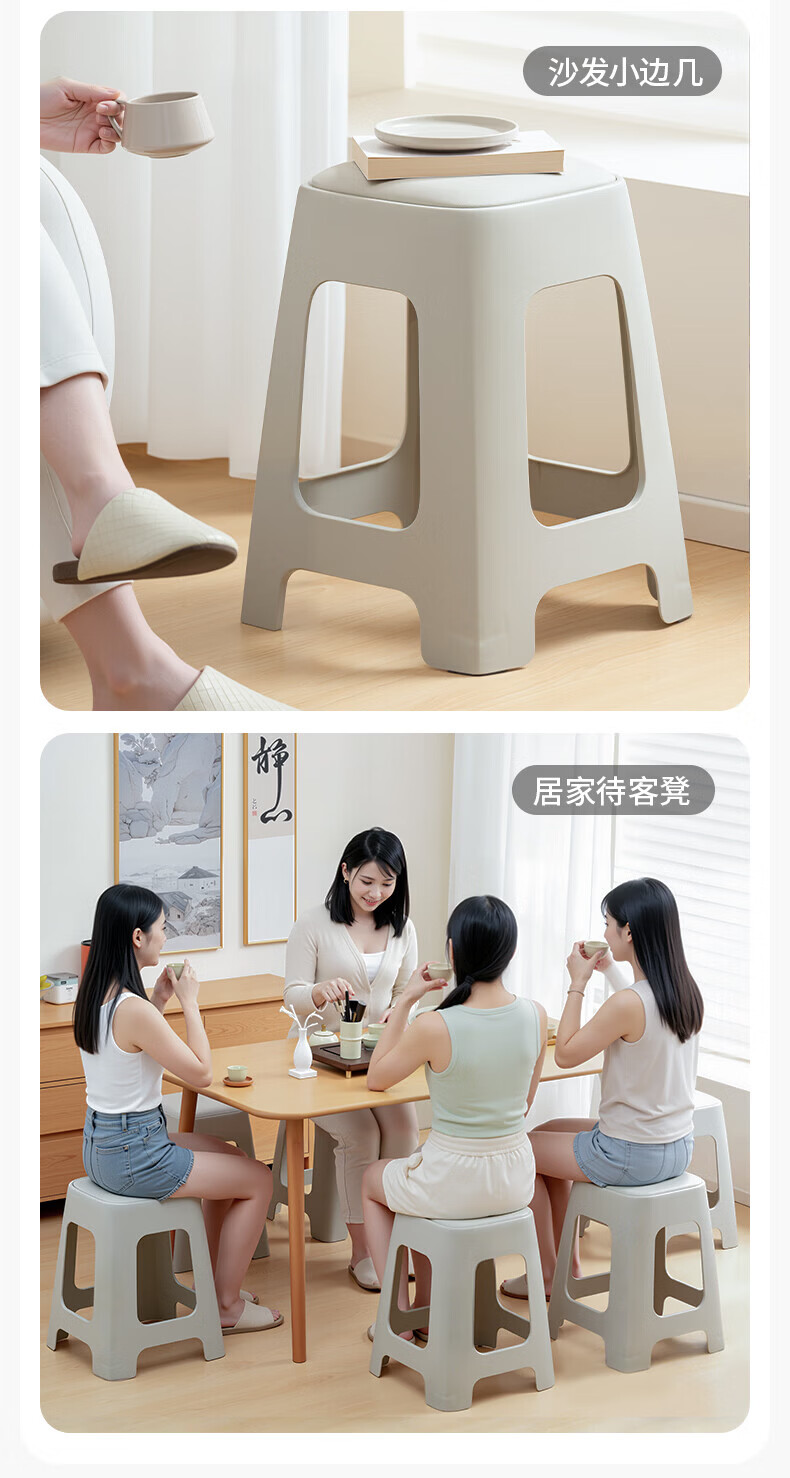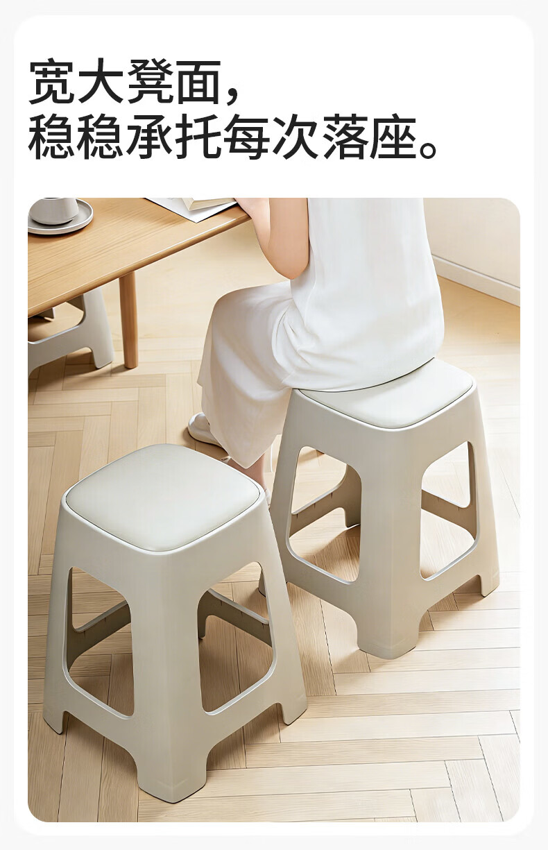 禧天龙塑料凳子家用餐桌椅子客厅高凳方凳板凳加厚带横梁软面高凳 矮凳1把【凳高35cm】冰河灰 【带横梁】室内百搭