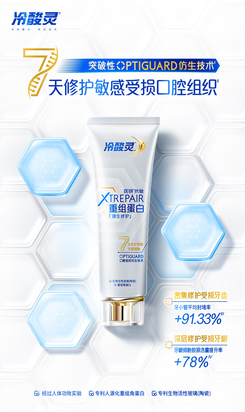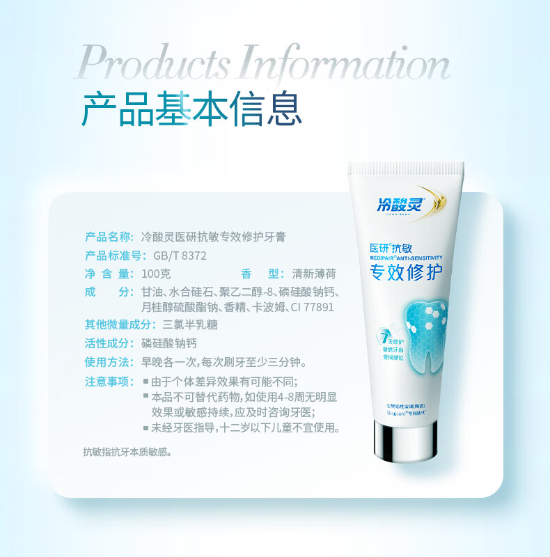 冷酸灵7天专效修护100g+医研抗敏重组蛋白牙膏100g牙膏护理套装共200g