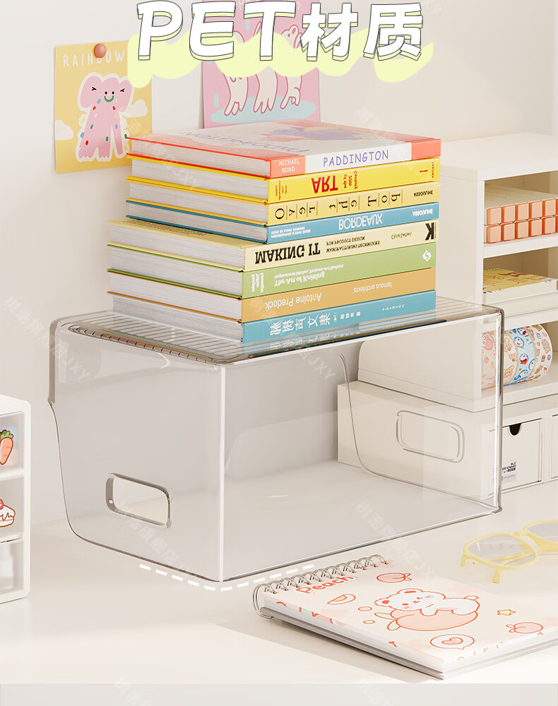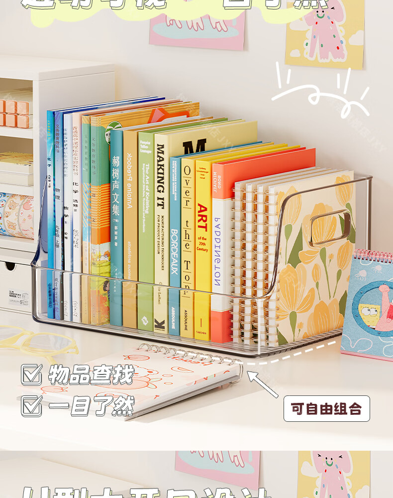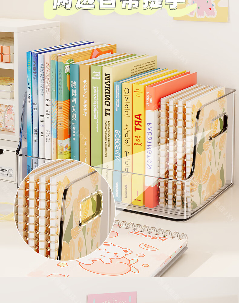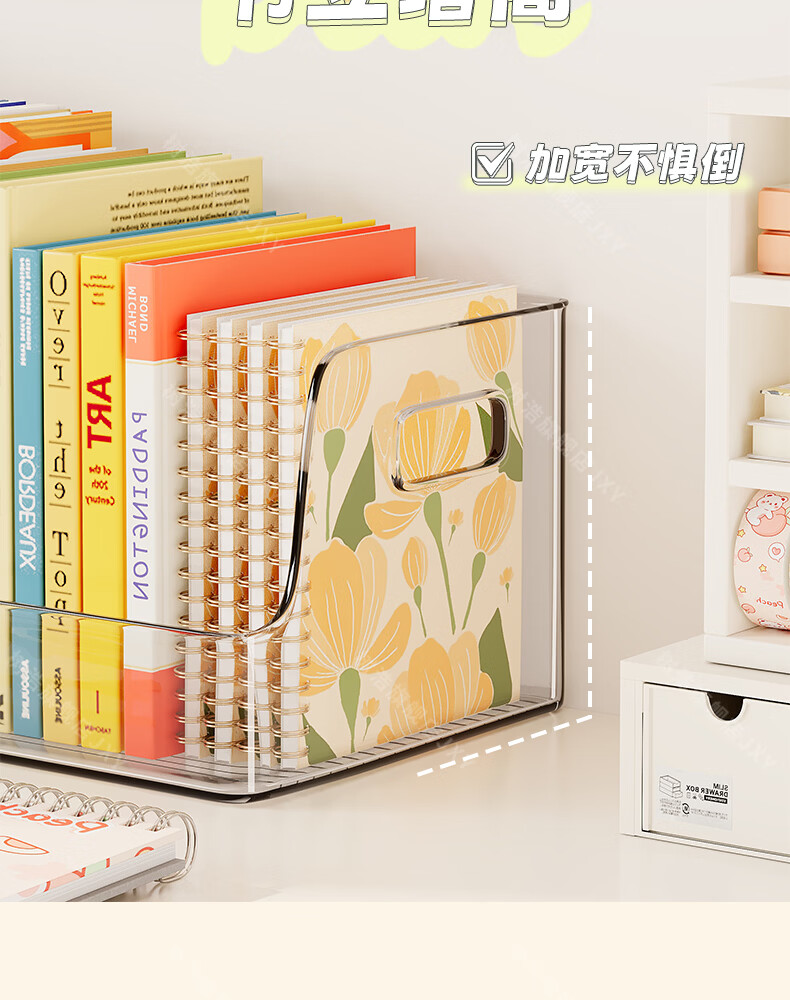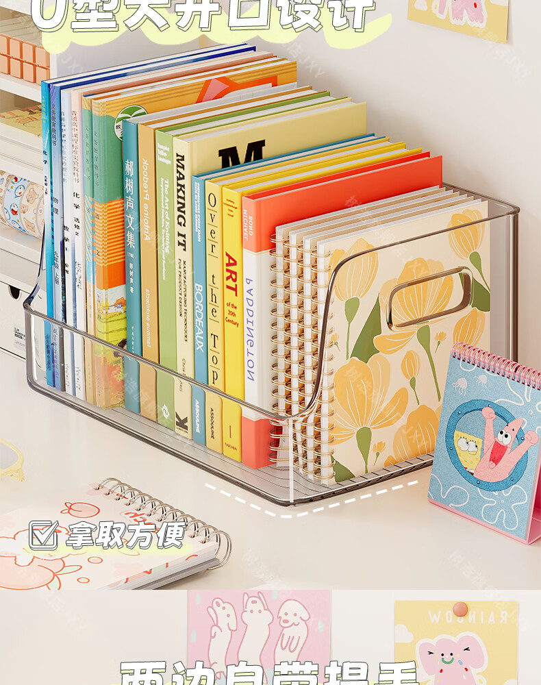树浩桌面书本架学生教室书立架宿舍桌上透明收纳盒办公室文件储物架子 【U形款】大号加量手提书盒【2个装】-送贴画