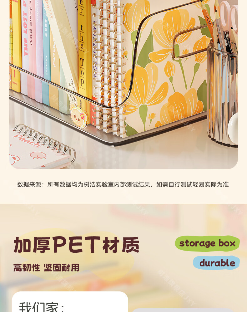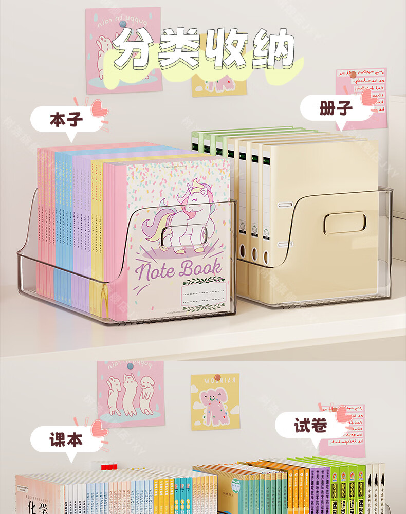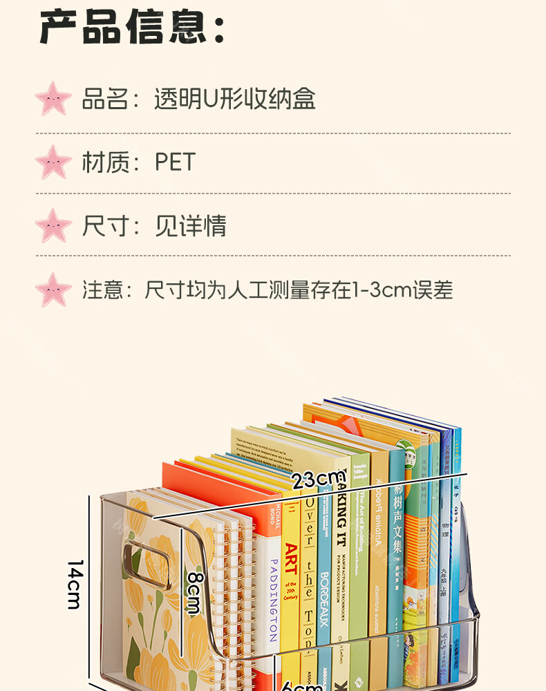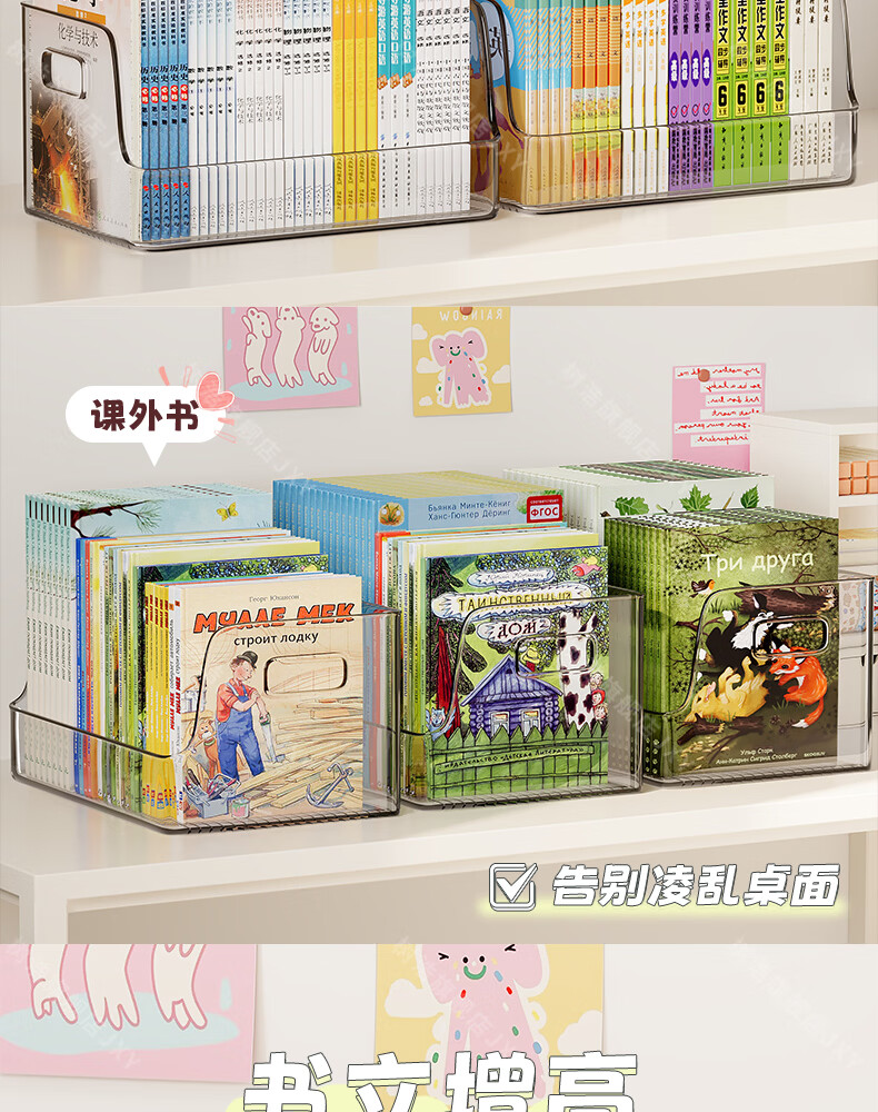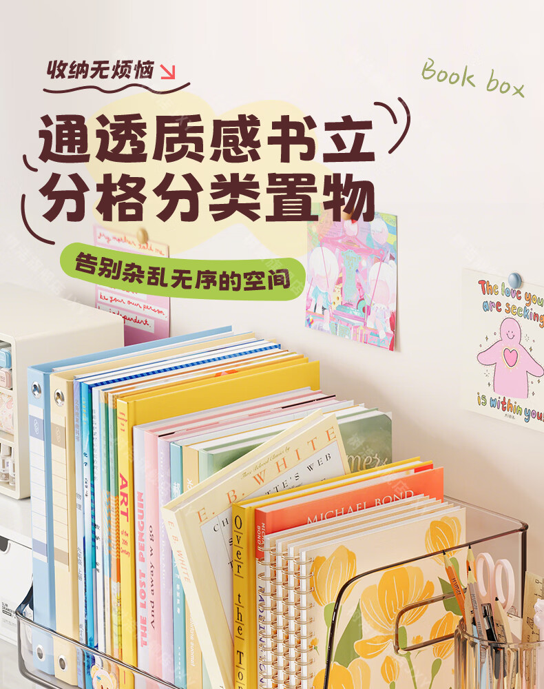 树浩桌面书本架学生教室书立架宿舍桌上透明收纳盒办公室文件储物架子 【U形款】大号加量手提书盒【2个装】-送贴画