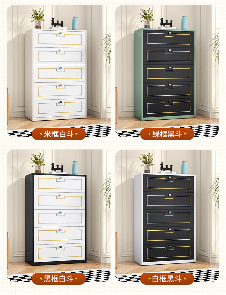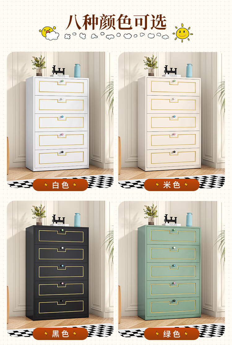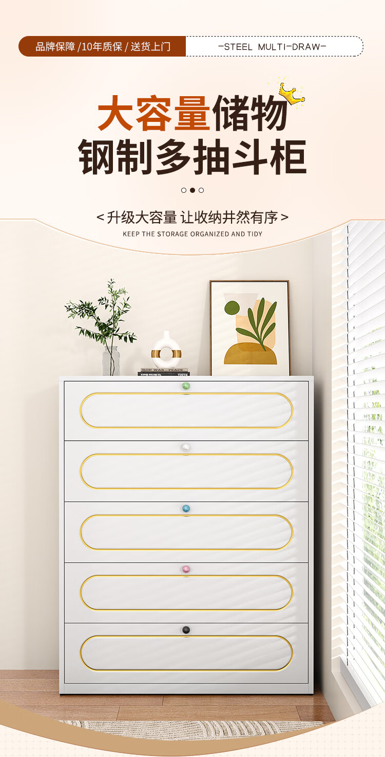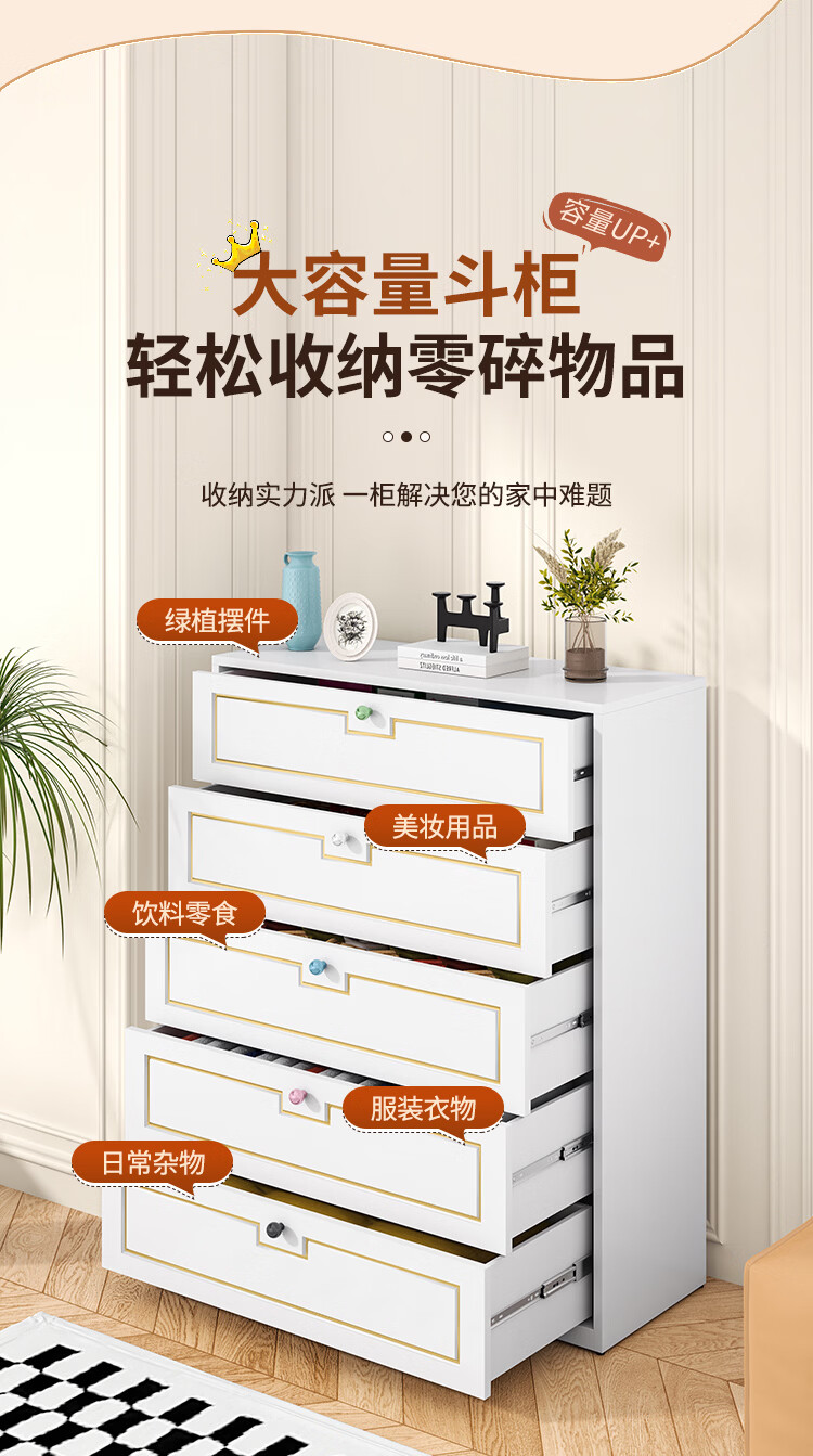 科虎斗柜客厅五斗柜卧室收纳柜铁艺储物柜 五斗60cm宽白色【采销推荐爆款TOP.1】