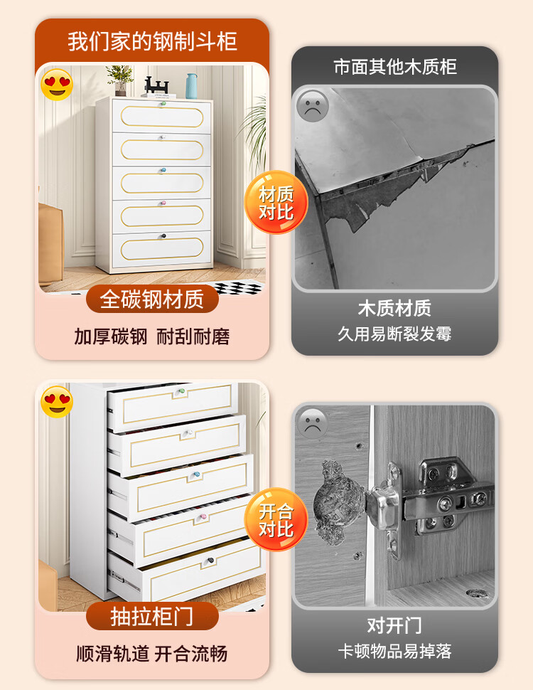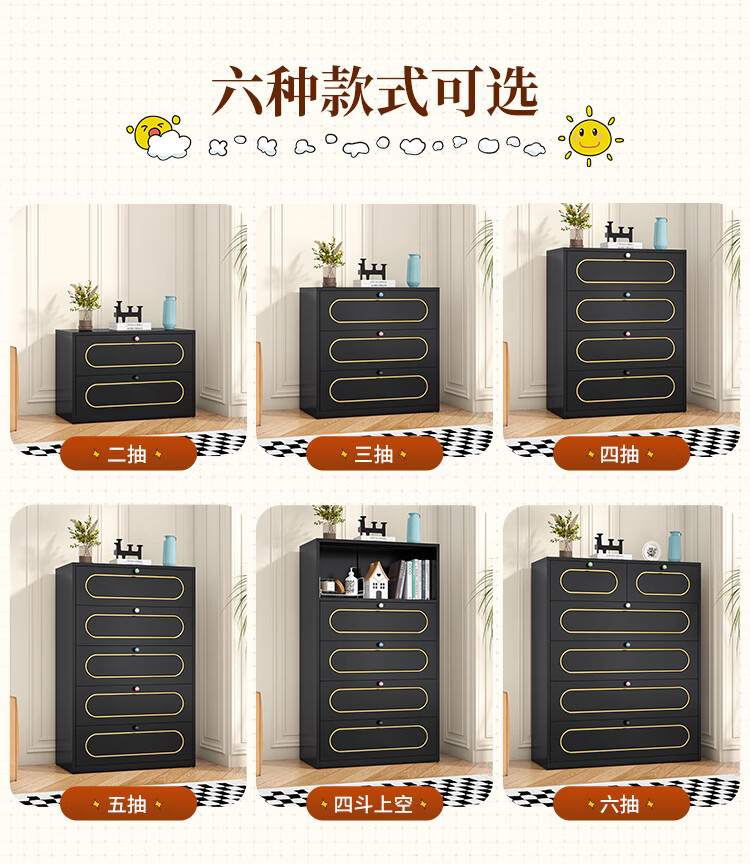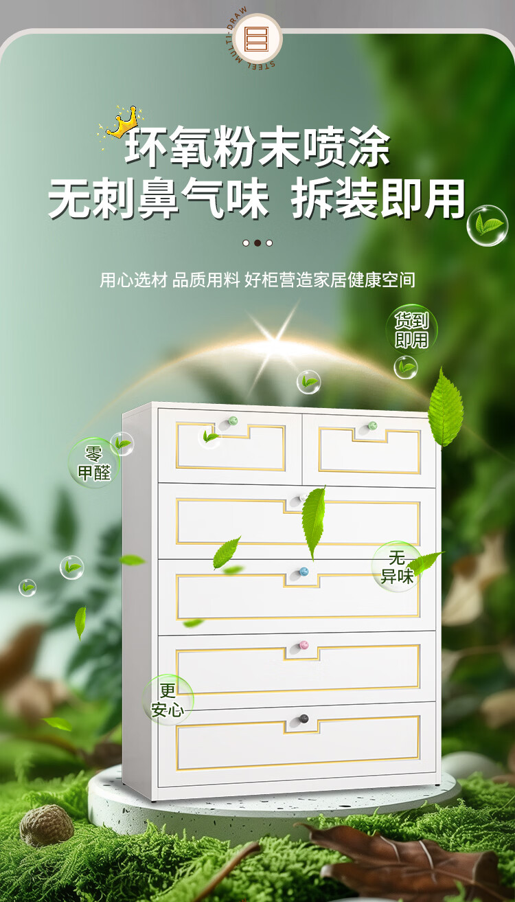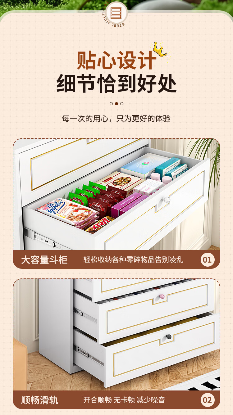 科虎斗柜客厅五斗柜卧室收纳柜铁艺储物柜 五斗60cm宽白色【采销推荐爆款TOP.1】