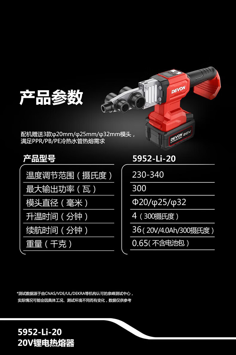 大有(Devon)5952锂电热熔器家用水管热熔管焊接器水电工程焊接机热熔机 5952单机【不含电池充电器】