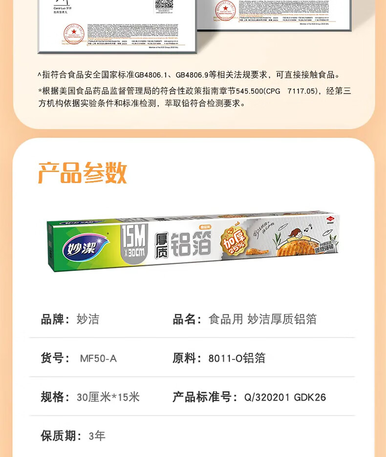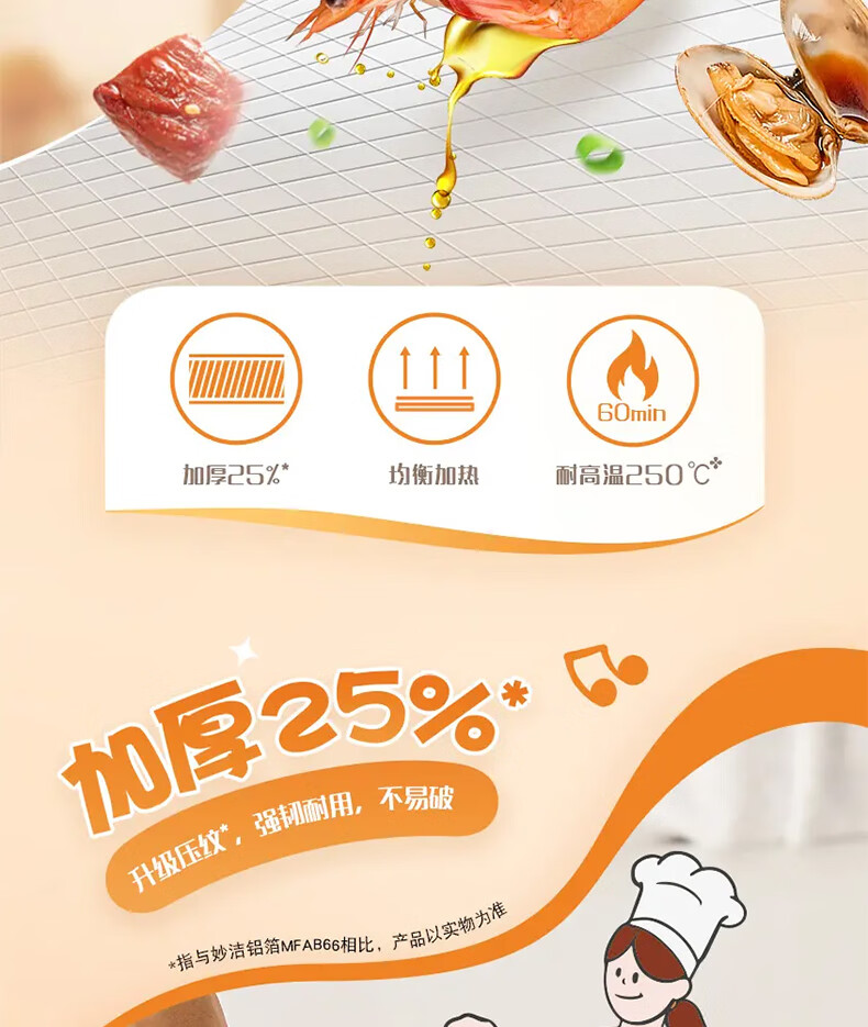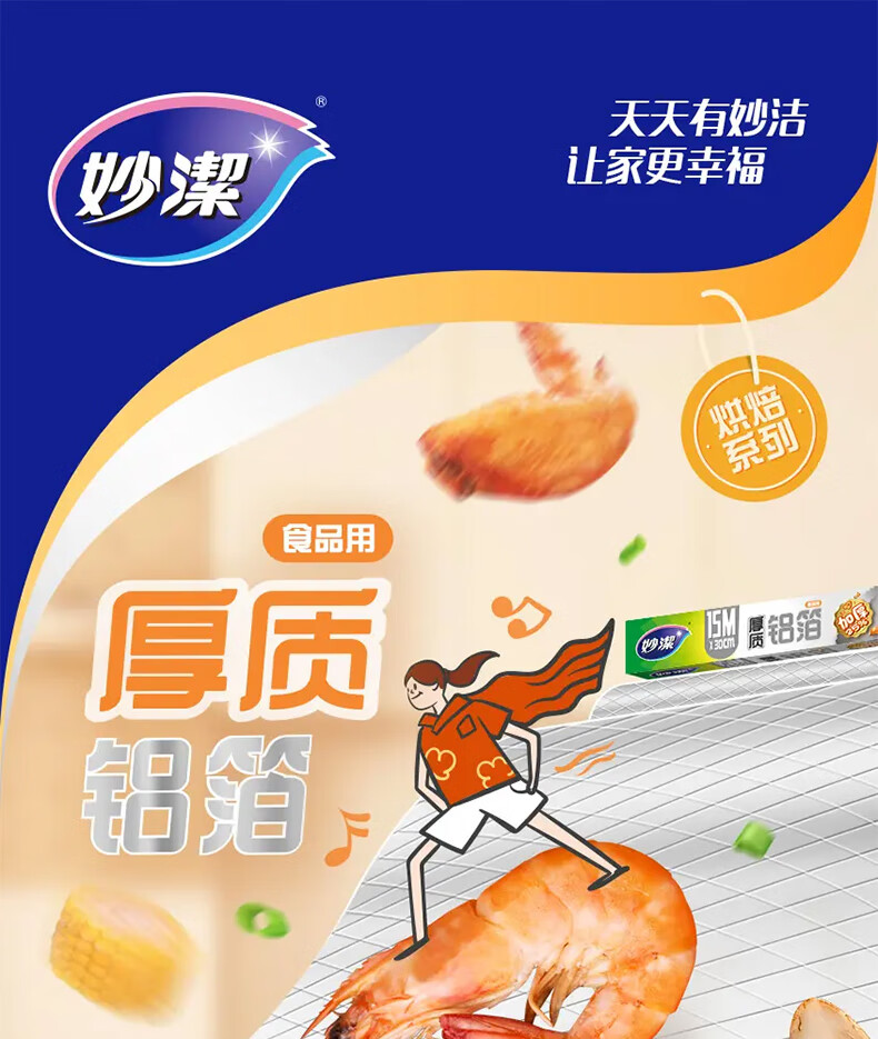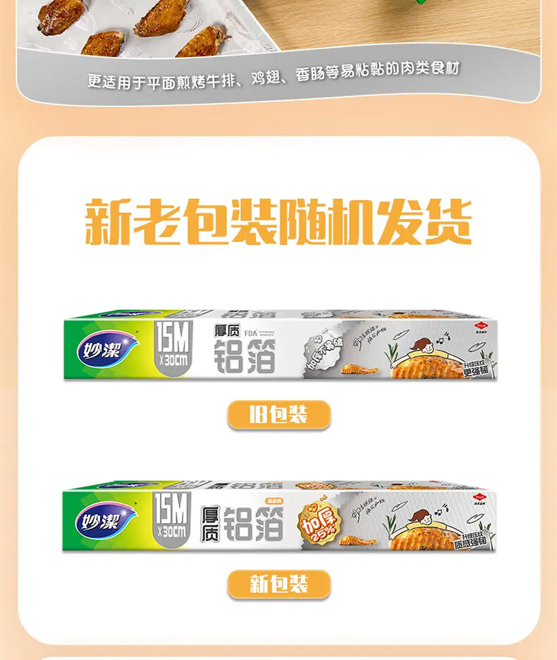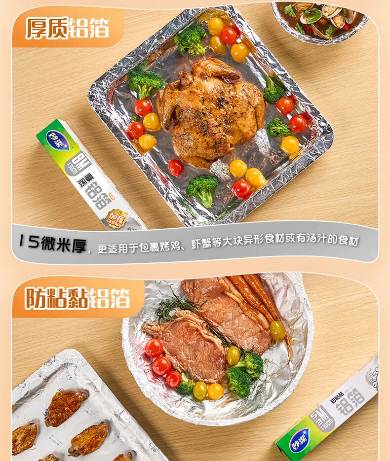 妙洁厚致铝箔30cm*45米 烘培烧烤烤箱空气炸锅烤盘锡纸