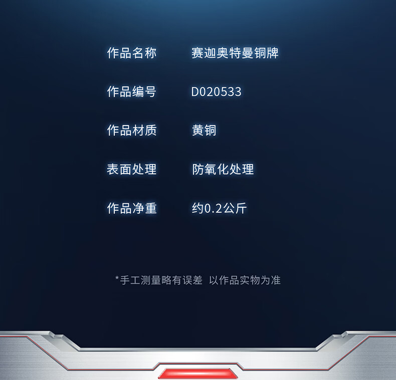 铜师傅正版授权《奥特曼铜牌》奥特曼系列限量手办 面铜摆件 赛罗奥特曼铜牌