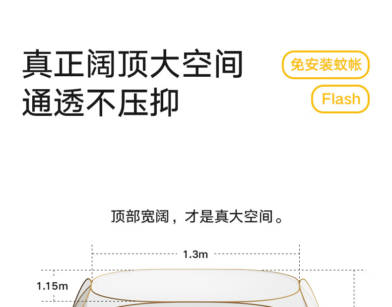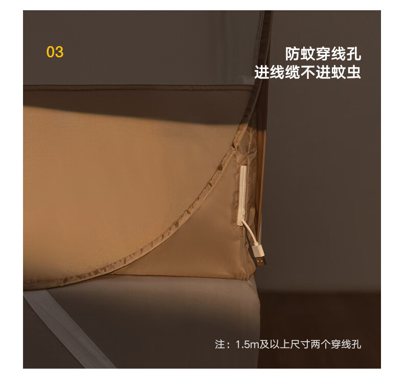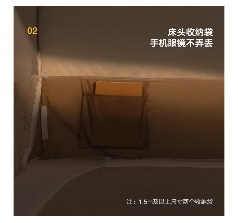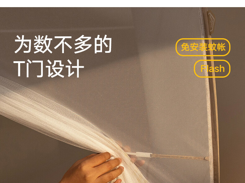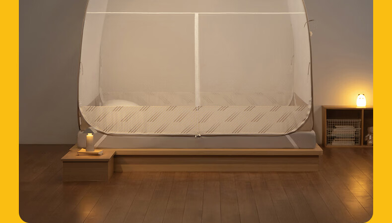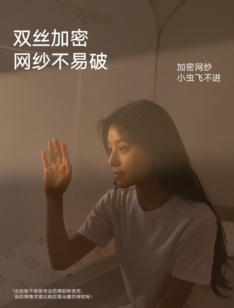 美朵嘉(MEDOGA)免安装蒙古包蚊帐卧室 三开门进出方便 1.5x2米浅棕【可折叠】