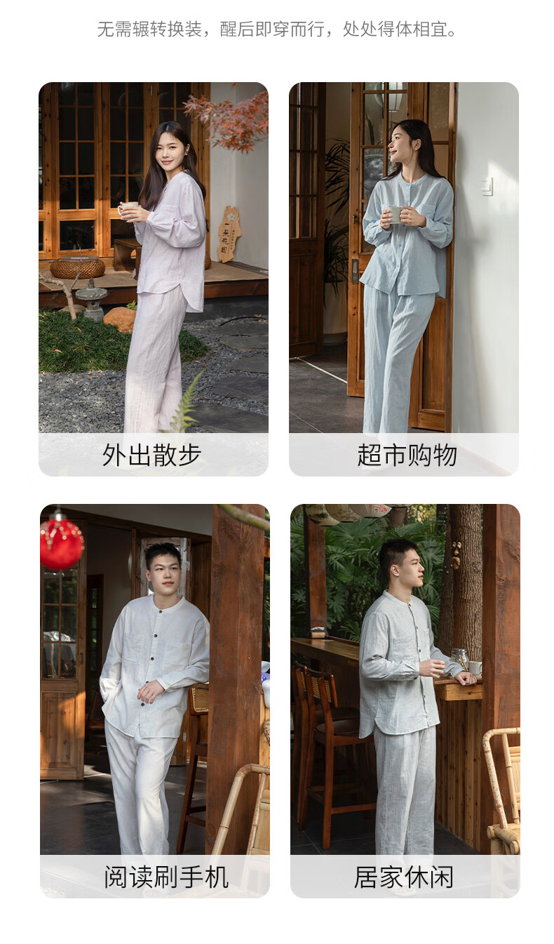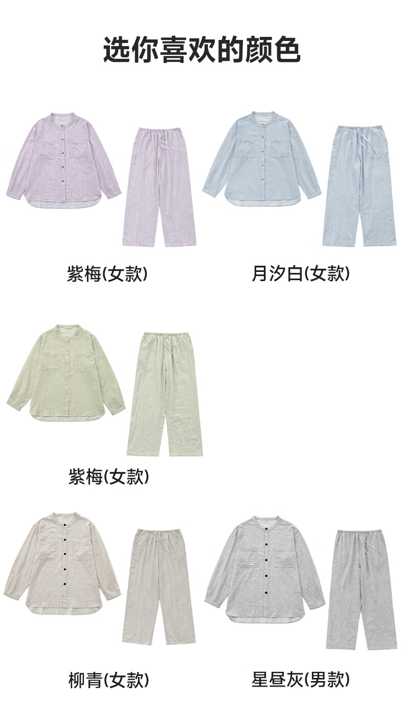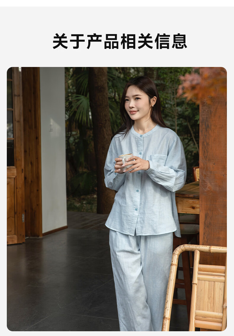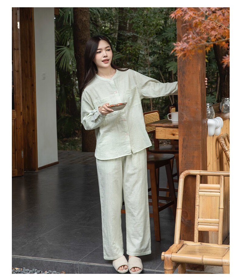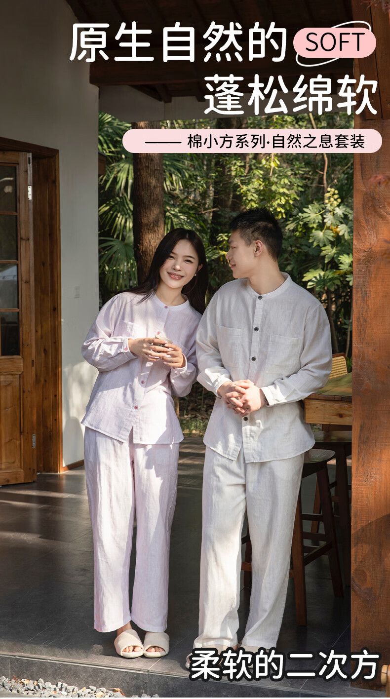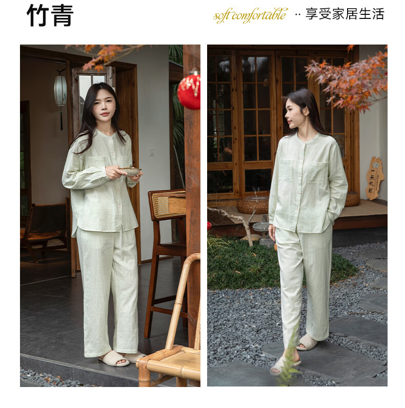宜色家女士纯棉睡衣双层棉纱家居服 V领七分袖带胸垫A类透气宽松抗静电 薰衣草 M (女80-120斤)