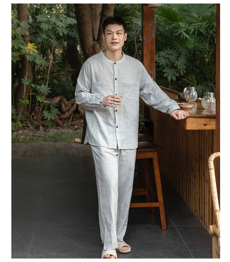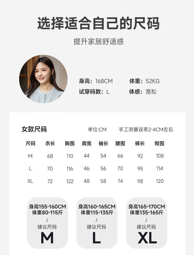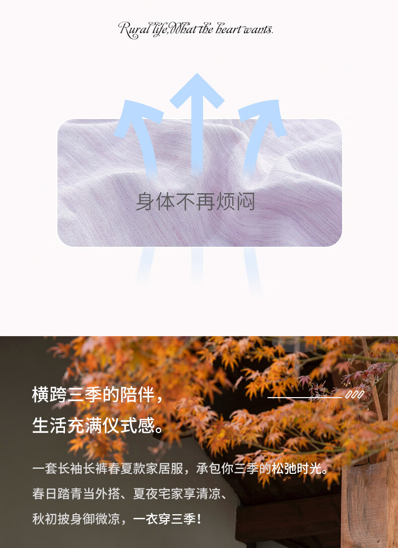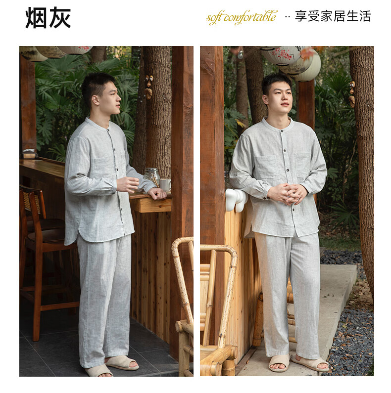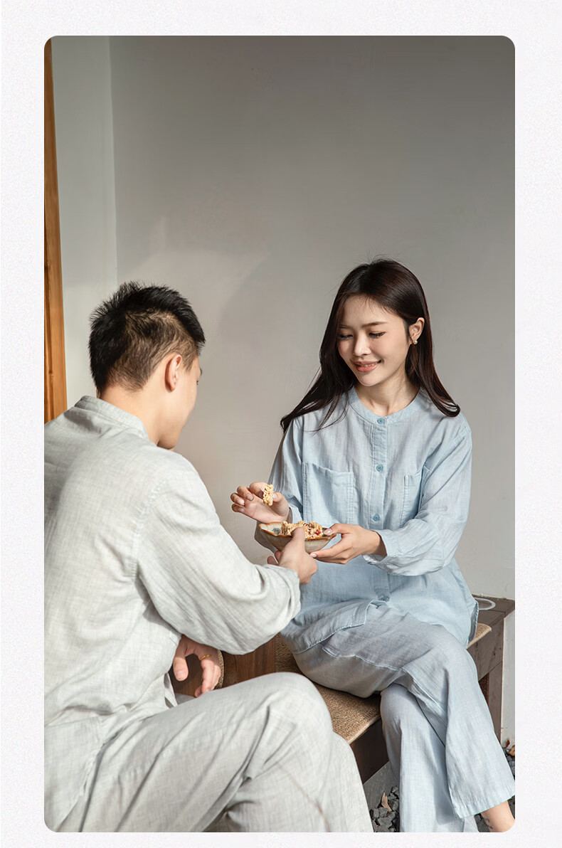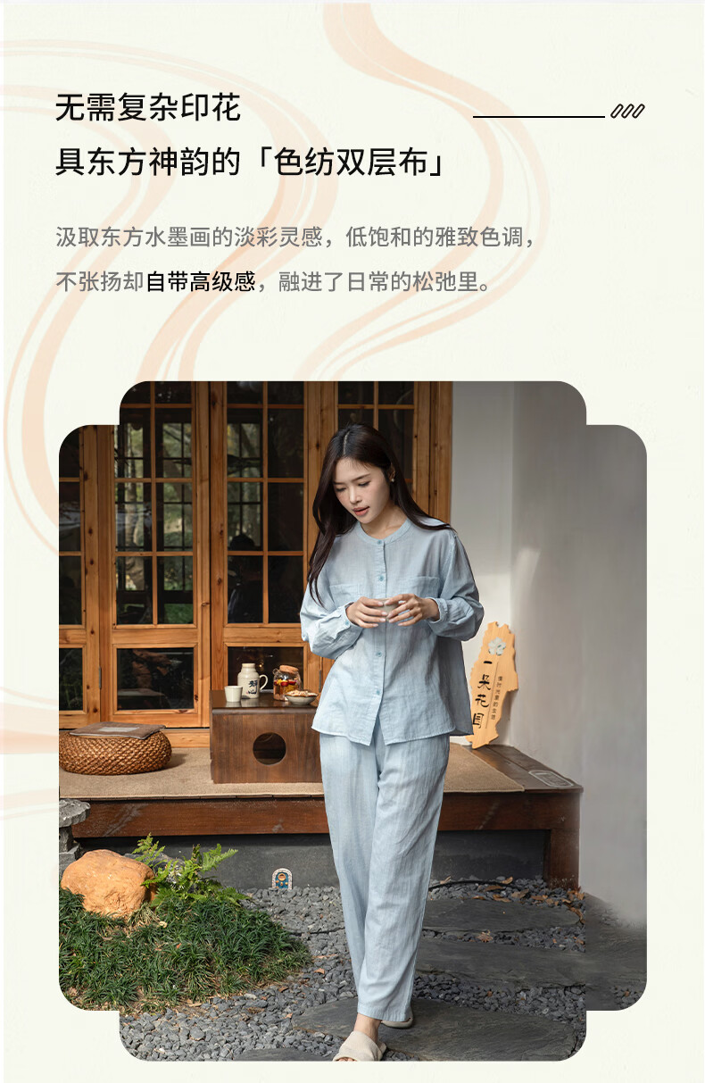 宜色家女士纯棉睡衣双层棉纱家居服 V领七分袖带胸垫A类透气宽松抗静电 薰衣草 M (女80-120斤)