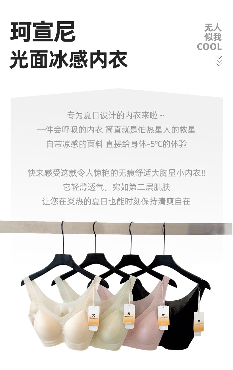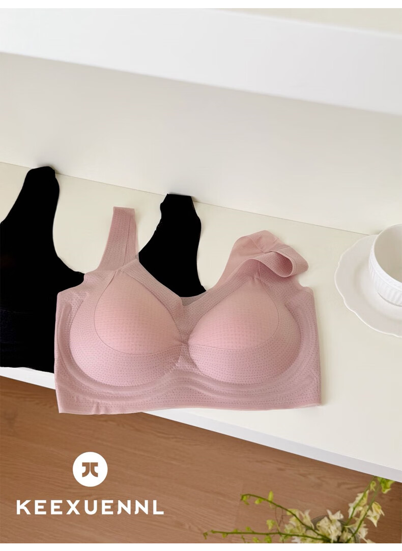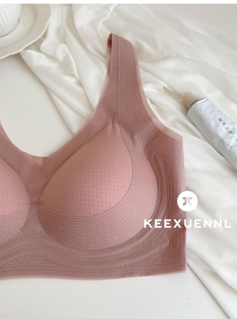 Keexuennl冰感无痕内衣女夏季薄款大胸显小胸罩聚拢防下垂收副乳文胸 豆沙粉 2XL