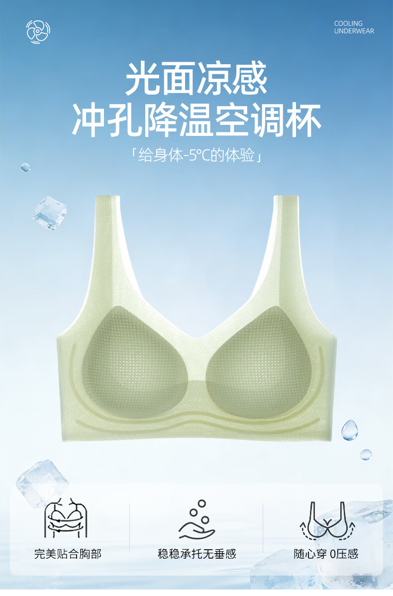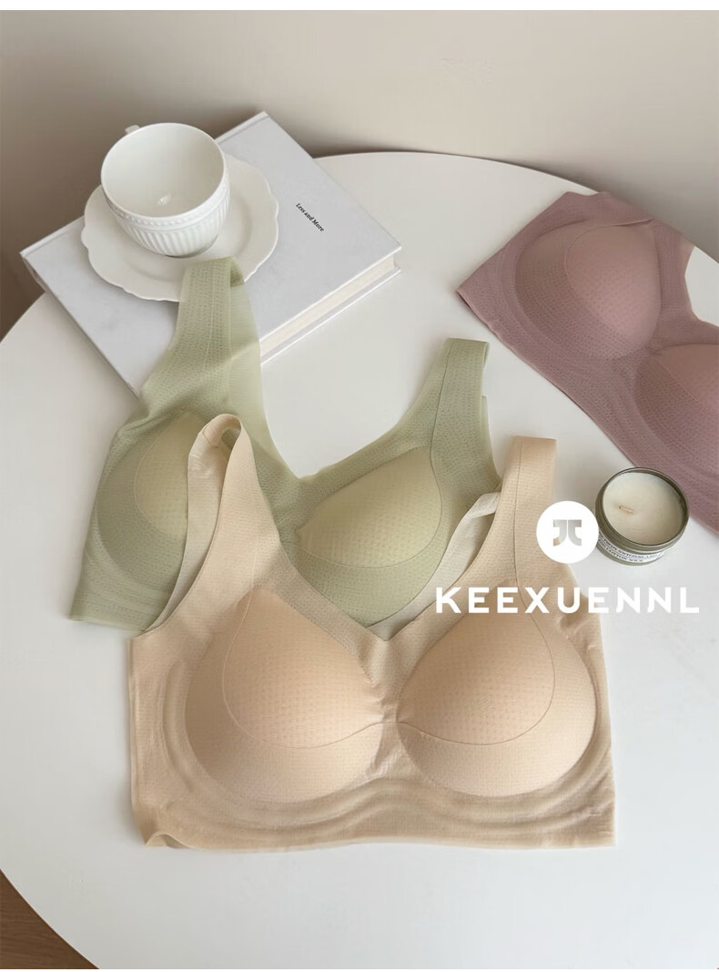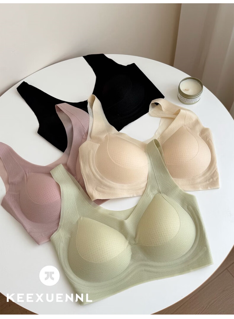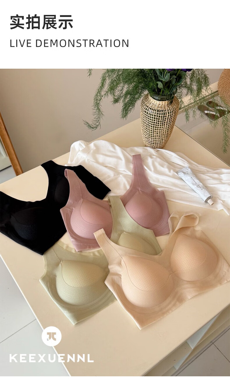 Keexuennl冰感无痕内衣女夏季薄款大胸显小胸罩聚拢防下垂收副乳文胸 豆沙粉 2XL