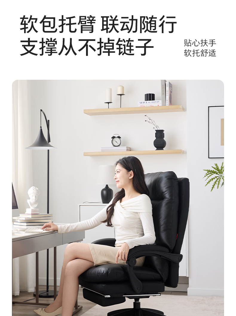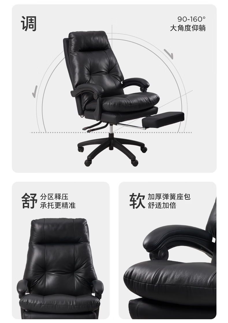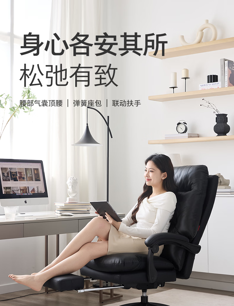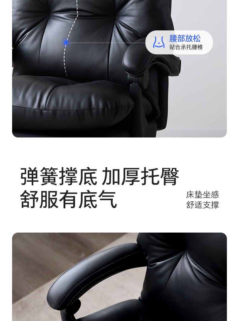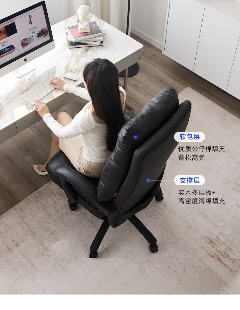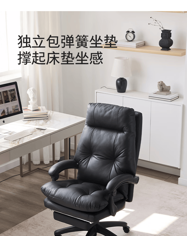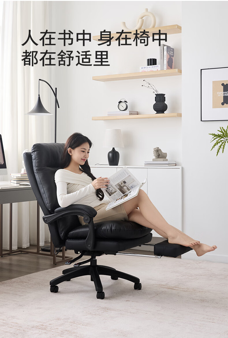 顾家家居老板椅舒适弹簧包久坐人体工学椅午休可躺电脑椅家用办公书房椅子 经典黑 猫抓皮 弹簧座包