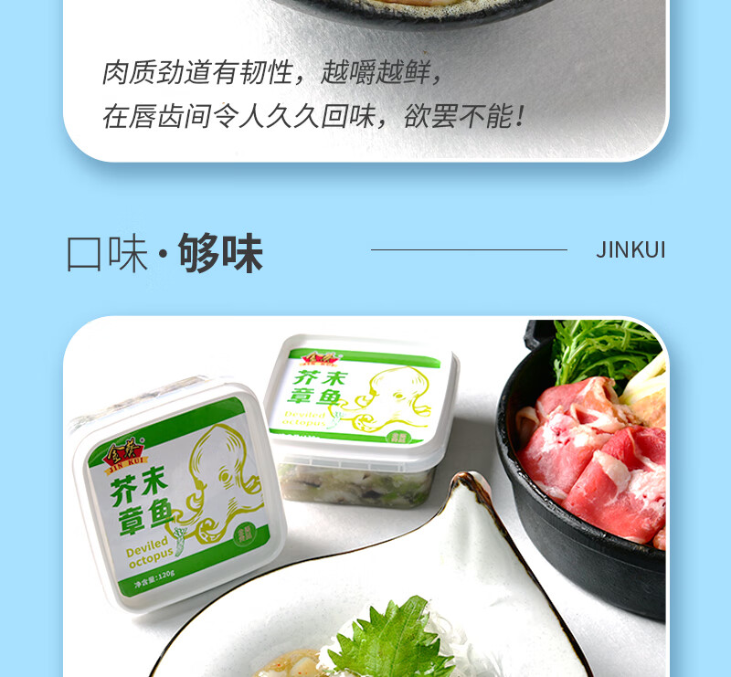 金葵芥末章鱼寿司料理下酒菜下饭菜食材海鲜冷冻即食小菜章鱼段 四盒