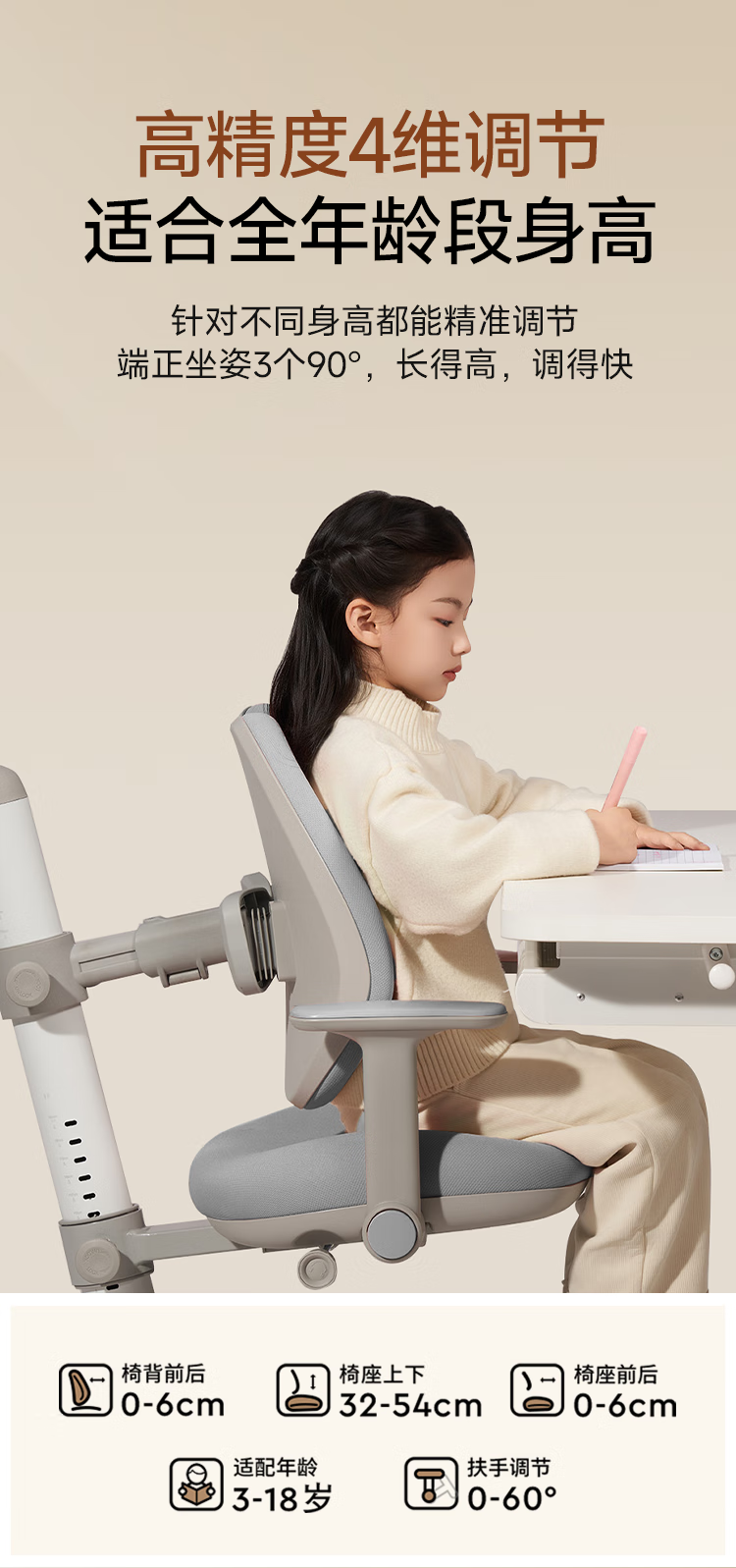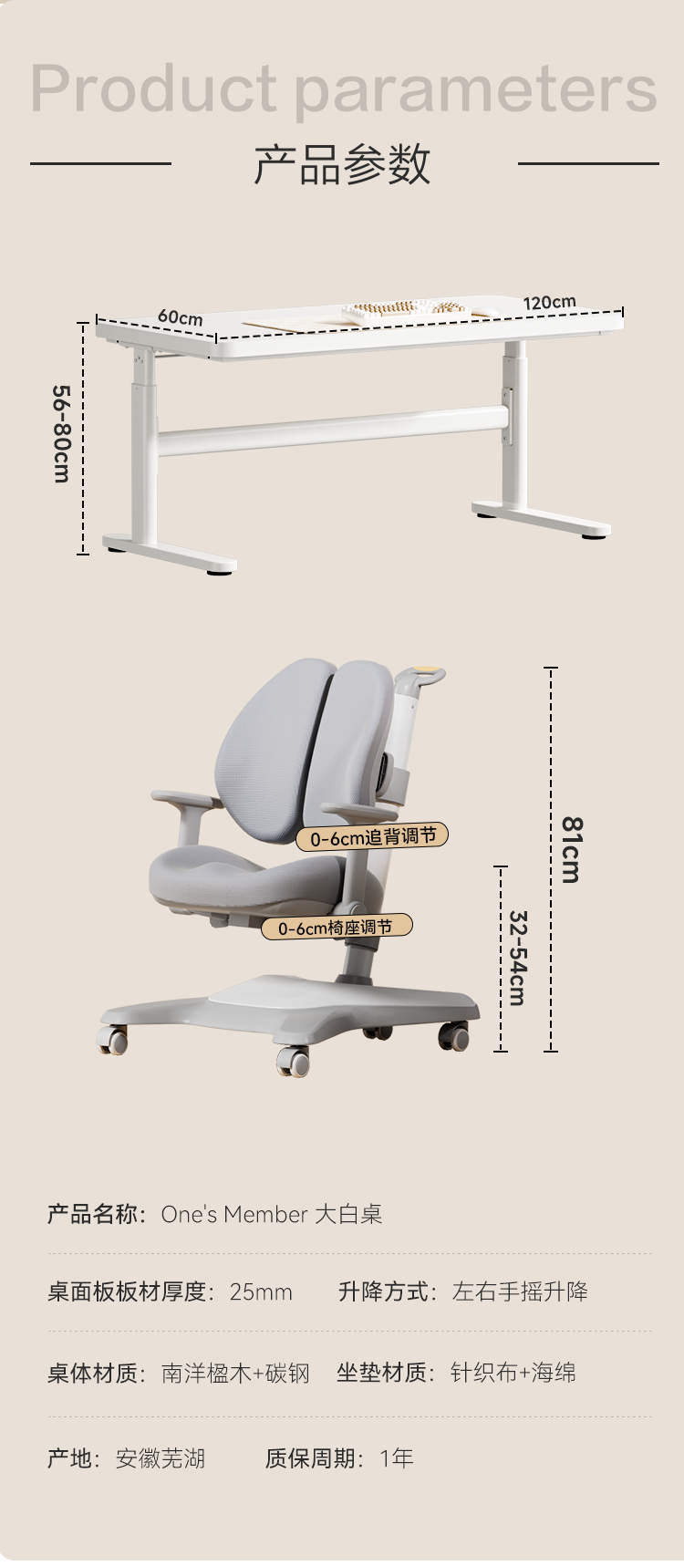 1号会员店(One's Member)儿童学习桌书桌升降桌实木写字桌家用电脑桌大白桌1.2米