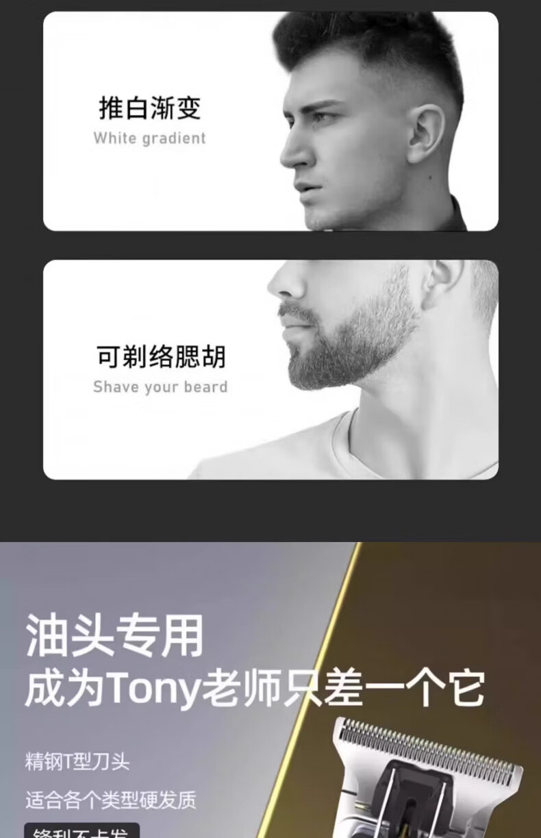 DIKTT德国】理发器剃光头神器理发推剪男士自己剪儿童家用全家通用发廊专用理发推剪剃光头刮胡子大功率 枪灰色【精钢刀头 金属机身】 2026新款理发器【安全锋利 剪发不卡】