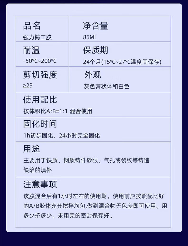 铸工胶粘接金属不锈钢暖气片修补电焊铸铁硬塑料补漏防水耐高温焊接胶 铸工胶一只装