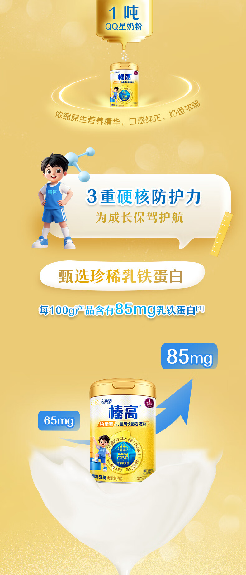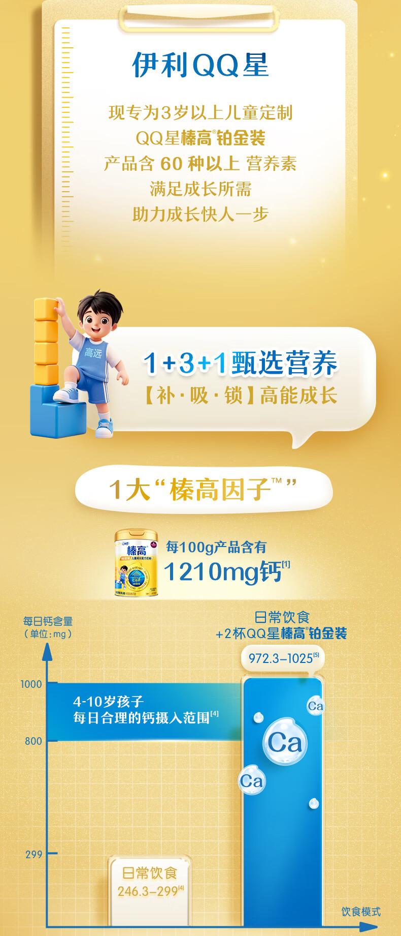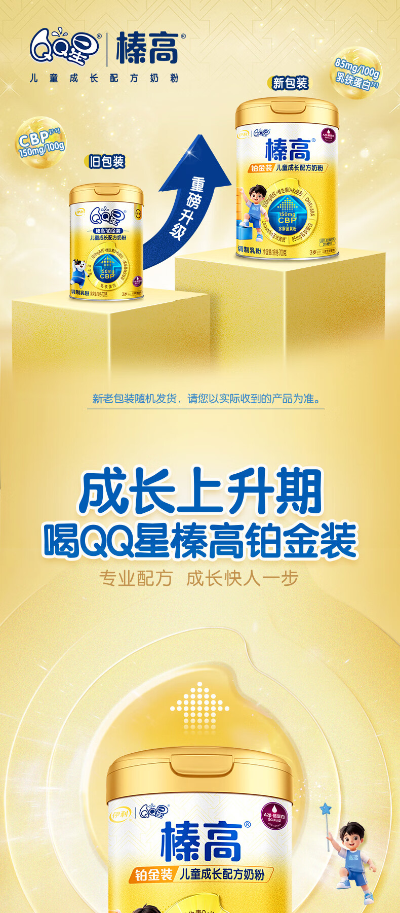 伊利QQ星榛高铂金儿童成长奶粉4段3-12岁700g*1罐 CBP/DHA/乳铁蛋白