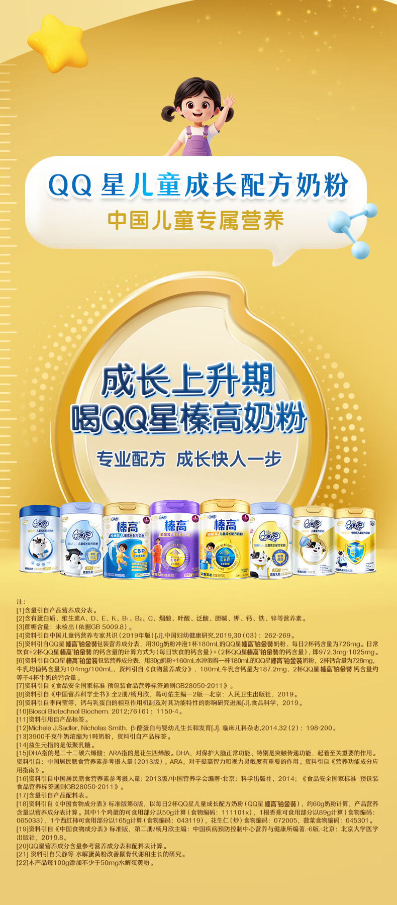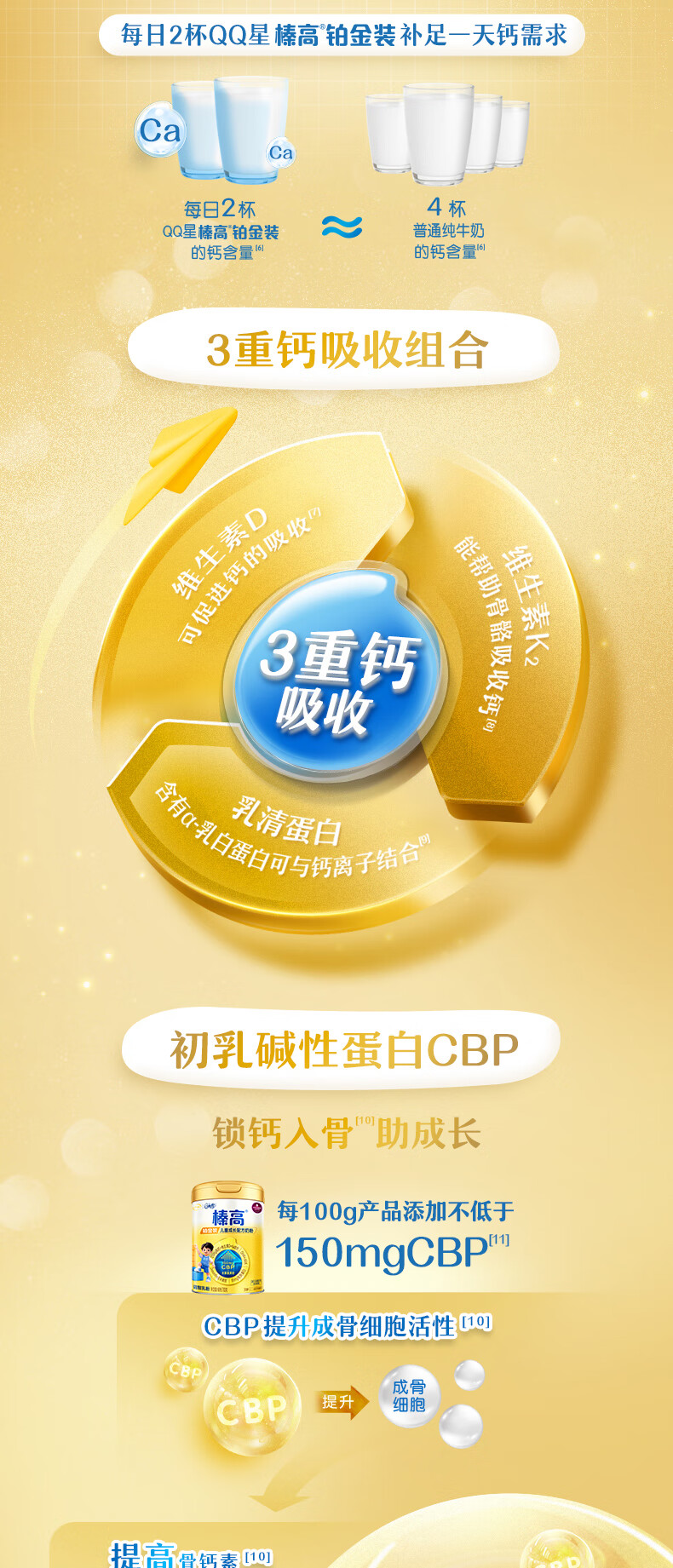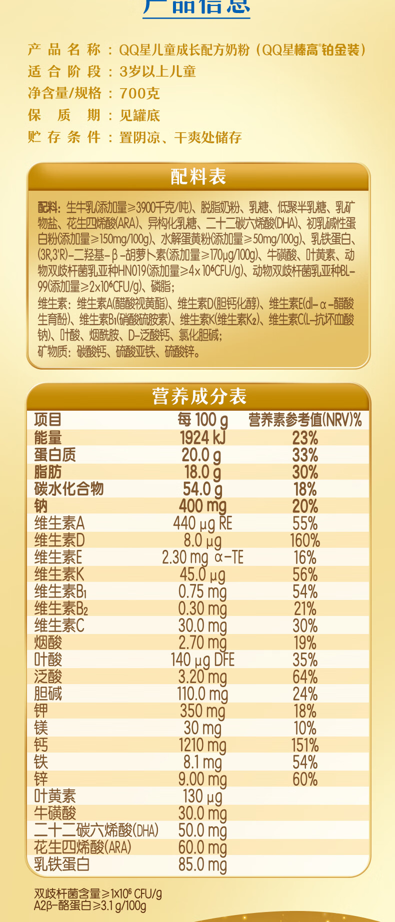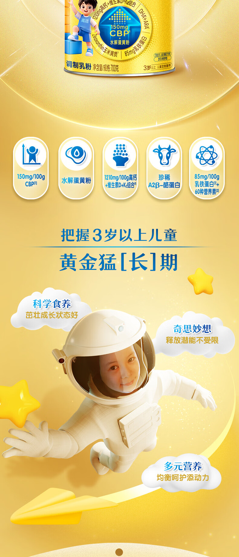 伊利QQ星榛高铂金儿童成长奶粉4段3-12岁700g*1罐 CBP/DHA/乳铁蛋白