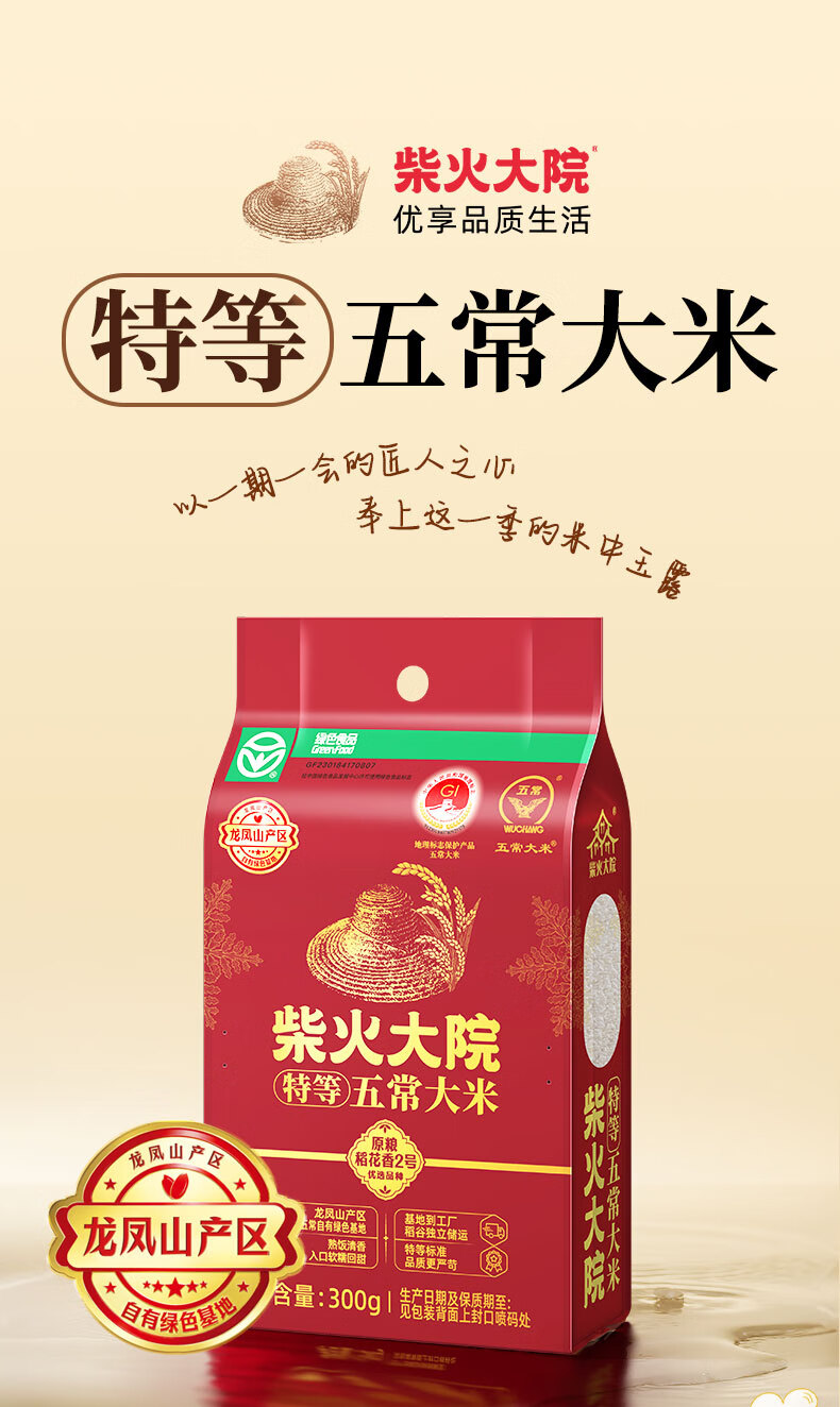 柴火大院大米 绿色特等五常大米300g 龙凤山产区非真空年货节采购 300g*3袋