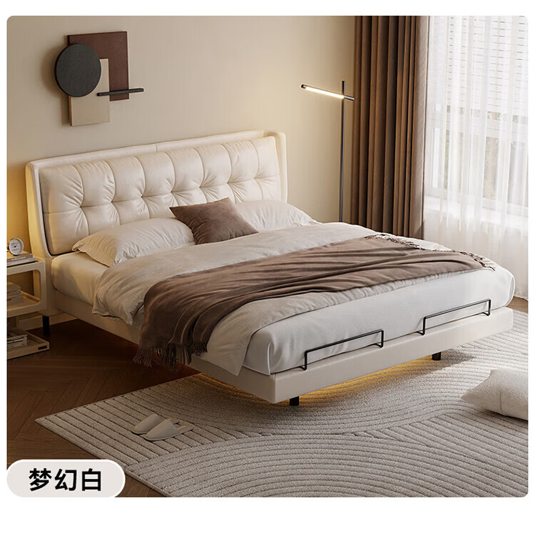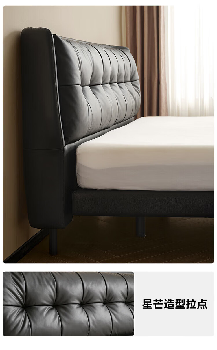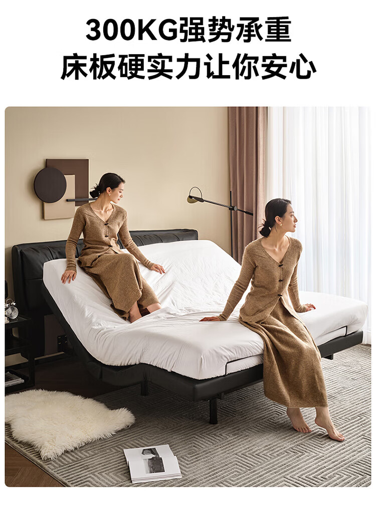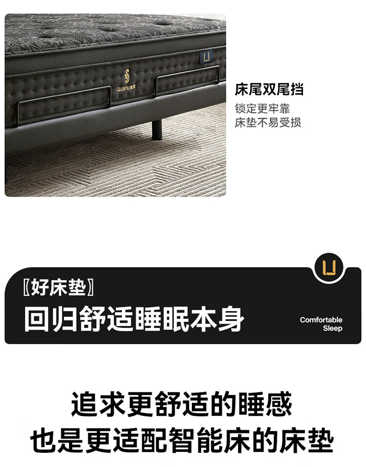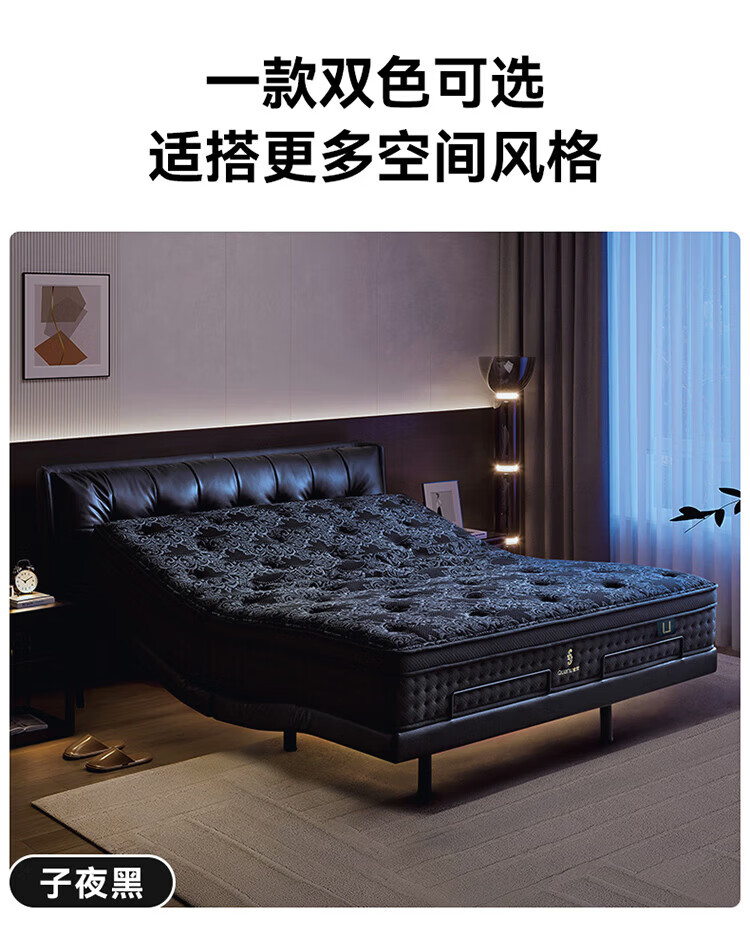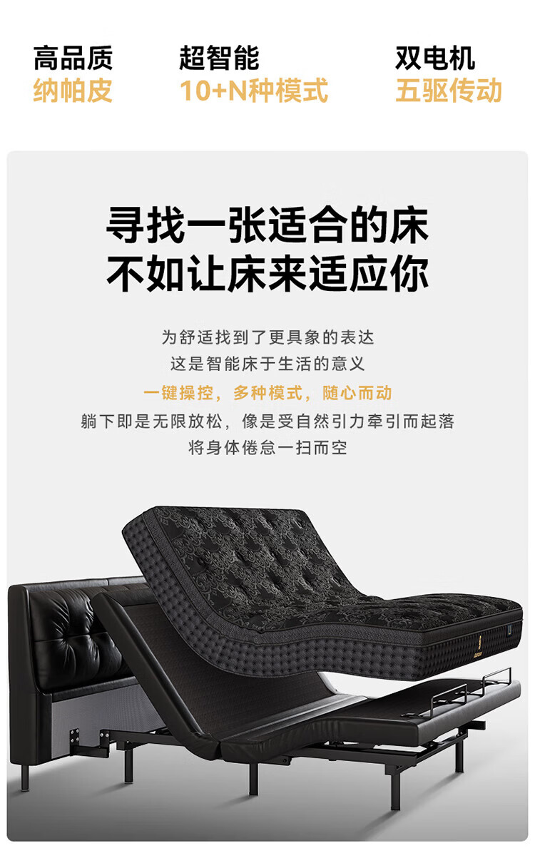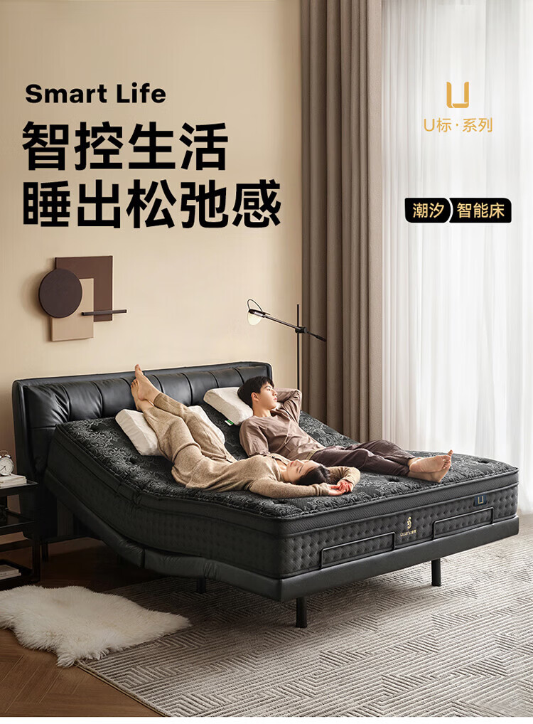 全友(QUANU)【迷瞪直播间】116133【U标·潮汐智能床】真皮智能电动纳帕皮床 黑色|纳帕皮|智能单床+床垫 1.8米