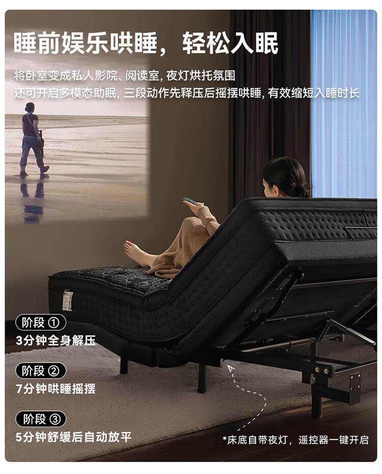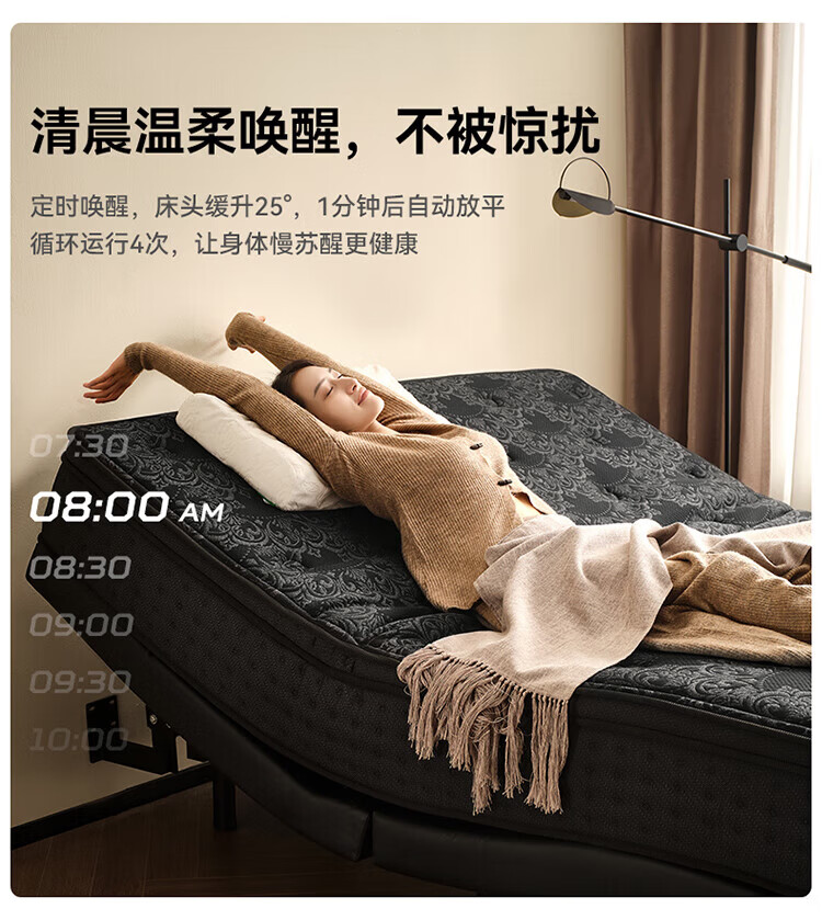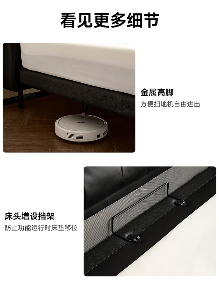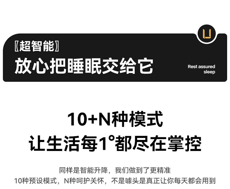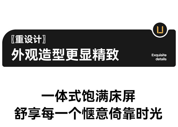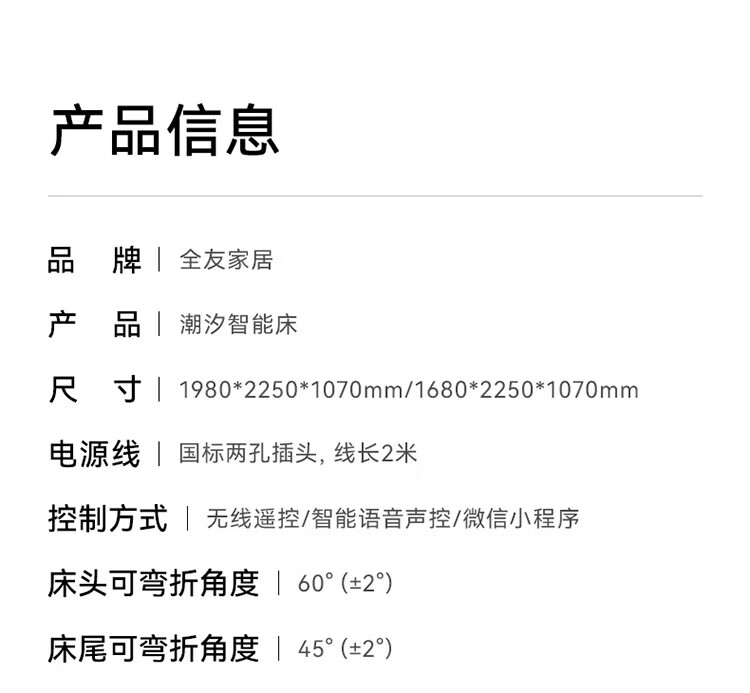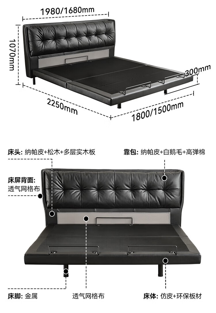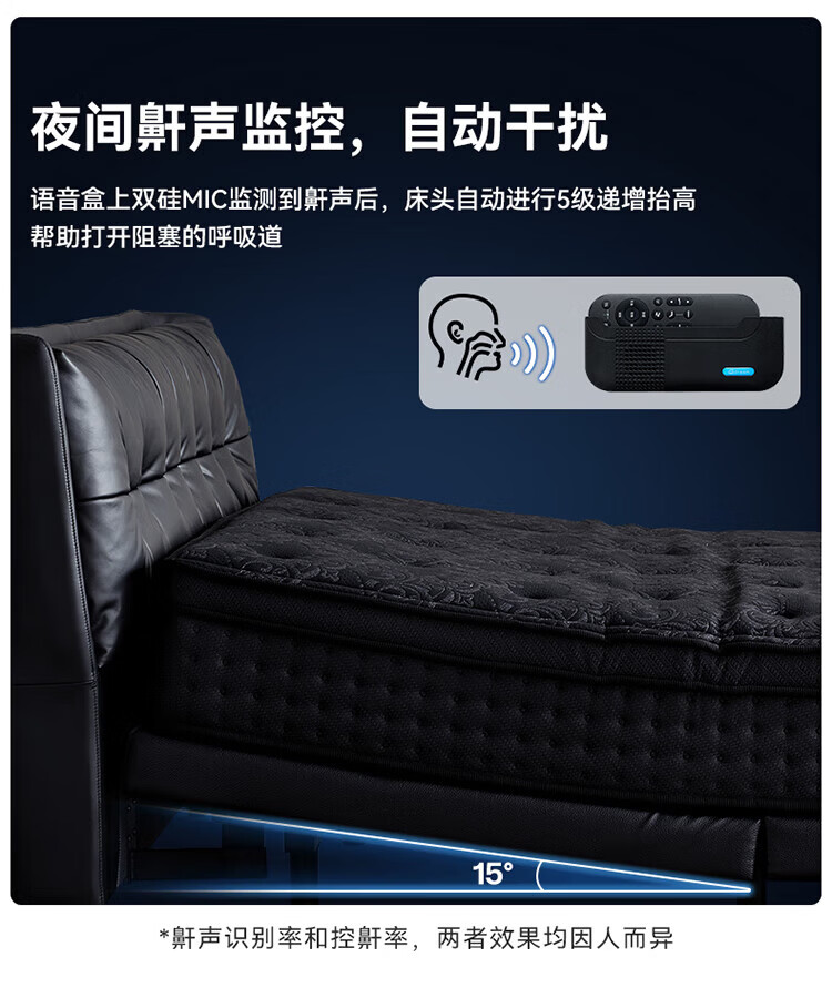 全友(QUANU)【迷瞪直播间】116133【U标·潮汐智能床】真皮智能电动纳帕皮床 黑色|纳帕皮|智能单床+床垫 1.8米