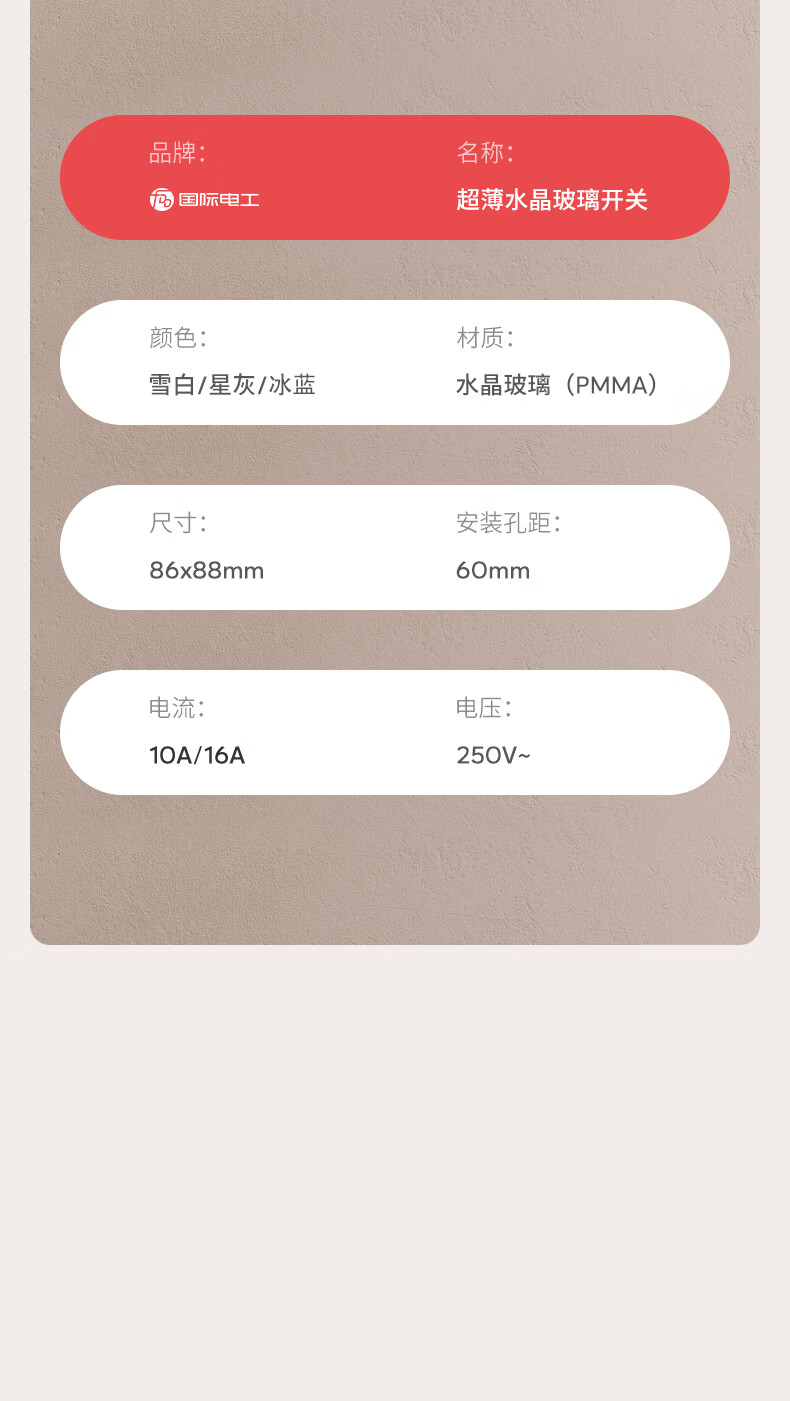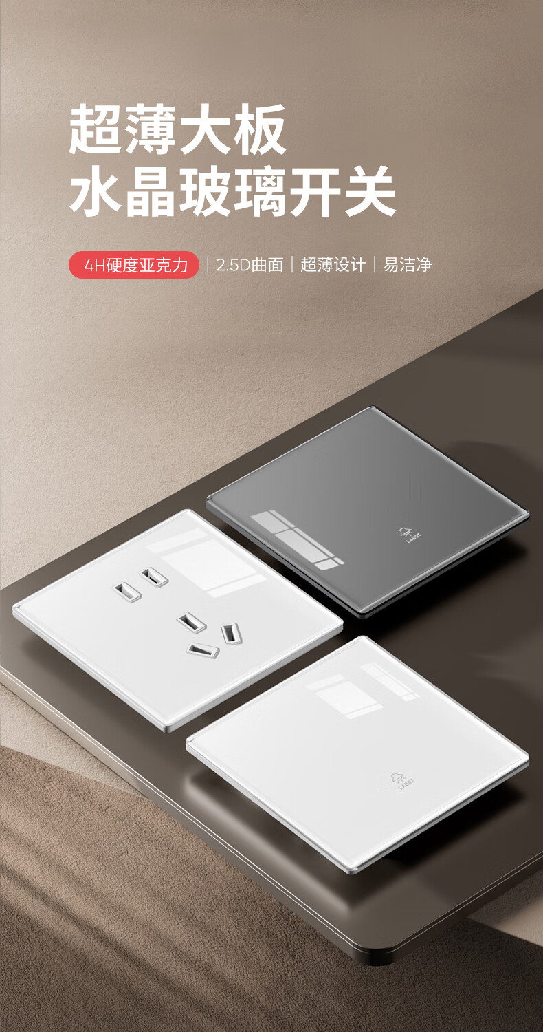国际电工(FDD)86型超薄开关插座面板家用暗装墙壁五孔插座水晶玻璃16A空调插 五孔插座