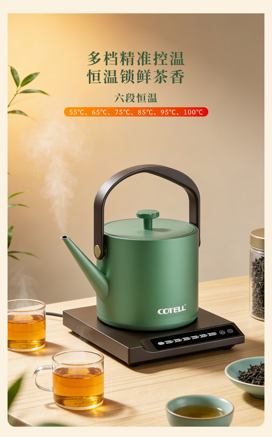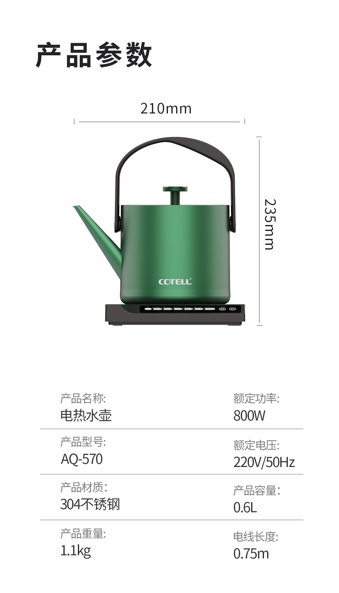 COTELL肯特五星级酒店同款家用民宿舍六段恒温自动断电子触屏智能控温茶壶低噪音304不锈钢防干烧热水壶 0.6L 【AQ-570 经典黑*礼盒装 五星级酒店同款
