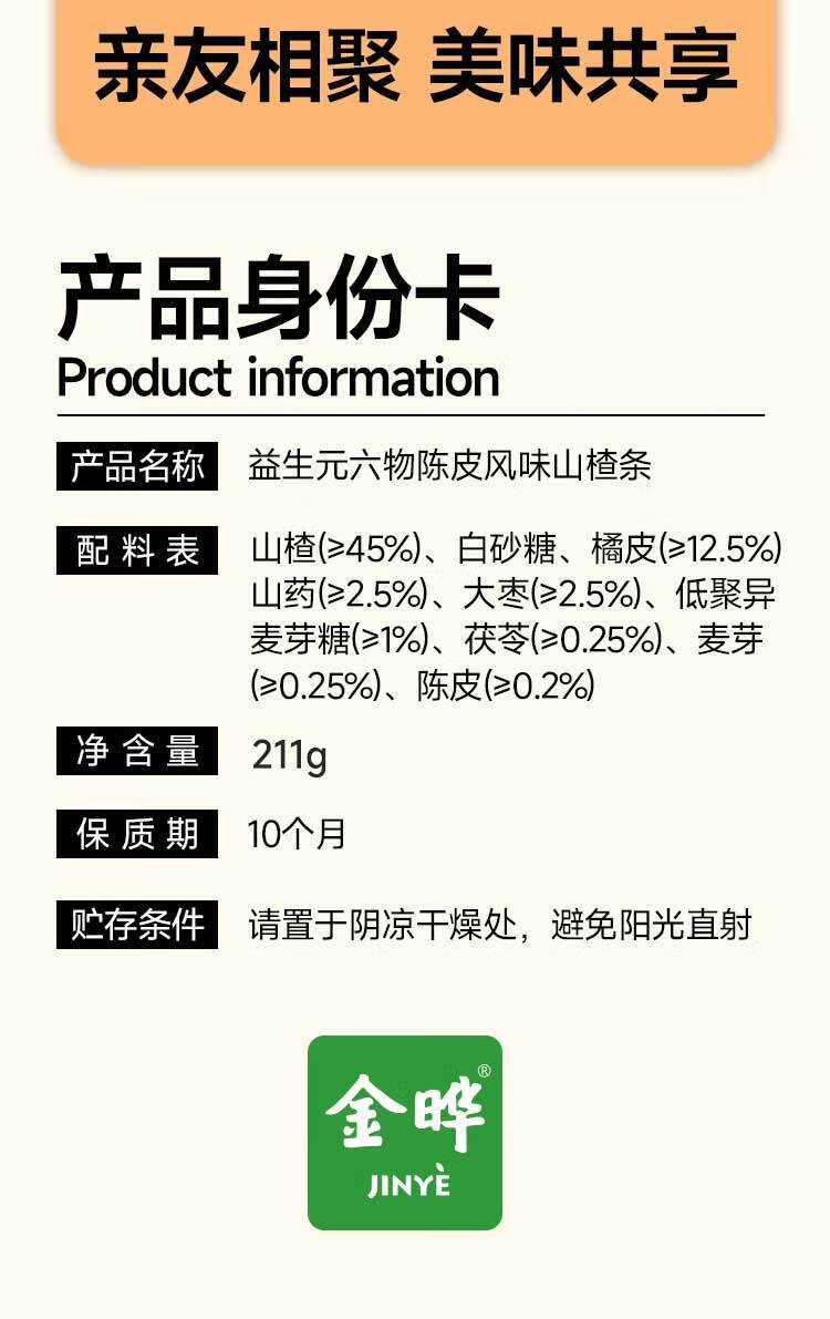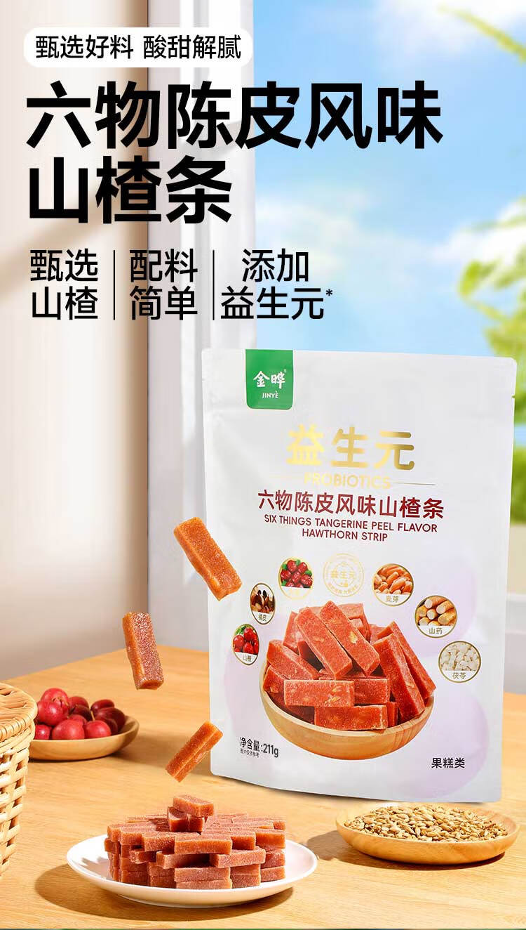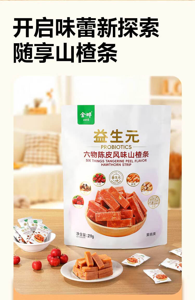 金晔0添加剂山楂条陈皮风味六物独立小包装儿童零食211g