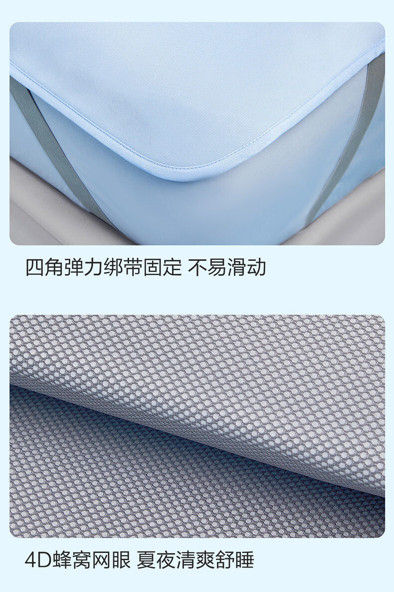 水星家纺北欧·海岸可水洗冰丝席/床笠式提花冰丝席升级款 北欧·海岸可水洗提花冰丝席升级款(灰蓝色) 195cm*90cm