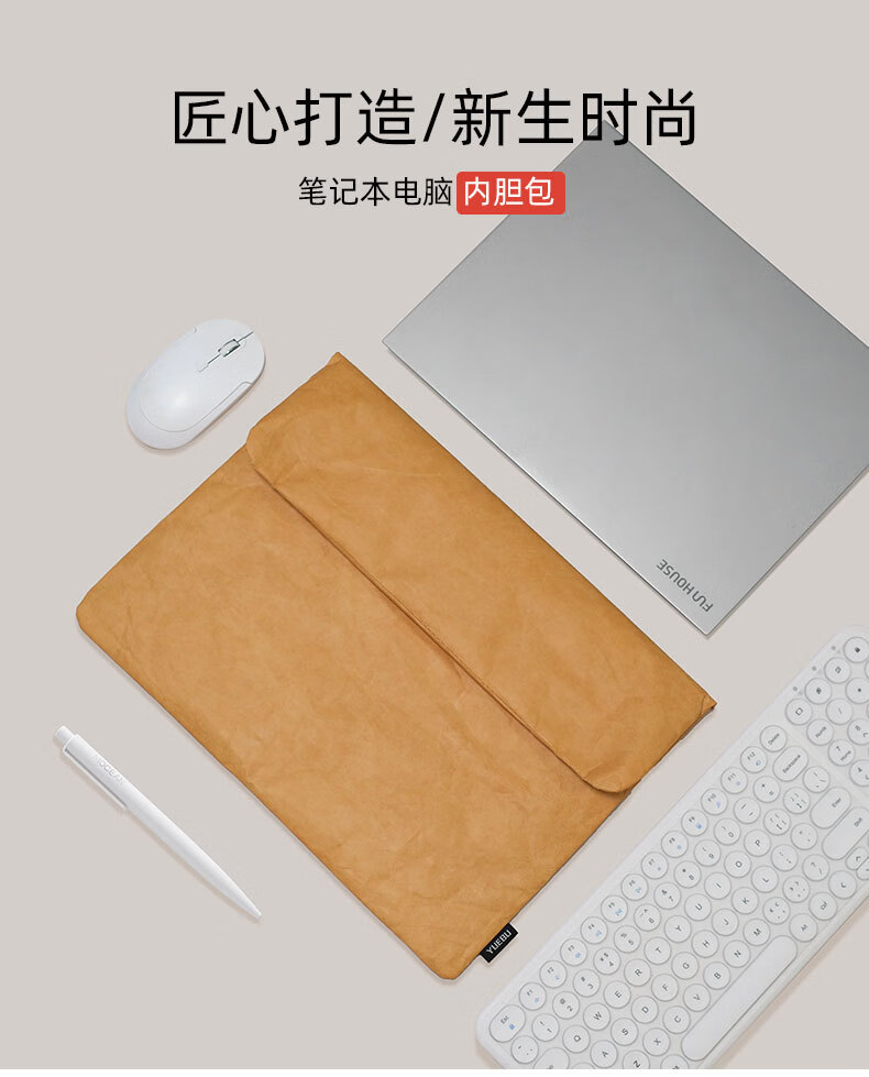 【严选直发】笔记本手提电脑包14寸男女适用大容量内胆包商务公文 芥黄色(厚料款 13.3/14寸