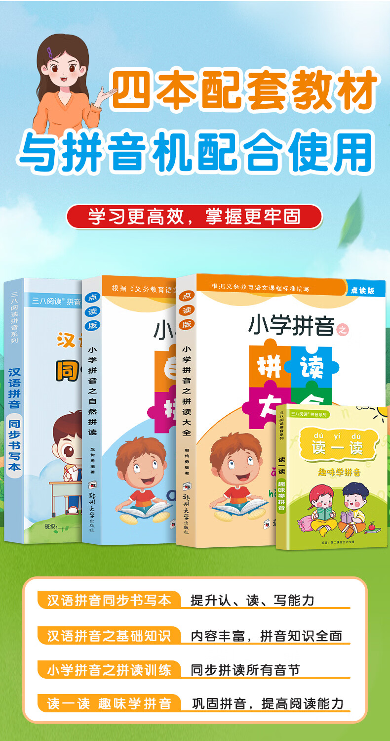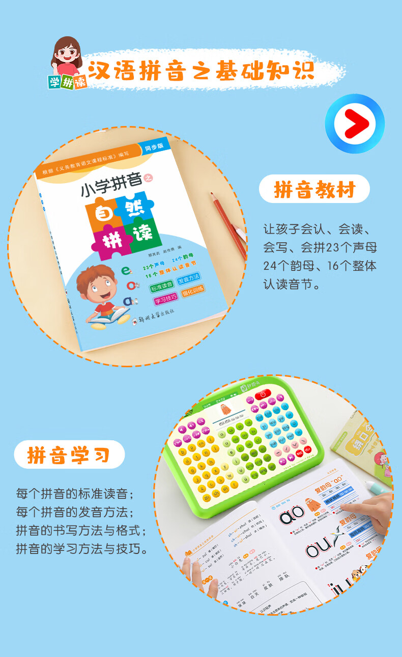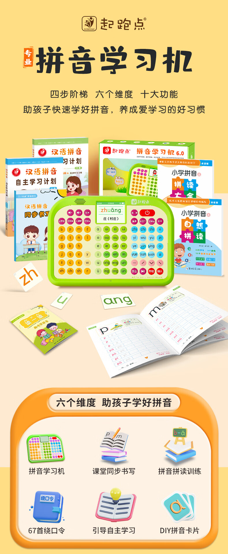 起跑点拼音学习机幼小衔接一年级拼音拼读训练识字神器3-12岁男女孩开学礼物儿童玩具古诗早教机AI学习机 【A6G】拼音机+6本教材+6本古诗