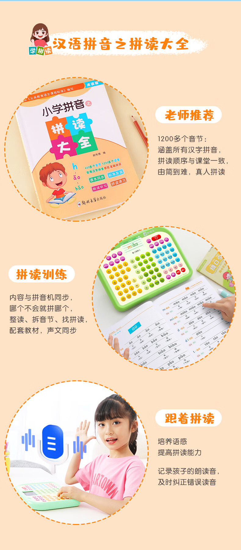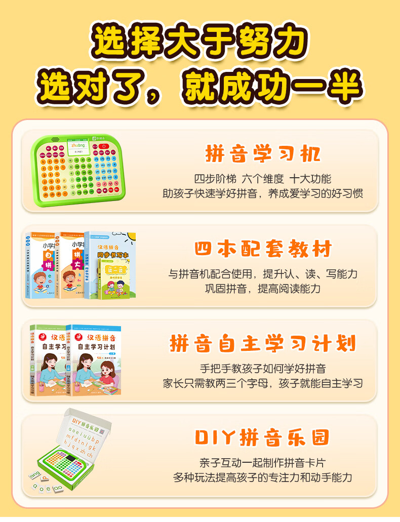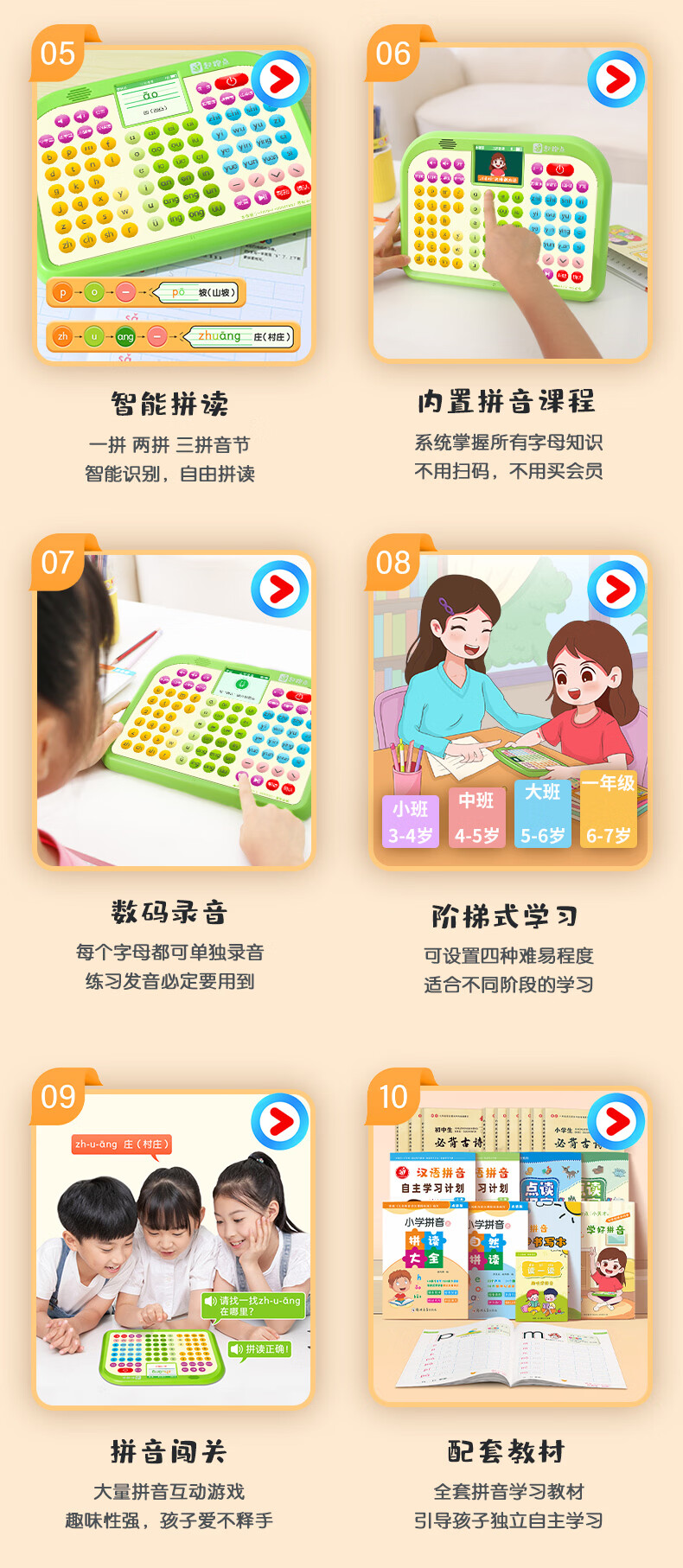 起跑点拼音学习机幼小衔接一年级拼音拼读训练识字神器3-12岁男女孩开学礼物儿童玩具古诗早教机AI学习机 【A6G】拼音机+6本教材+6本古诗