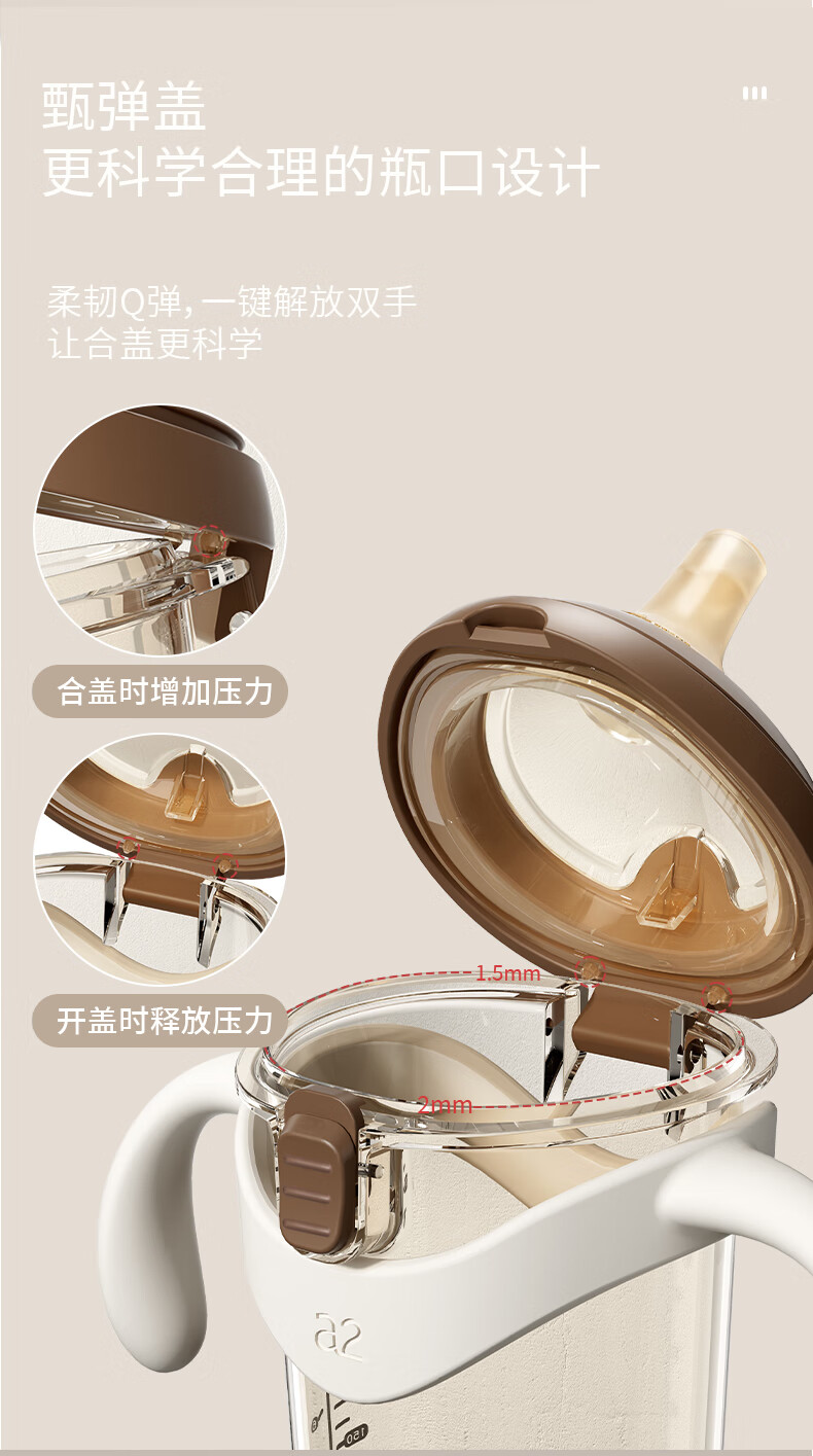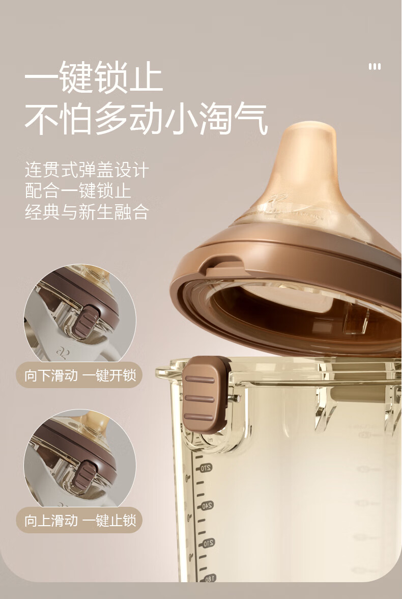 A 2翻盖奶瓶6个月以上一岁以上宝宝ppsu重力球吸管奶瓶鸭嘴300ml栗色 栗色咬吸水嘴直饮吸管(12月+) 240ml