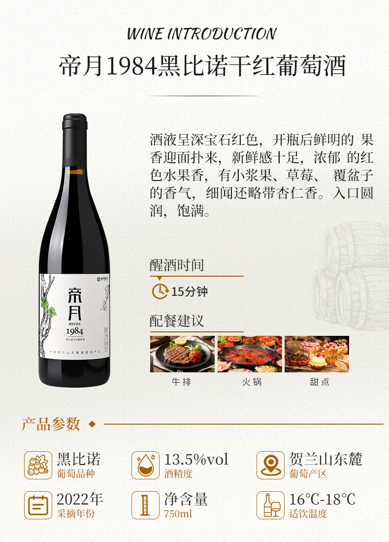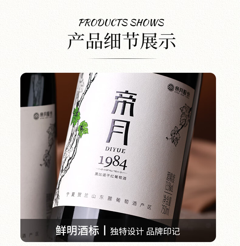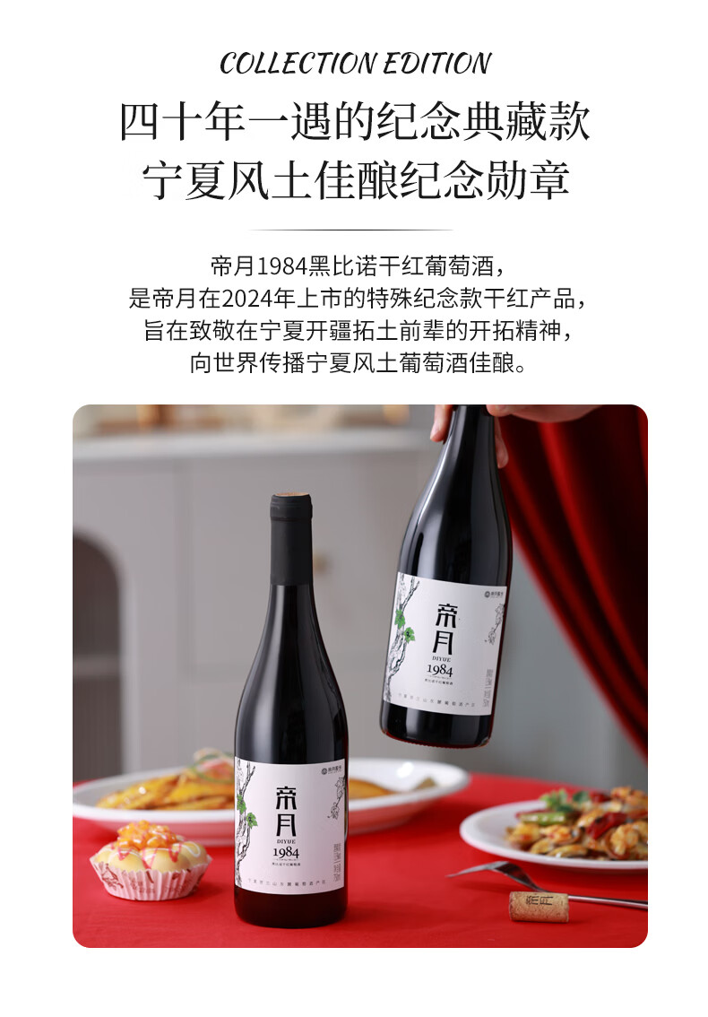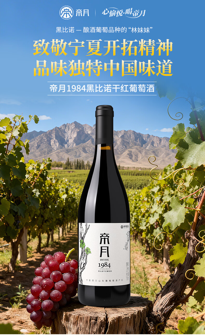 帝月宁夏贺兰山1984黑比诺干红葡萄酒750ml微醺国产红酒整箱送礼自饮 【6瓶装】1984干红750ml*6(整箱)