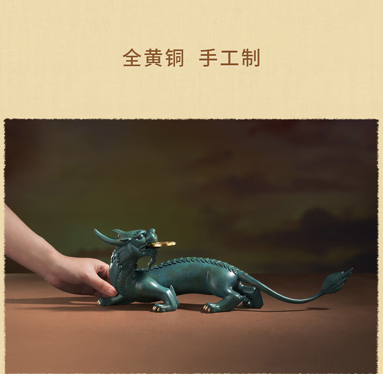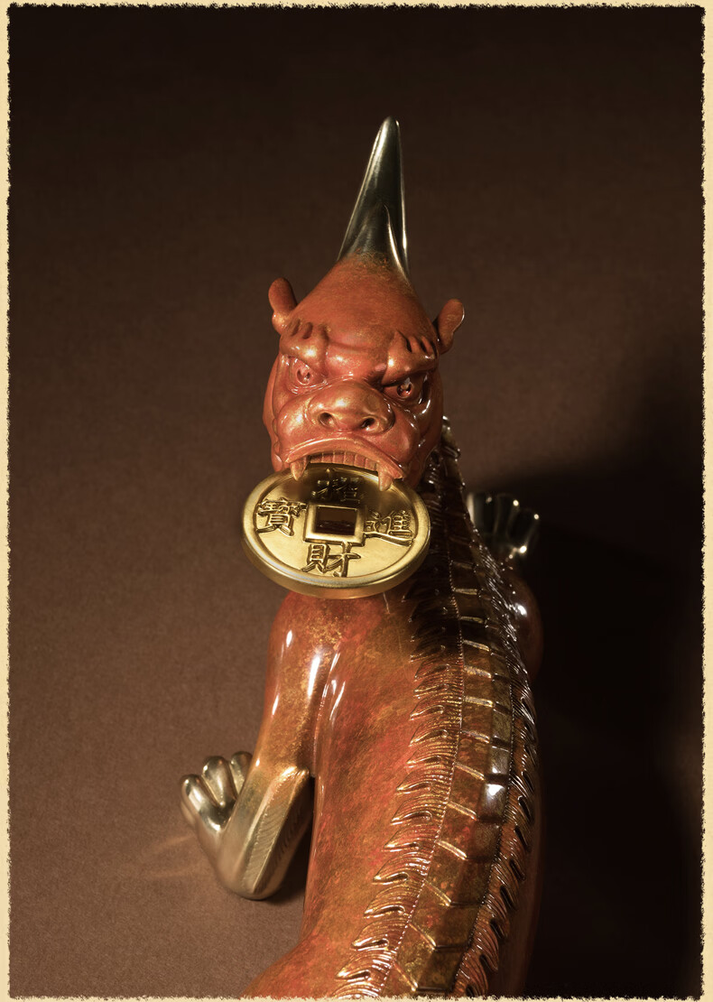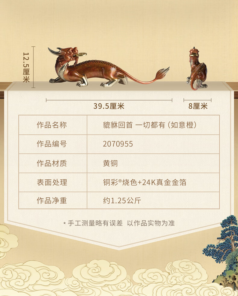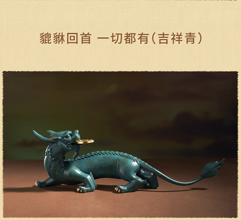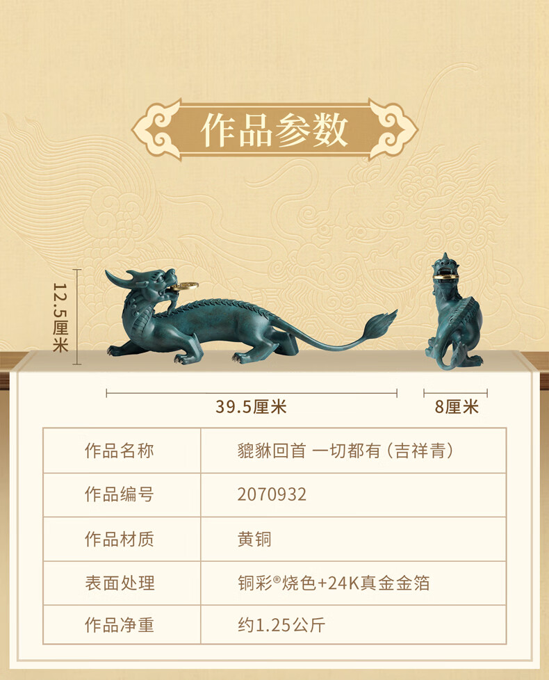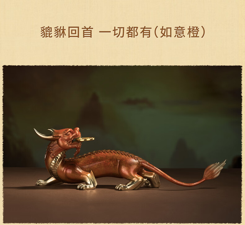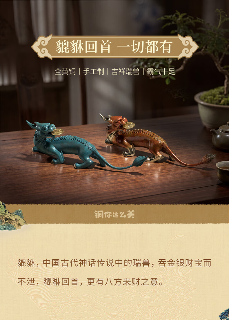 铜师傅 《貔貅回首 一切都有》招财客厅铜貔貅摆件 办公室装饰品 如意橙