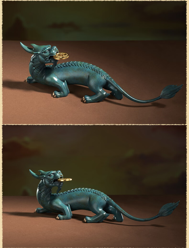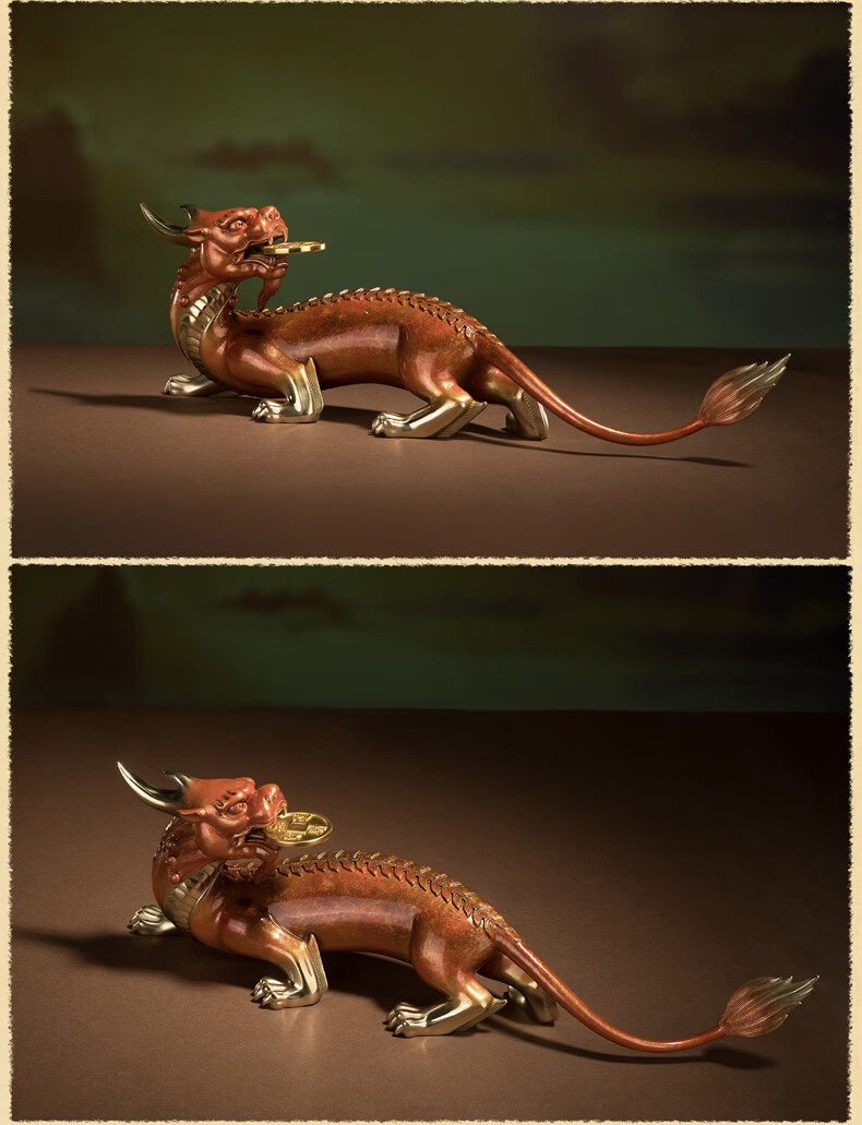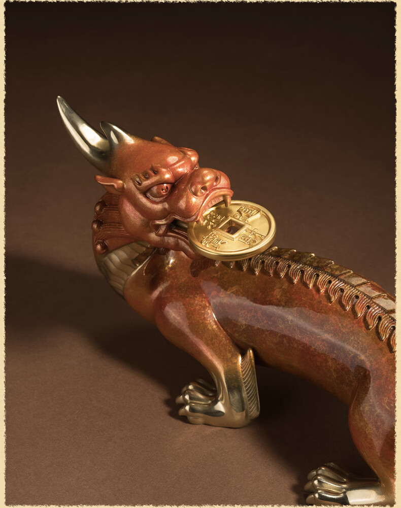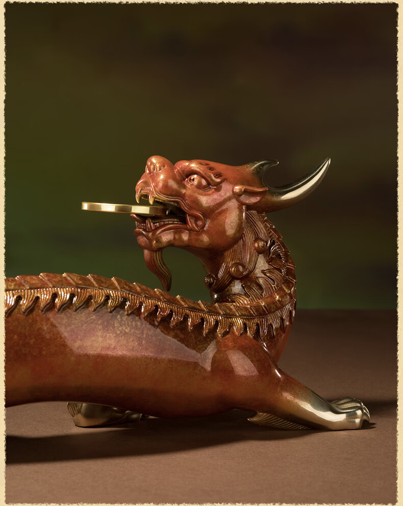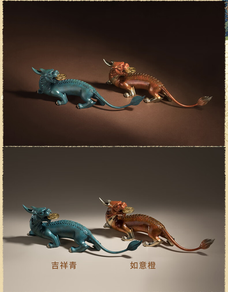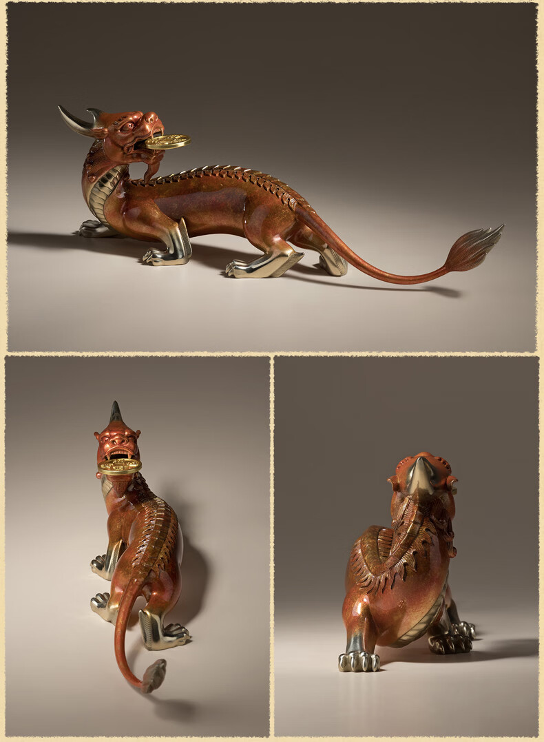 铜师傅 《貔貅回首 一切都有》招财客厅铜貔貅摆件 办公室装饰品 如意橙