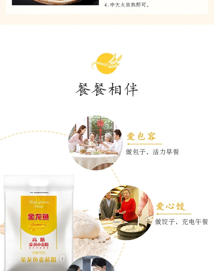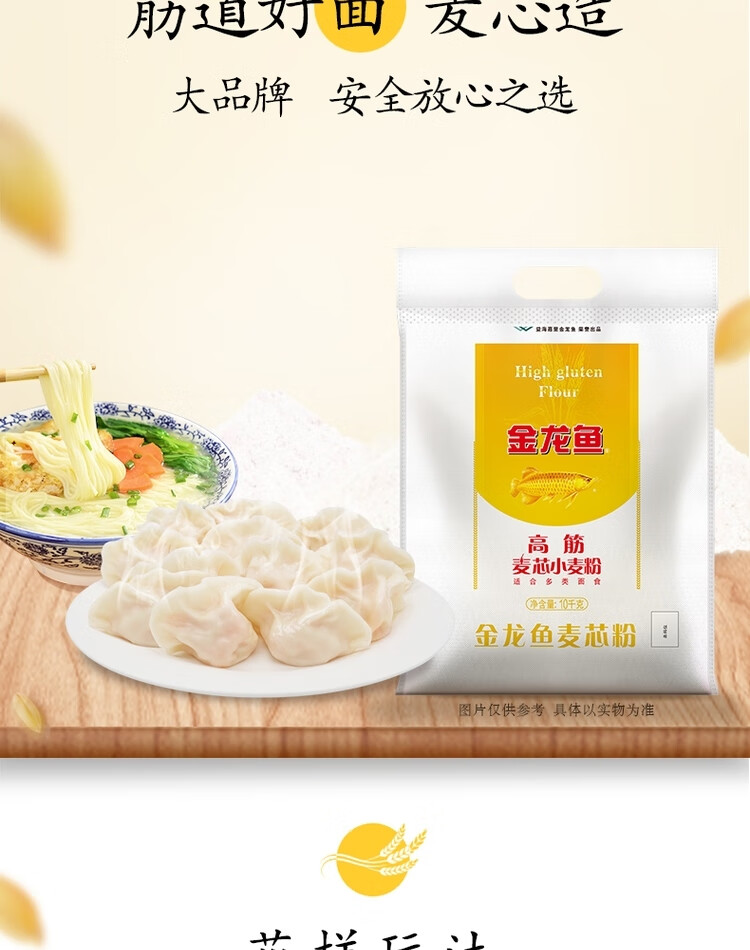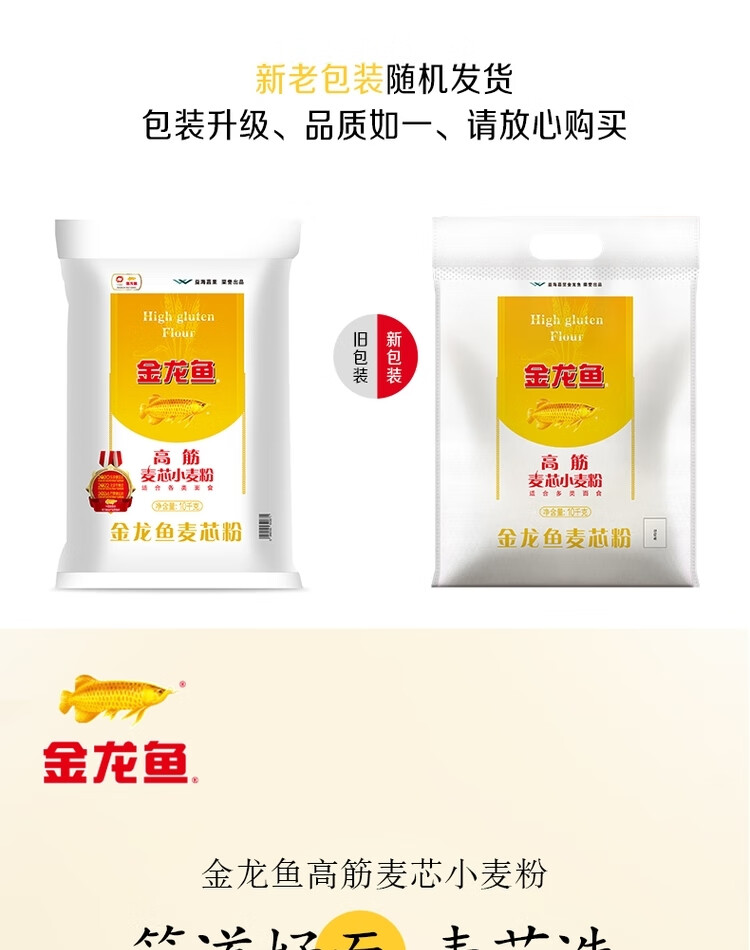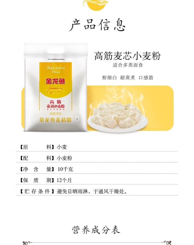 金龙鱼 面粉 高筋粉 高筋麦芯小麦粉20斤 家用包子饺子馒头饼手擀面