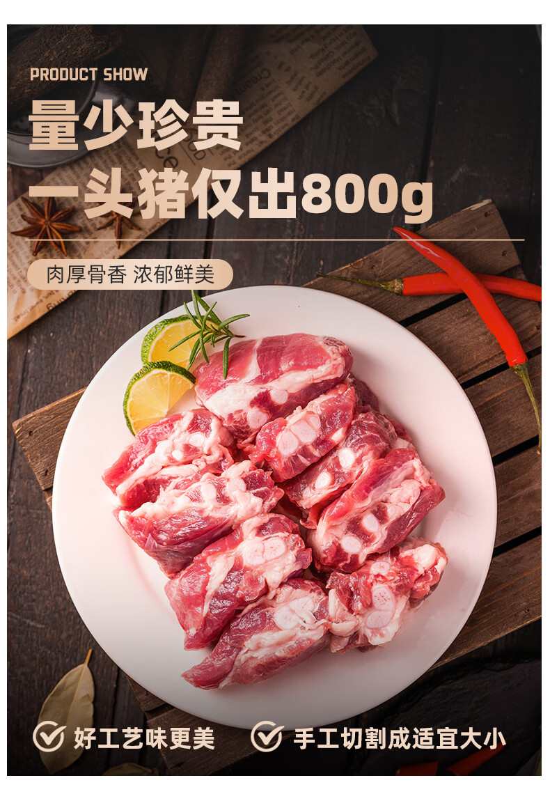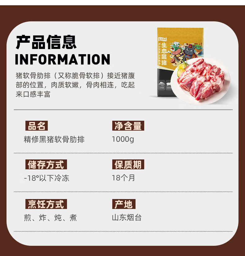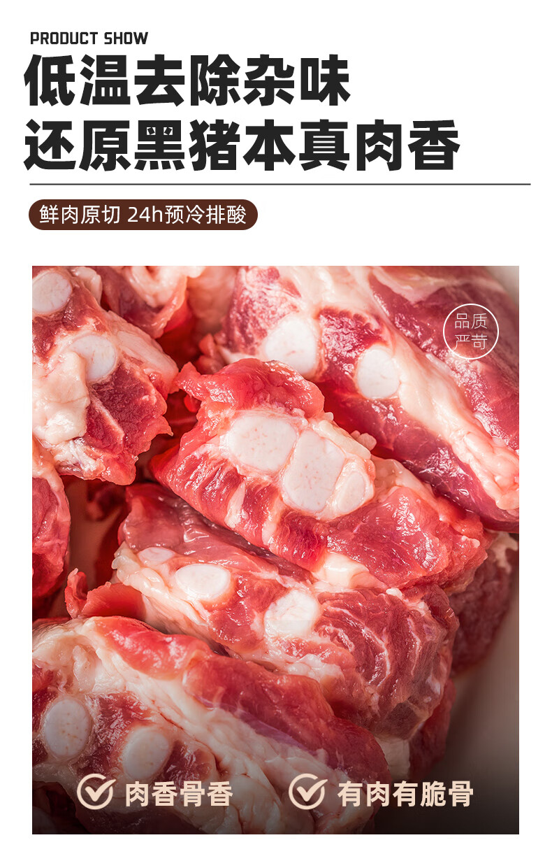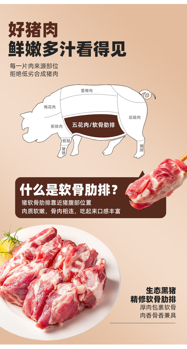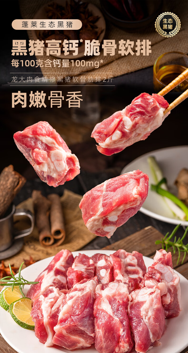 龙大肉食黑猪软骨肋排净重2斤 猪脆骨软排 糖醋排骨红烧烤食材 黑猪肉生鲜