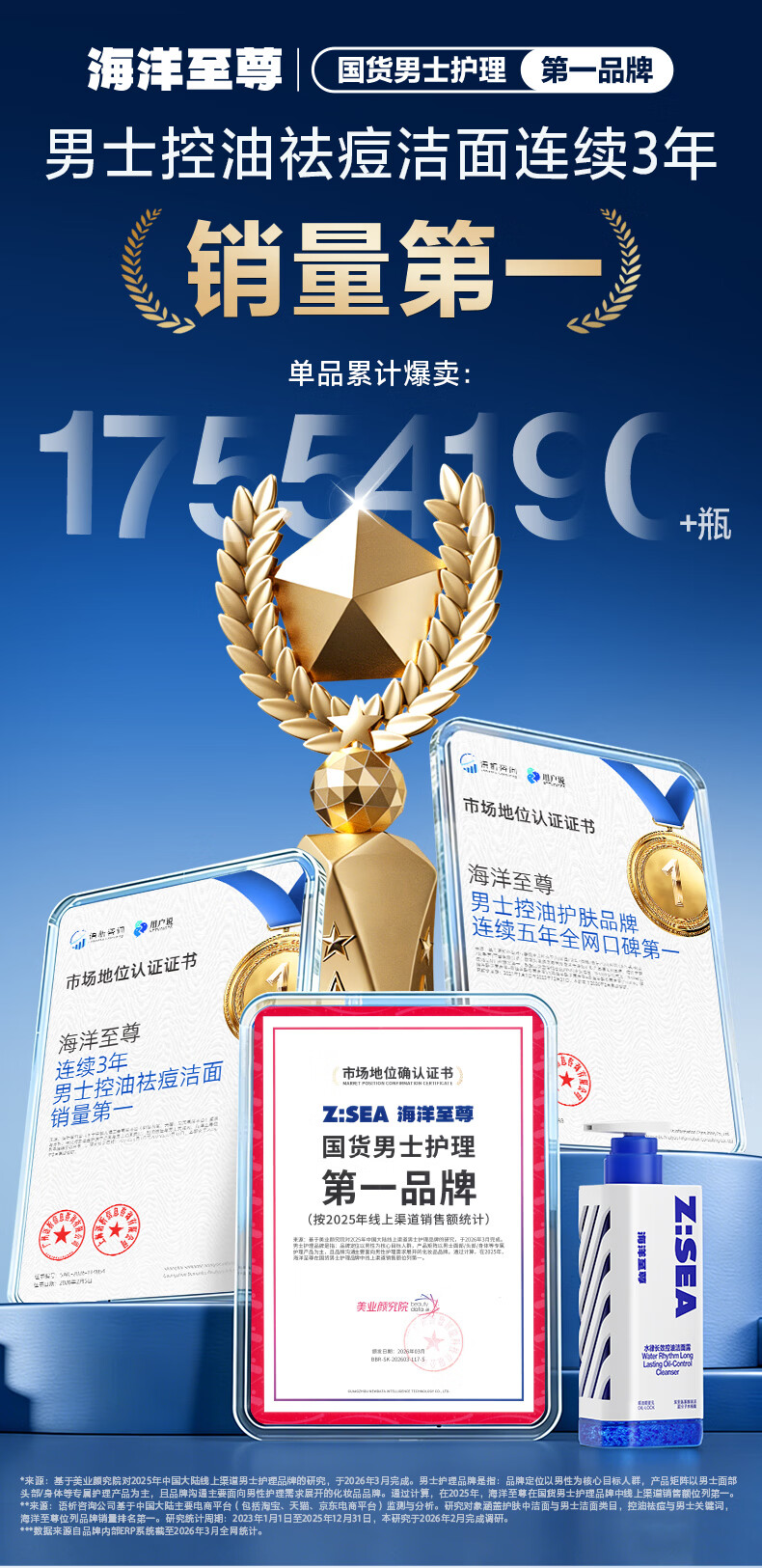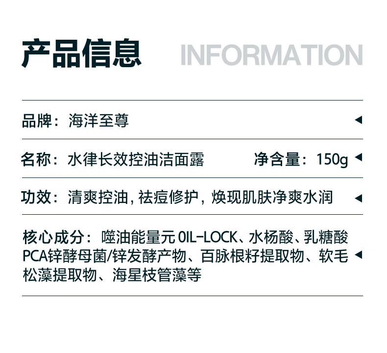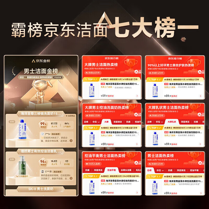 海洋至尊三棱镜控油 洗面奶男150g 氨基酸洁面乳祛痘去黑头男士护肤品礼物