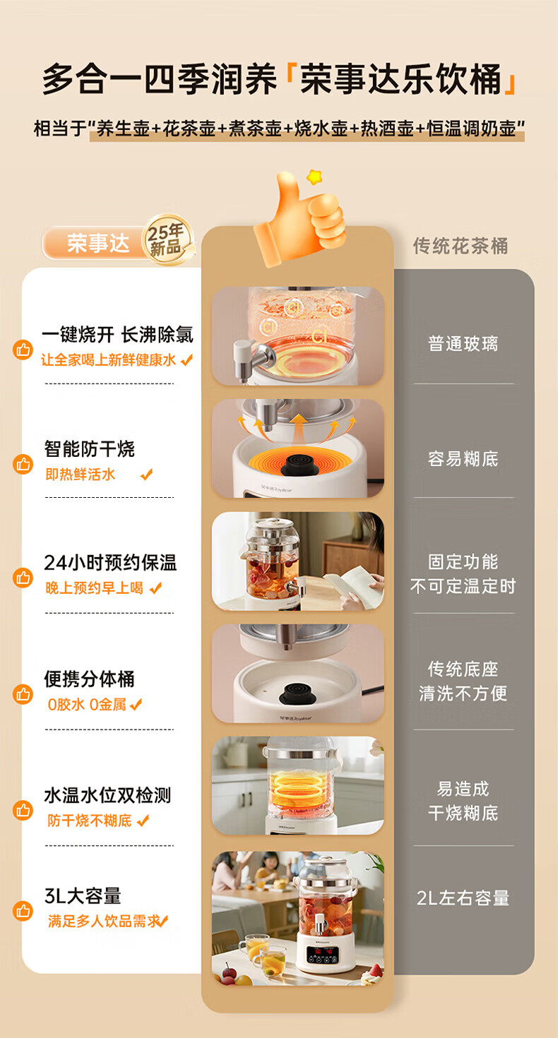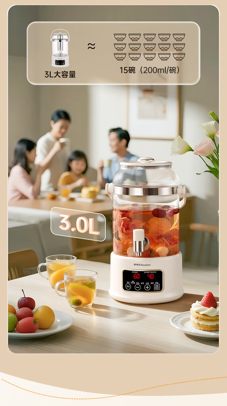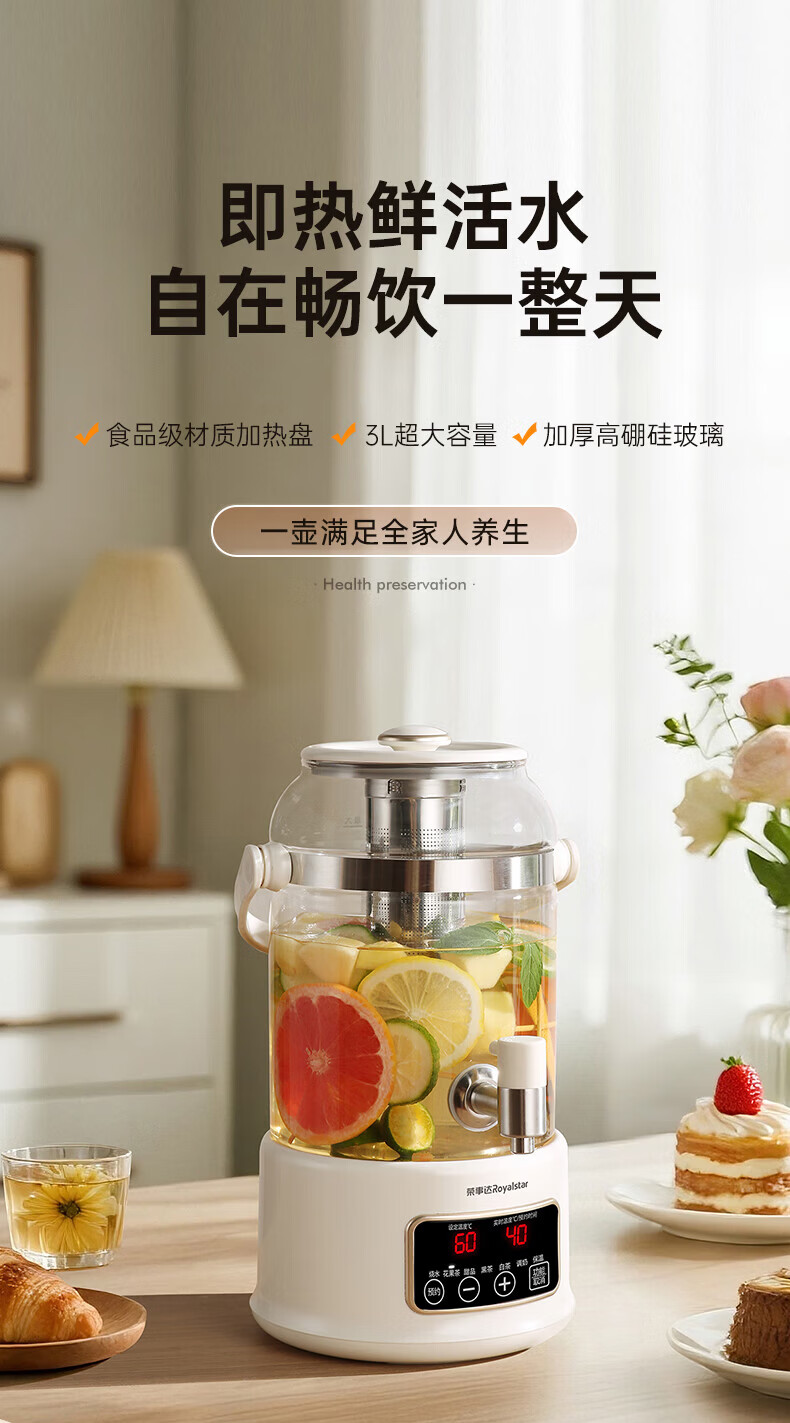 荣事达养生烧水壶大容量煮茶养生壶保温一体全自动恒温烧水壶煮茶壶养生壶炖煮一体多功能养生壶带水龙头 3L 赠滤网+304食品级+多段恒温预约