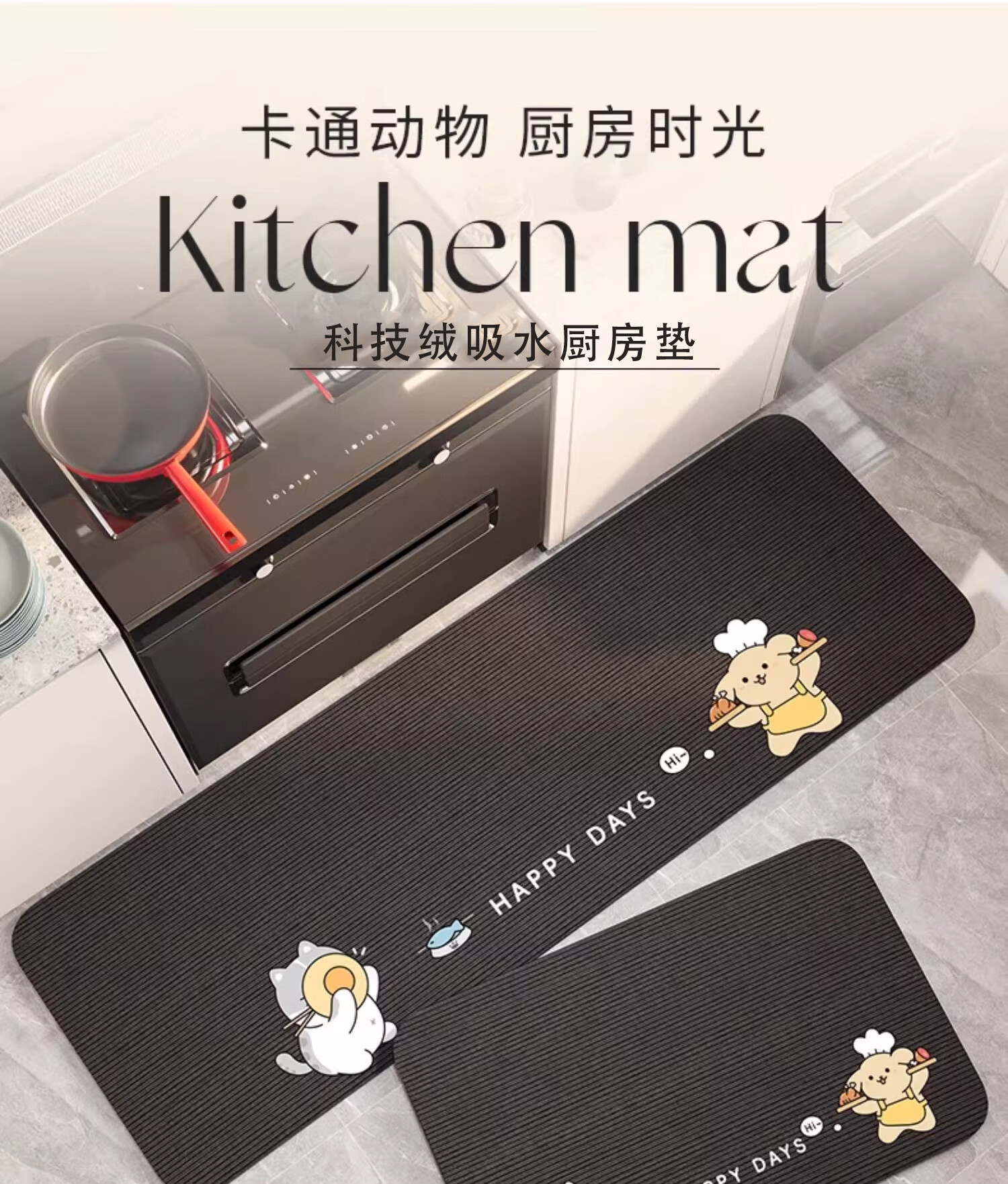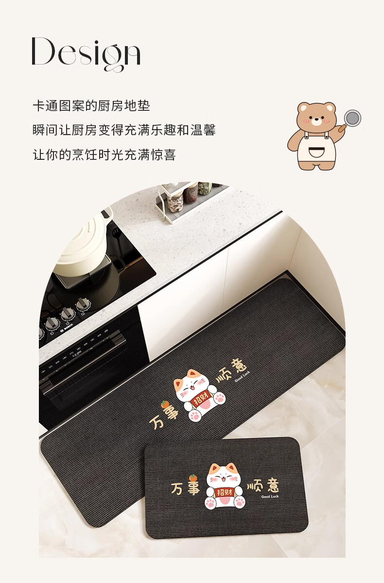 KAYE厨房地垫地面专用地毯防水防油防滑垫免洗可擦吸水垫子硅藻泥脚垫 GZN-Y醇珍-该上菜了 40x60cm(一件装)