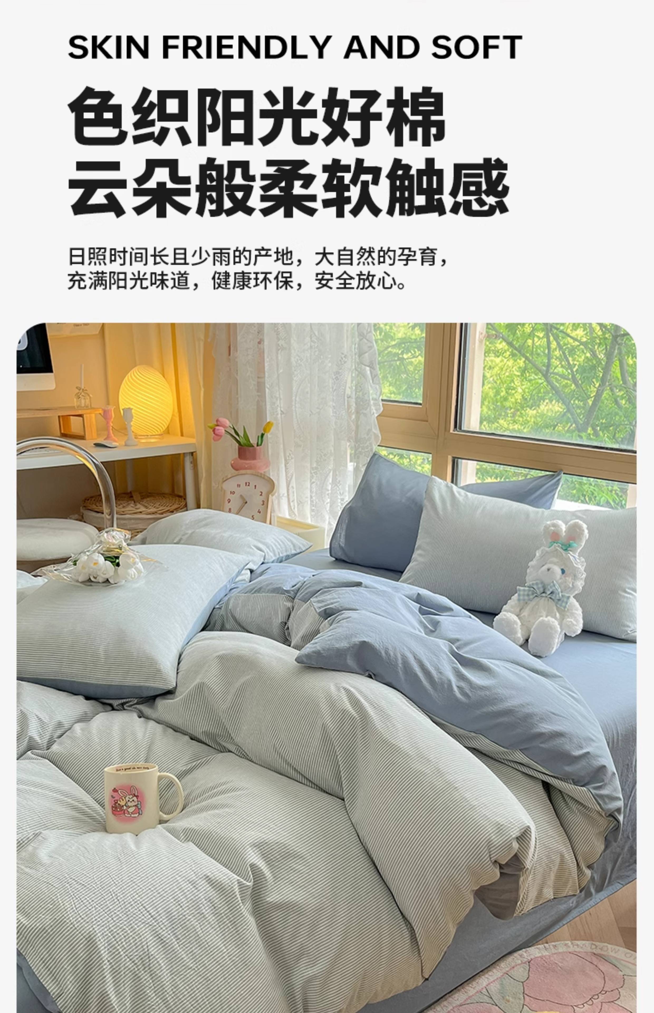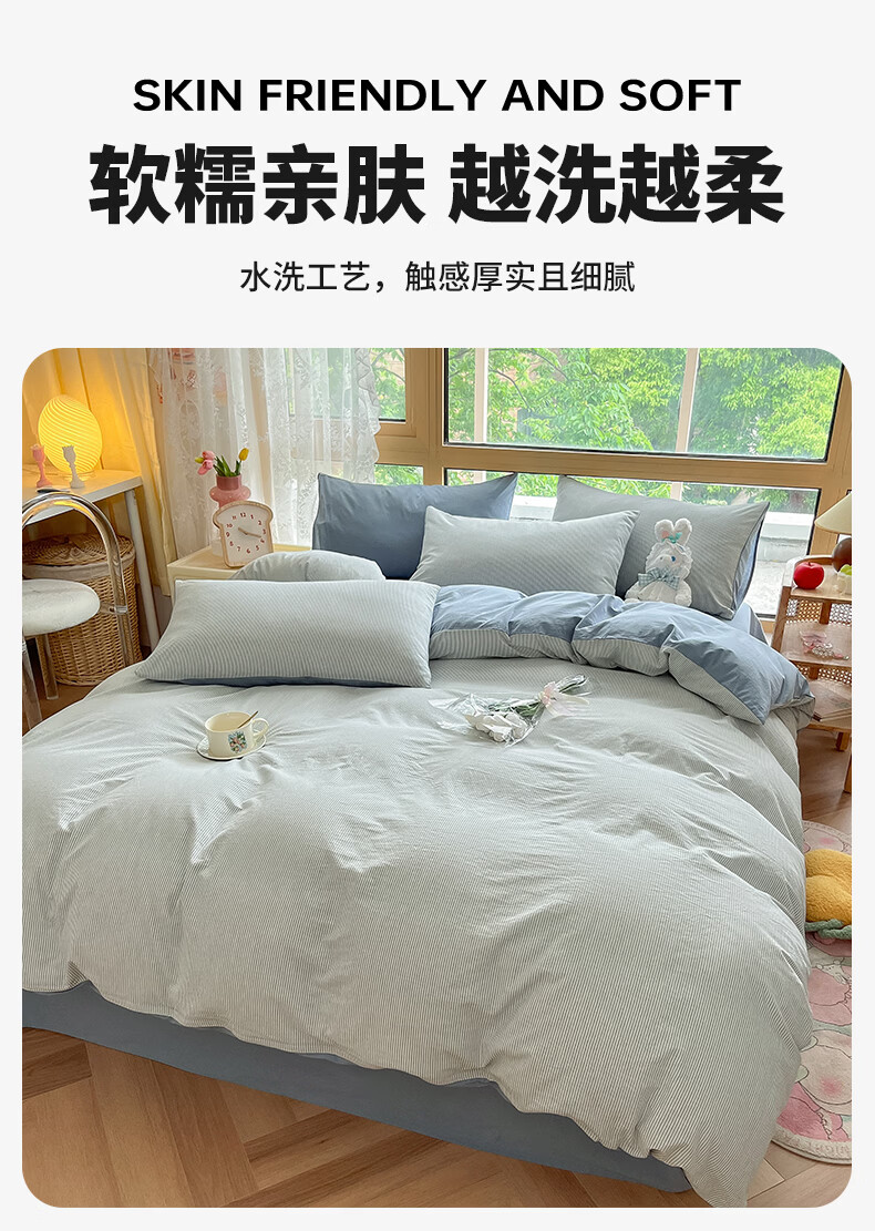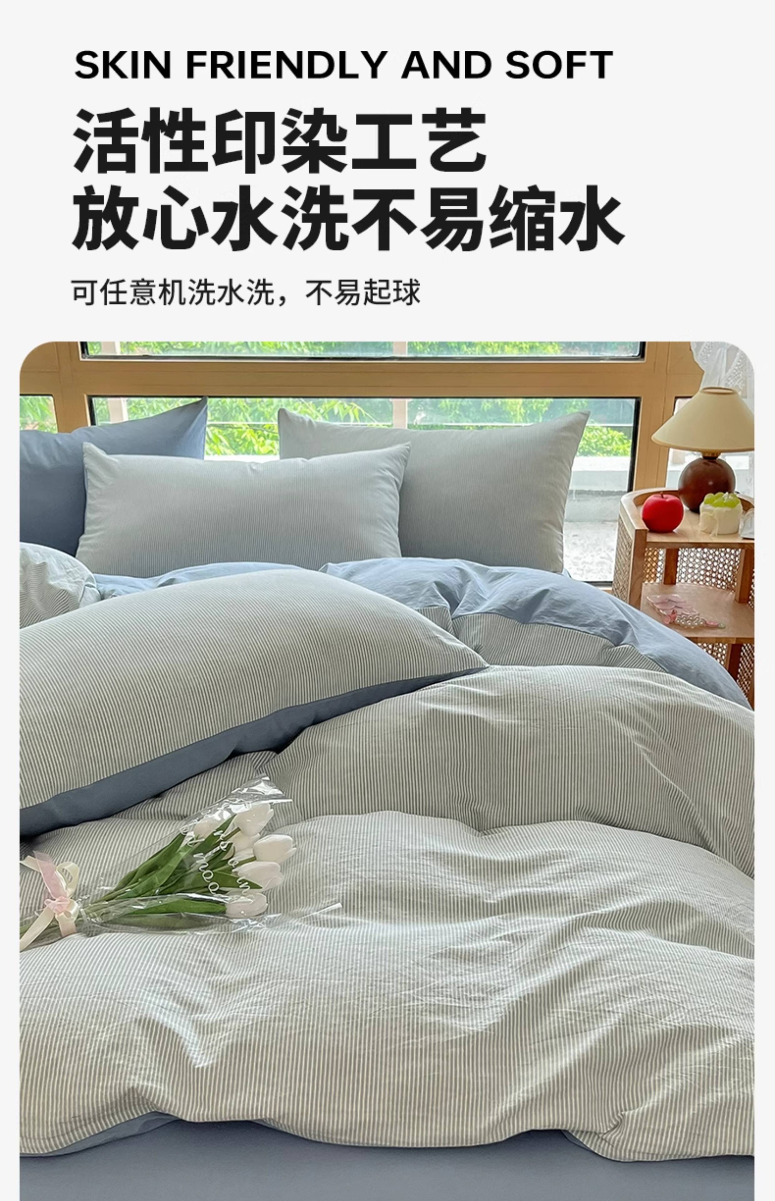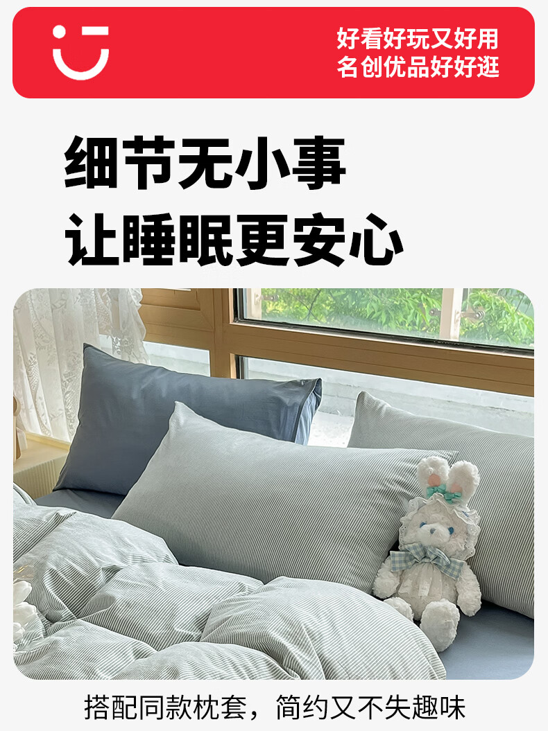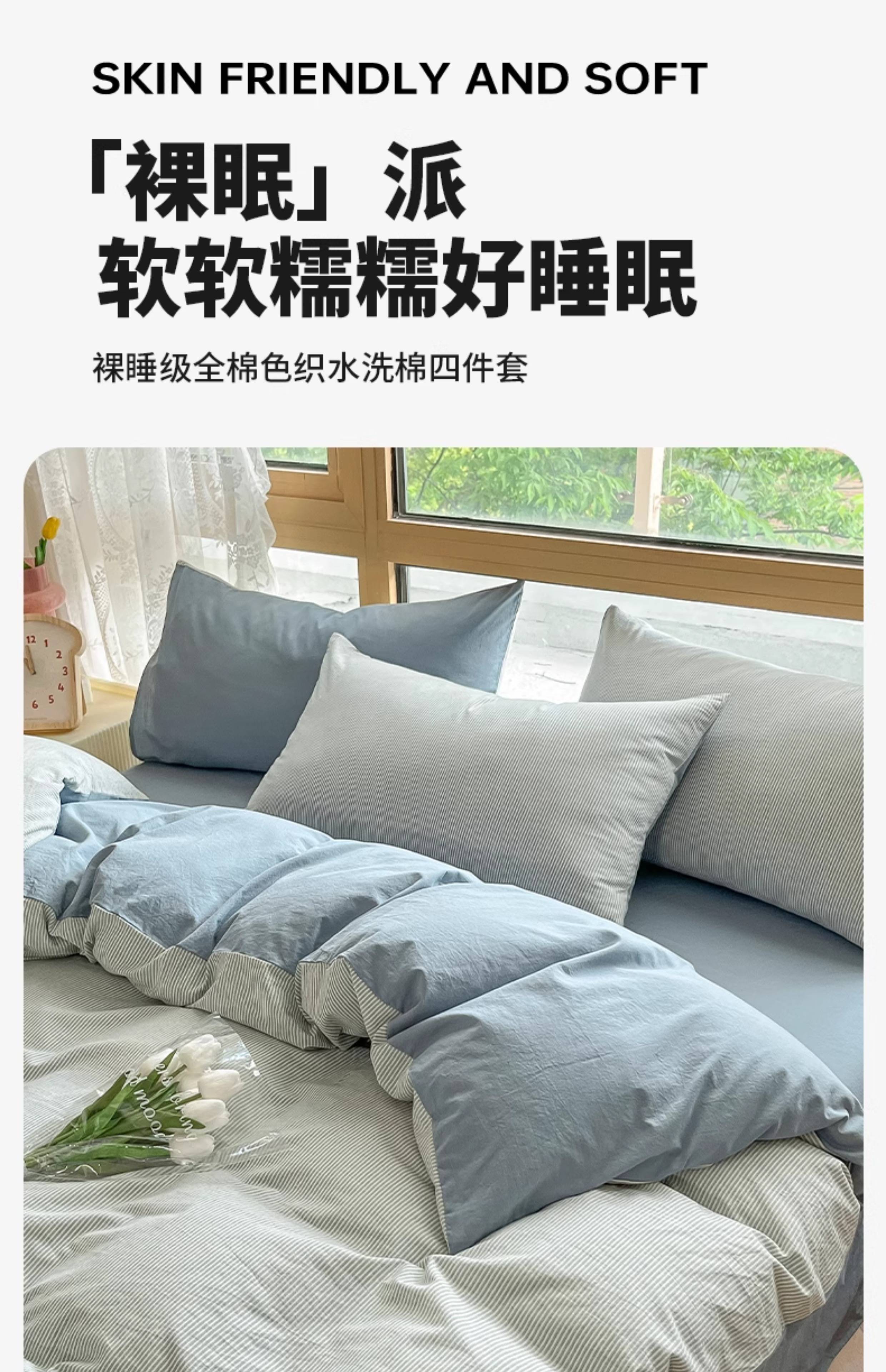名创优品(MINISO)全棉色织水洗棉被套单件 150x200x230cm纯棉单双人被罩四件套 miniso-雾蓝 150cm*200cm 单被套