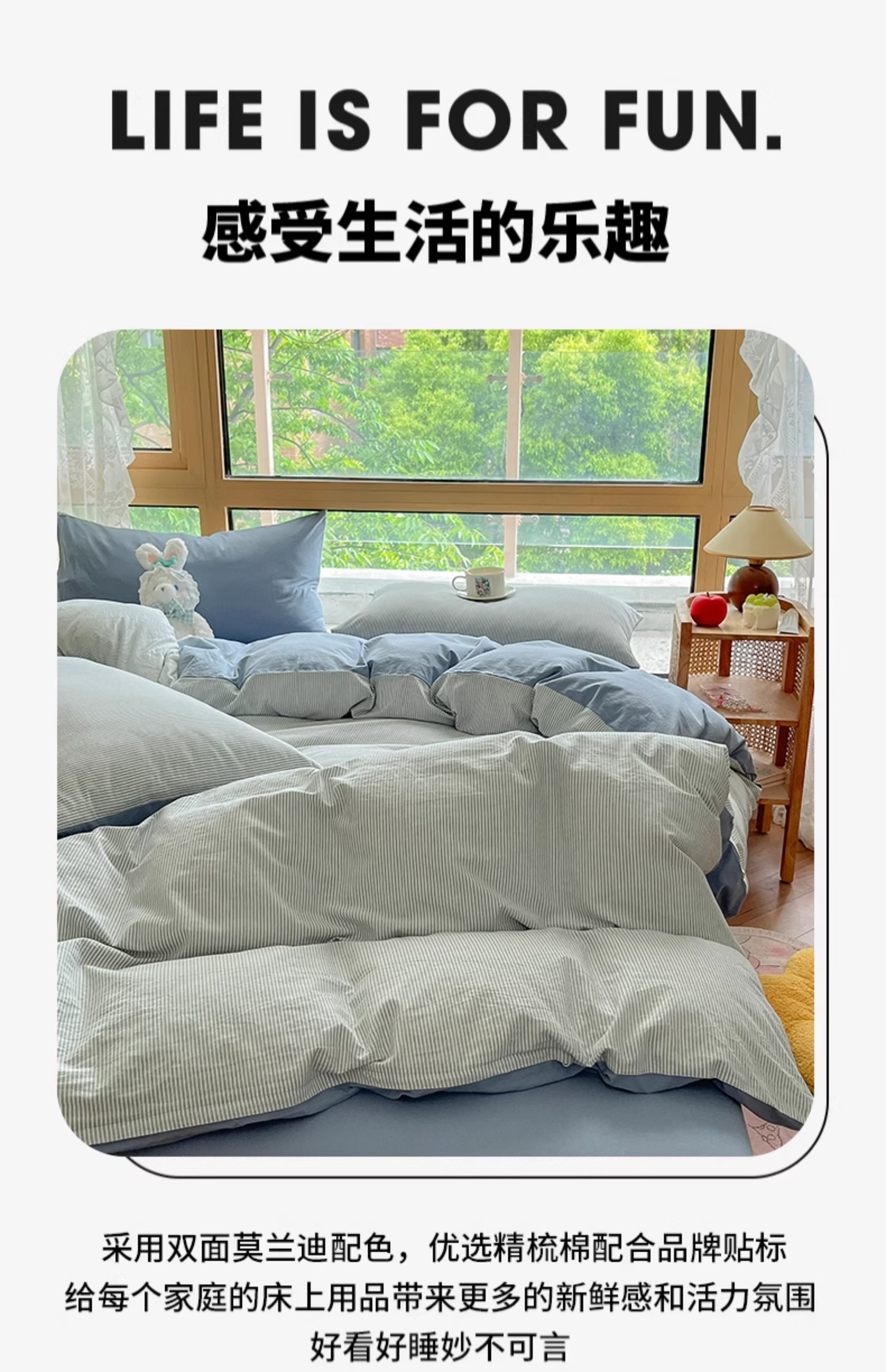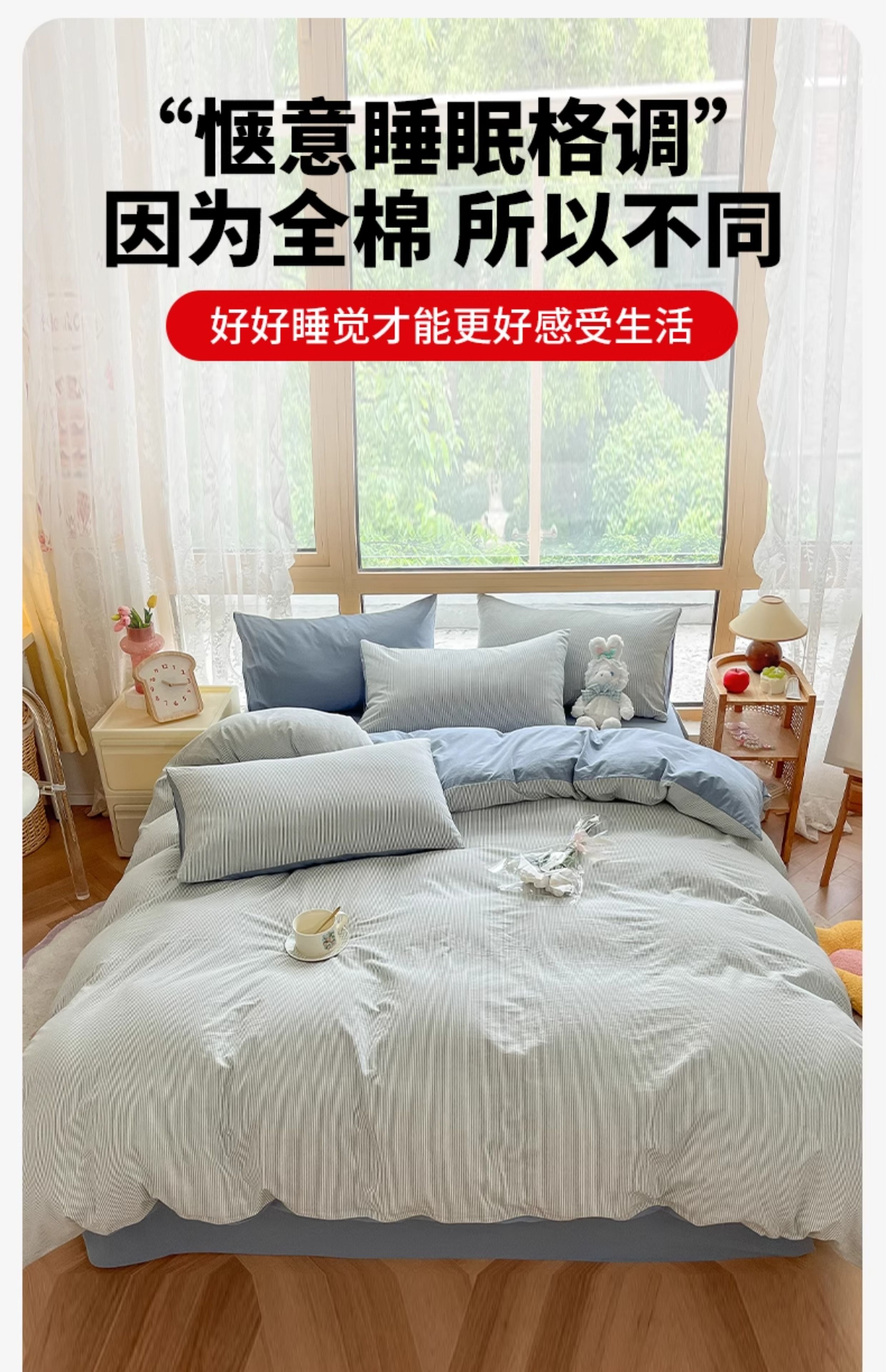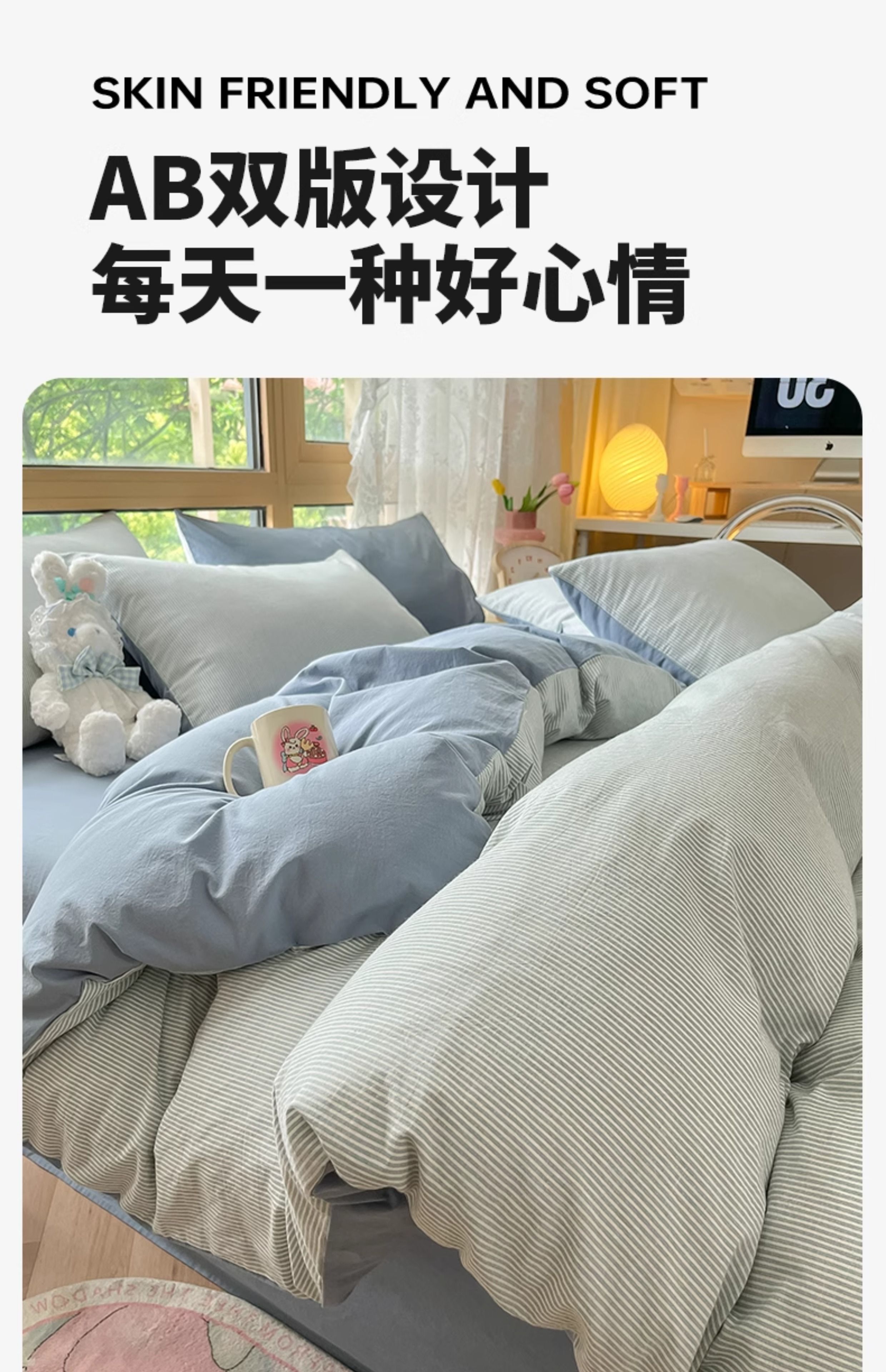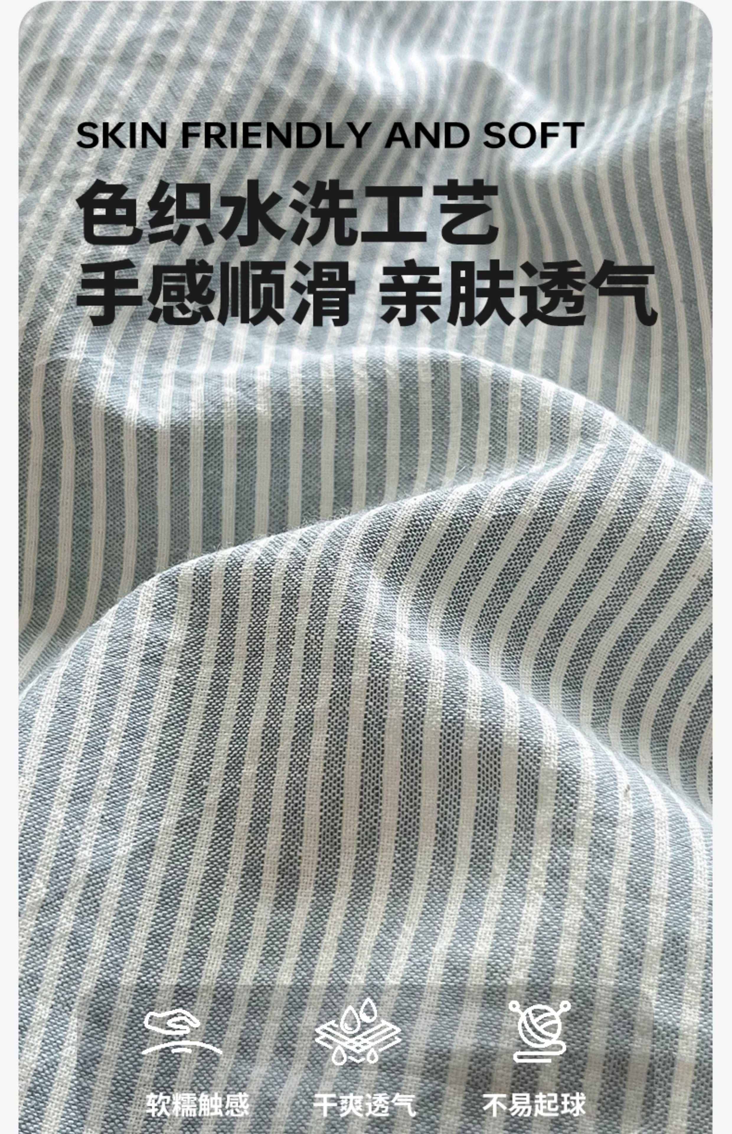 名创优品(MINISO)全棉色织水洗棉被套单件 150x200x230cm纯棉单双人被罩四件套 miniso-雾蓝 150cm*200cm 单被套
