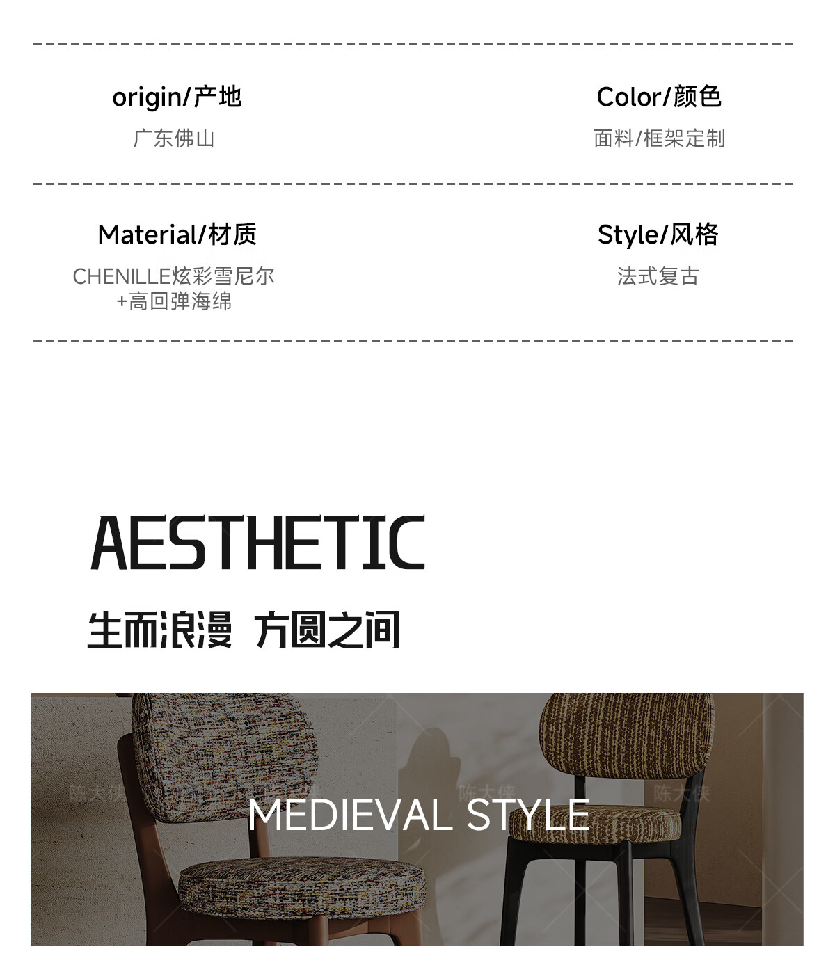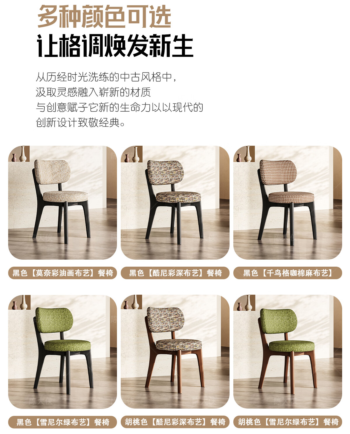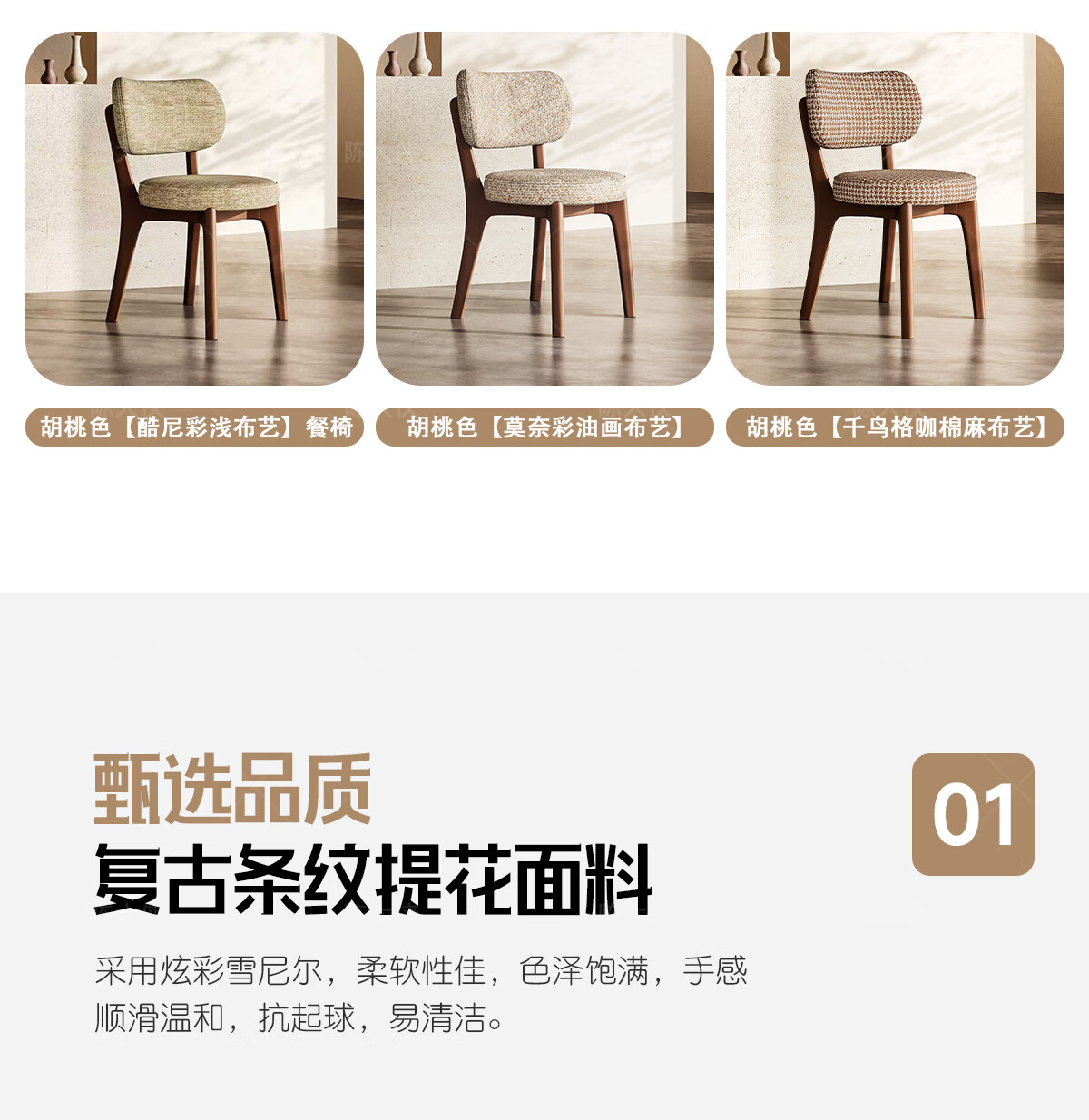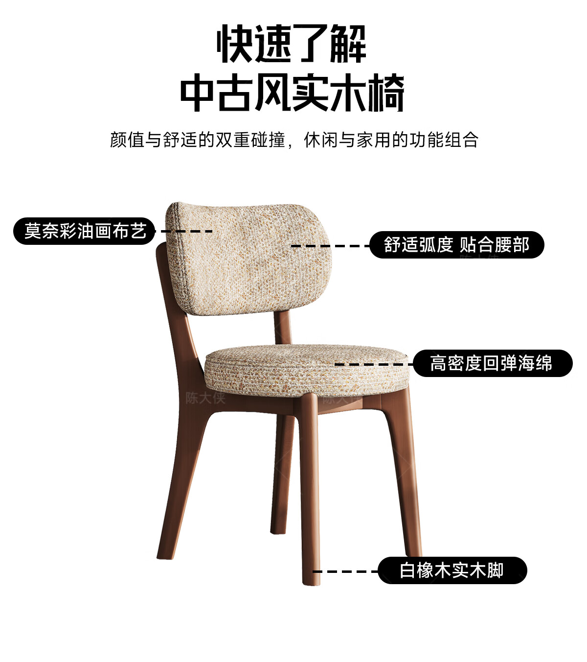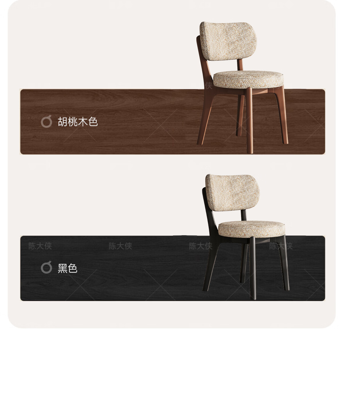陈大侠中古风餐椅家用法式带靠背餐桌椅子复古实木化妆凳子北欧软包座椅 胡桃色【材质:酷尼彩深布艺】餐椅×1