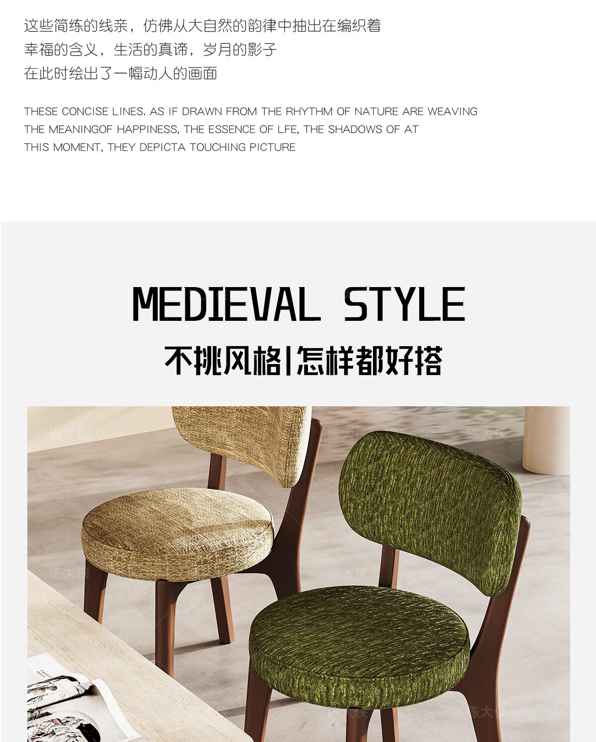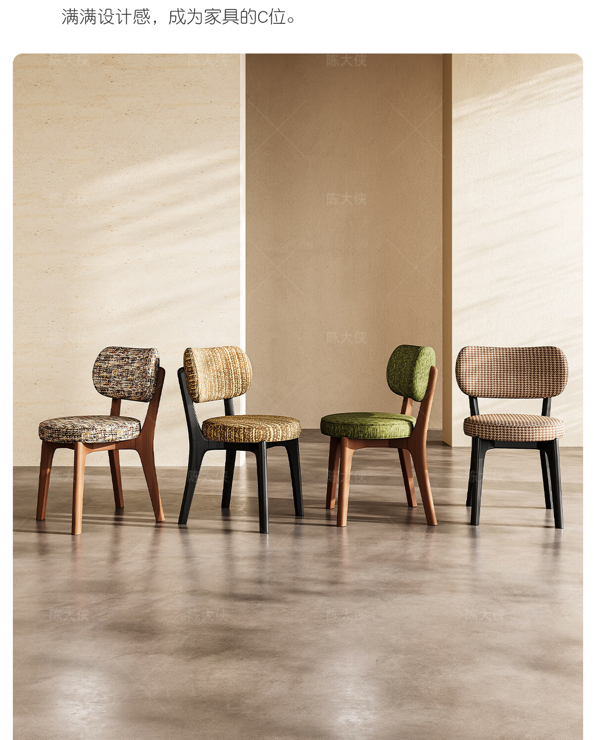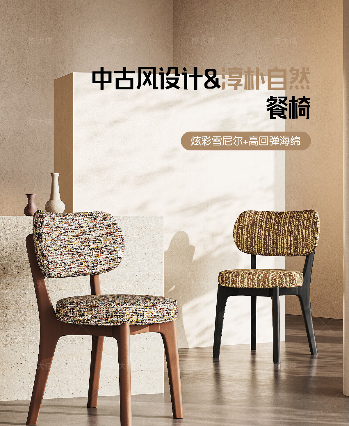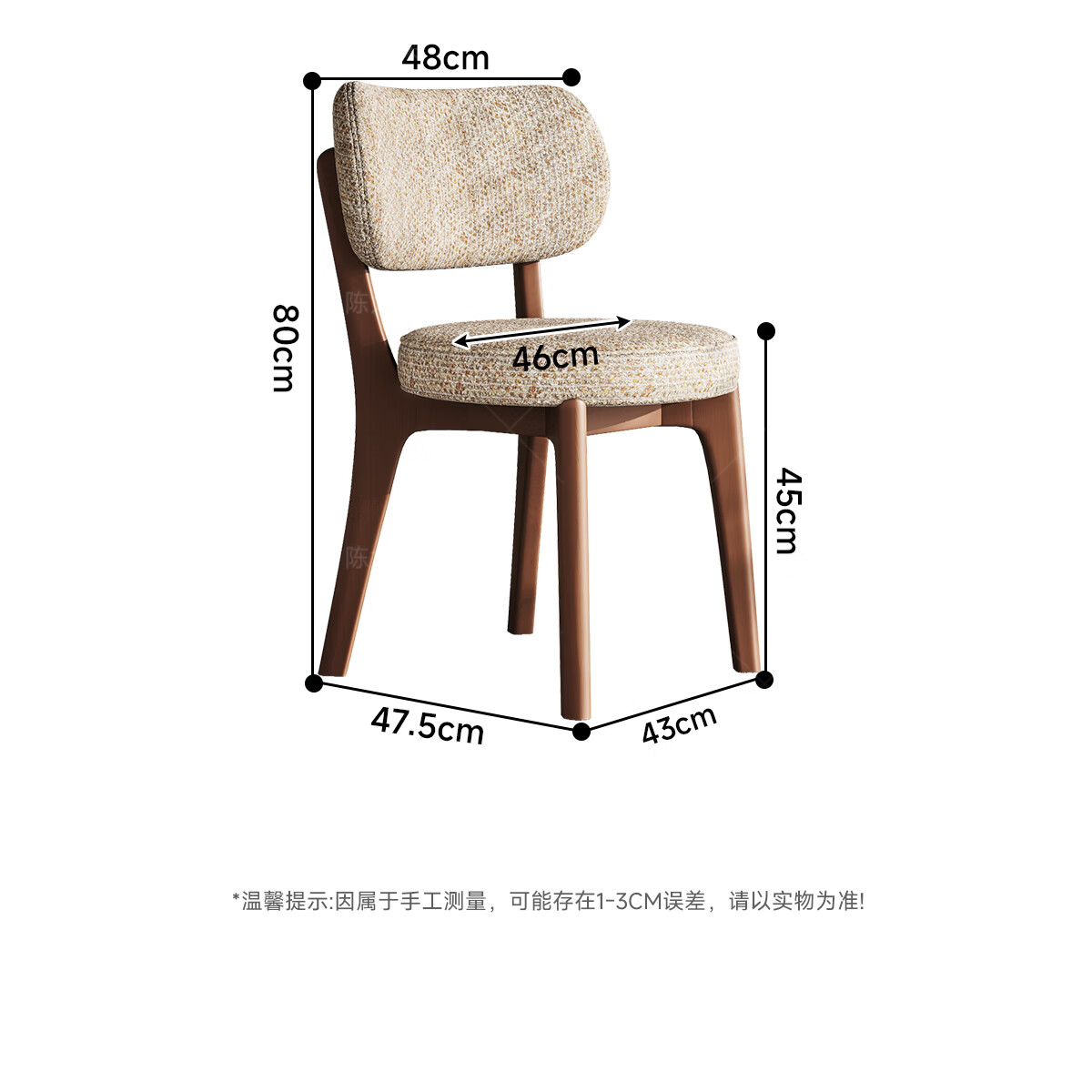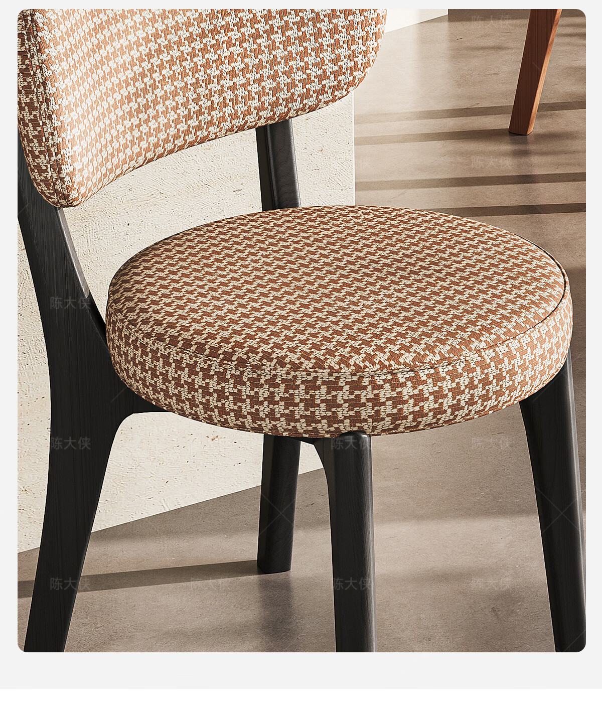 陈大侠中古风餐椅家用法式带靠背餐桌椅子复古实木化妆凳子北欧软包座椅 胡桃色【材质:酷尼彩深布艺】餐椅×1