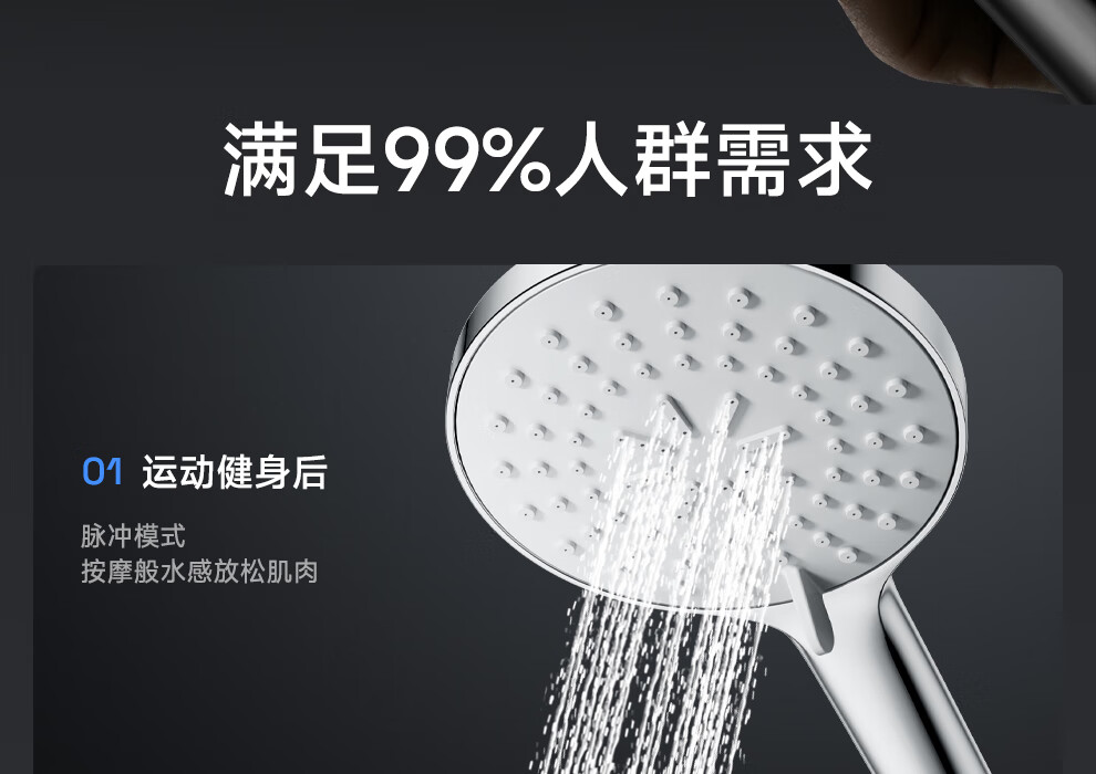 九牧王增压淋浴花洒喷头喷淋头家用浴室洗澡加压大面板手持莲蓬头 【亮银】增压花洒+1.5米软管